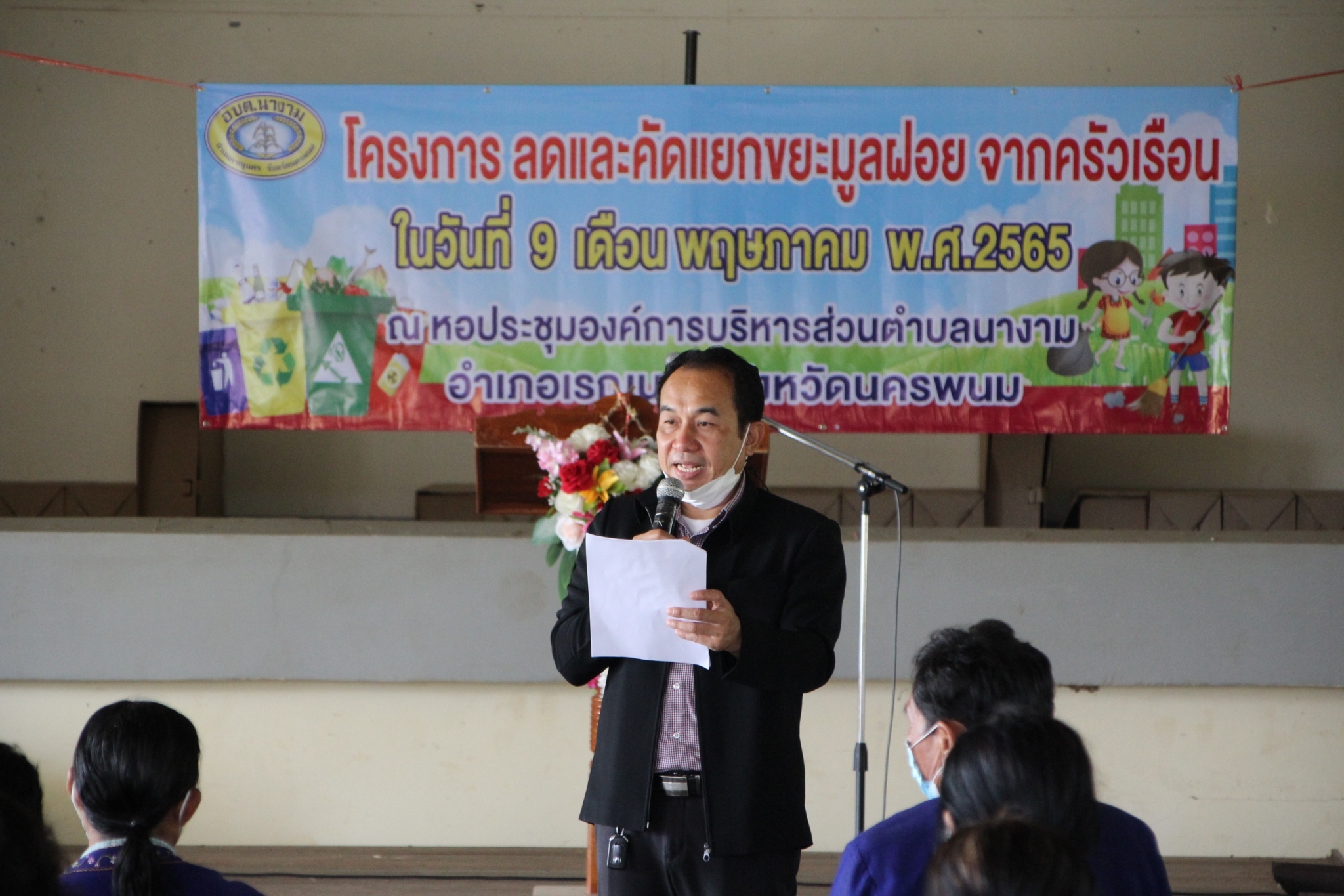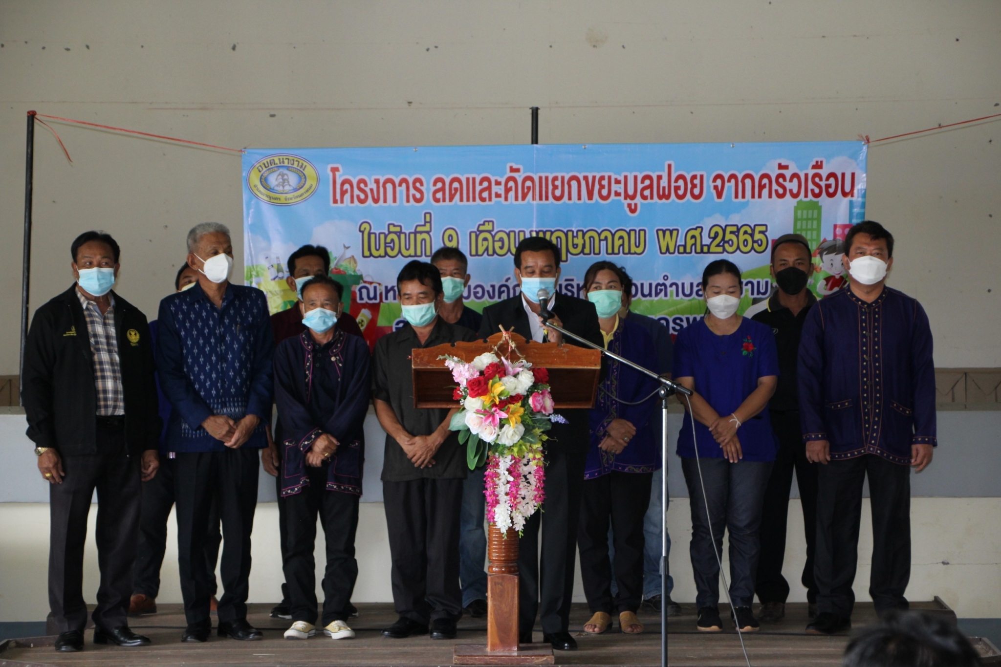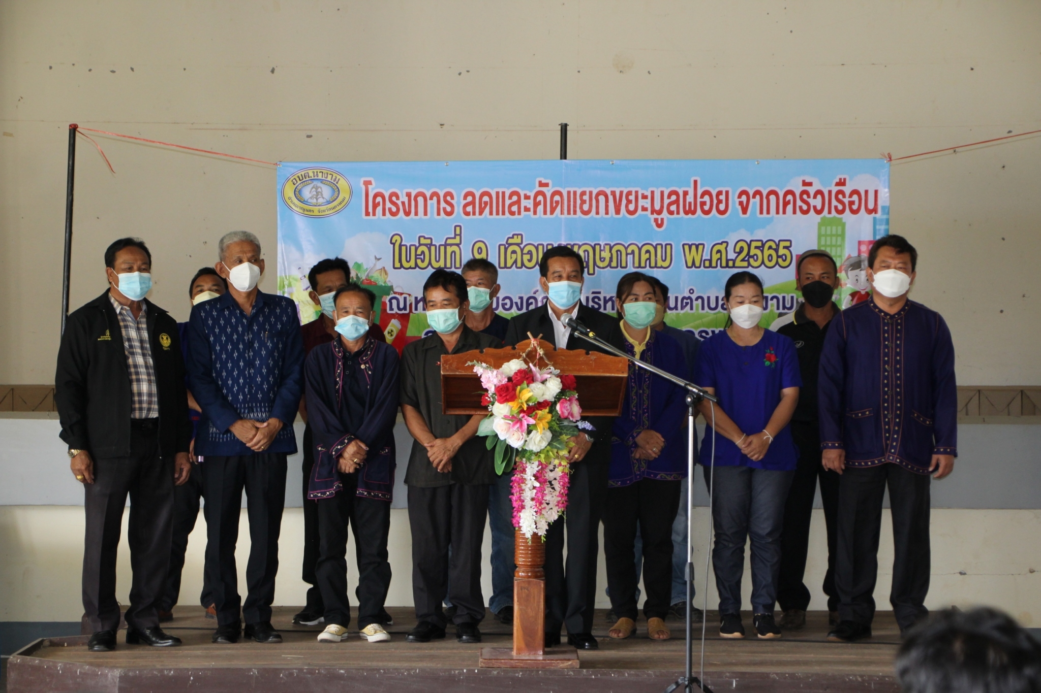 นายรันดร สมมิตตะ นายกองค์การบริหารส่วนตำบลนางาม เปิดโครงการลดคัดและคัดแยกขยะมูลฝอยจากครัวเรือน ประจำปี พ.ศ. 2565