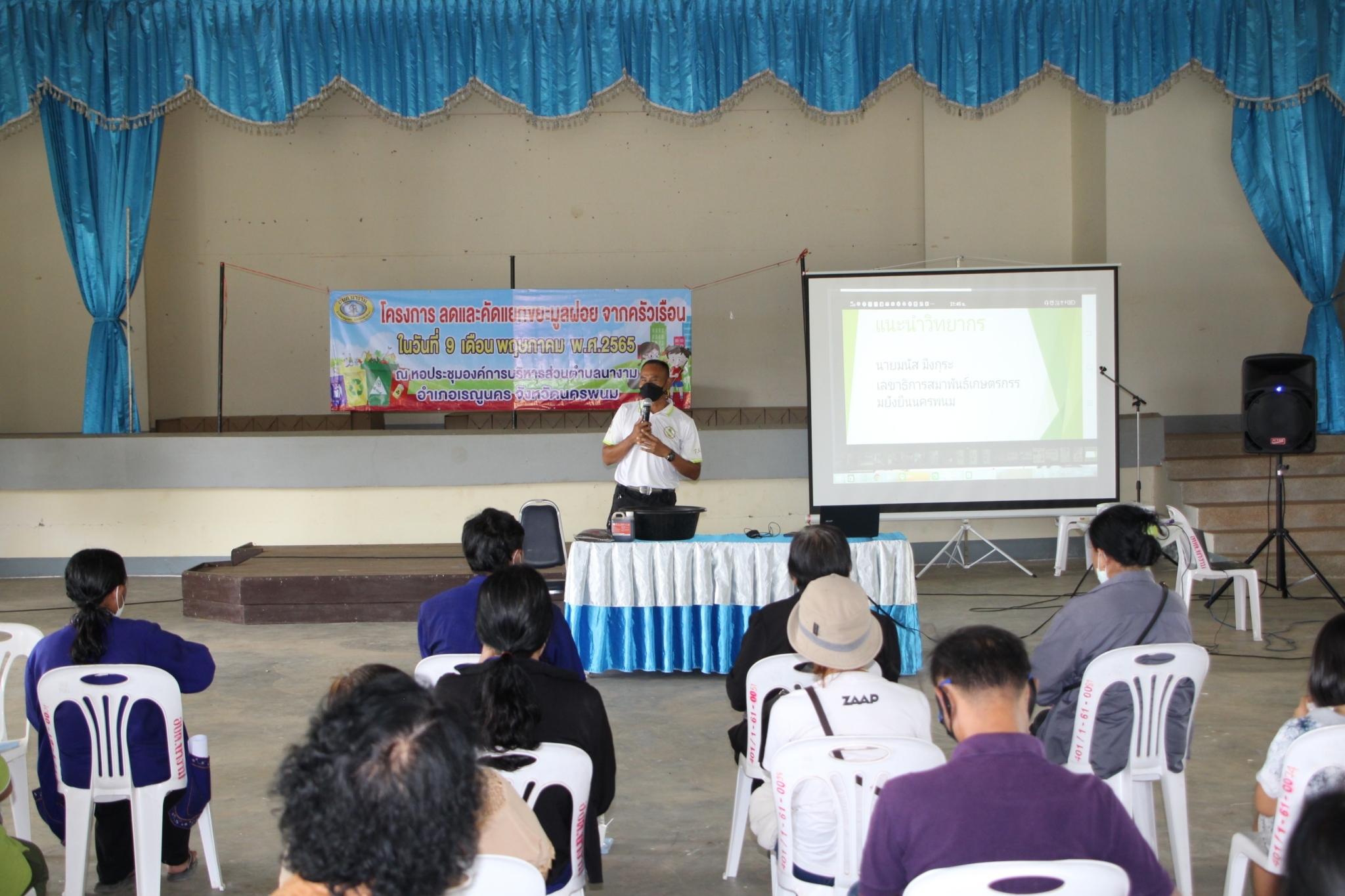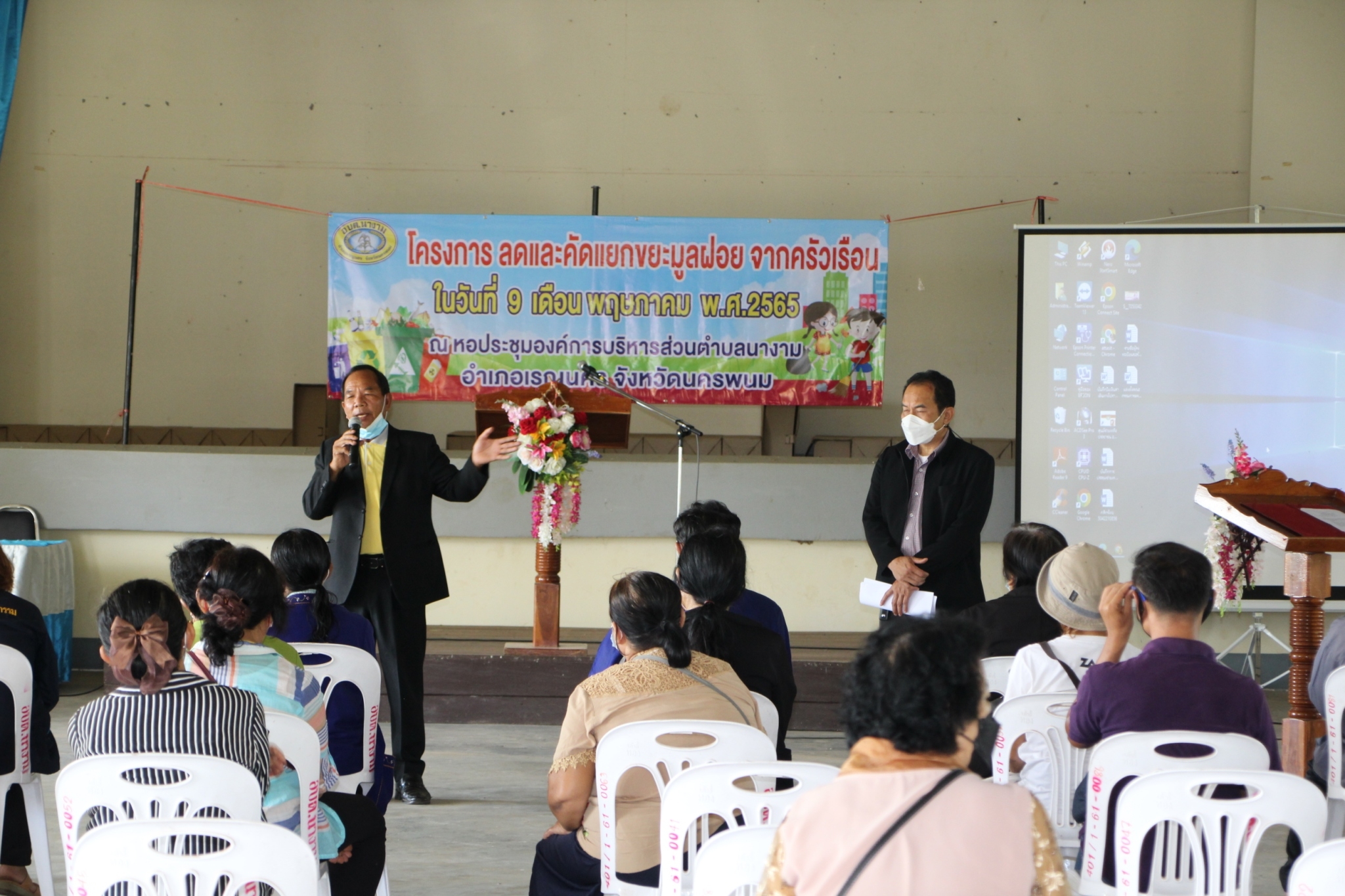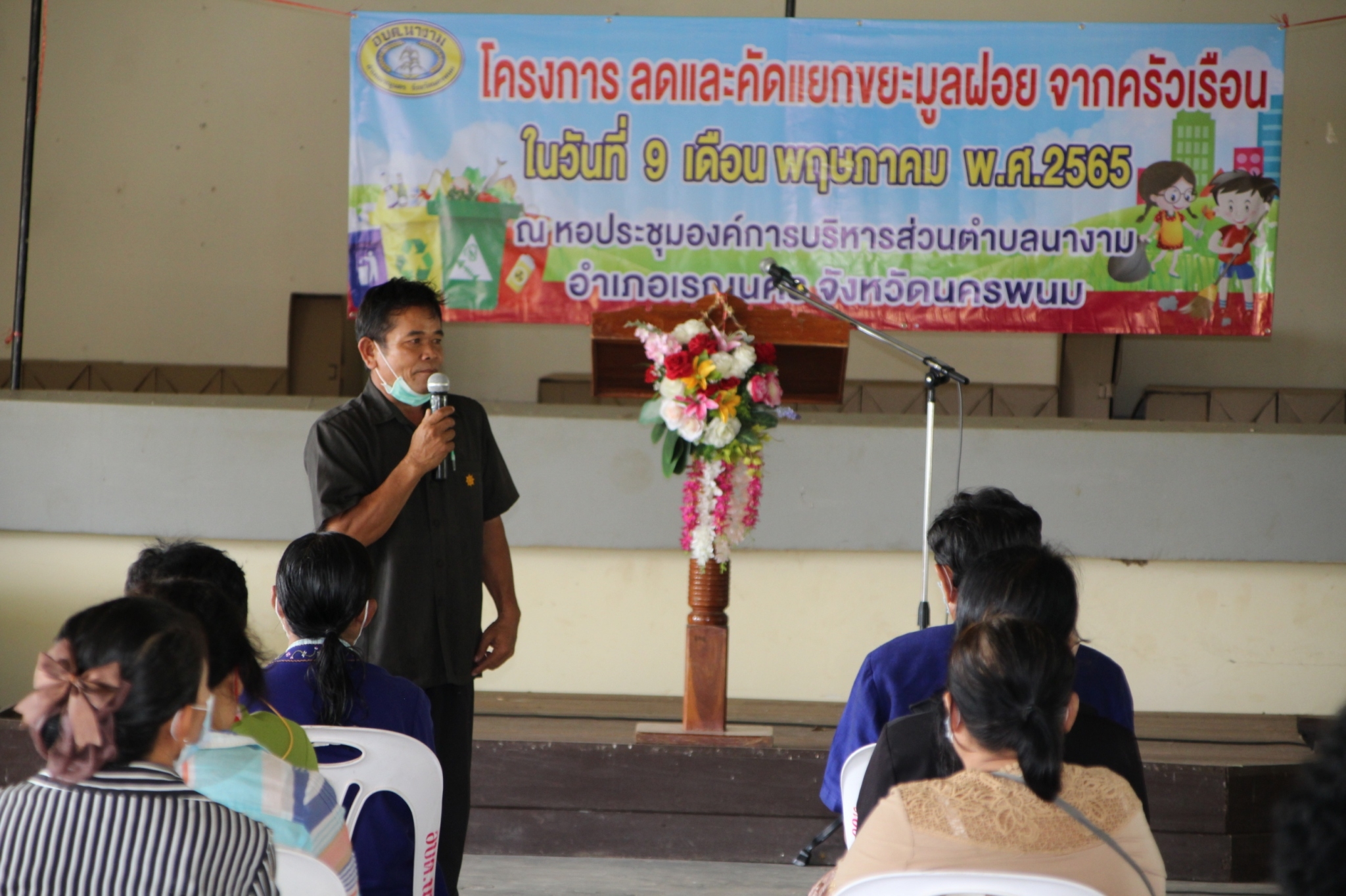 นายรันดร สมมิตตะ นายกองค์การบริหารส่วนตำบลนางาม เปิดโครงการลดคัดและคัดแยกขยะมูลฝอยจากครัวเรือน ประจำปี พ.ศ. 2565
