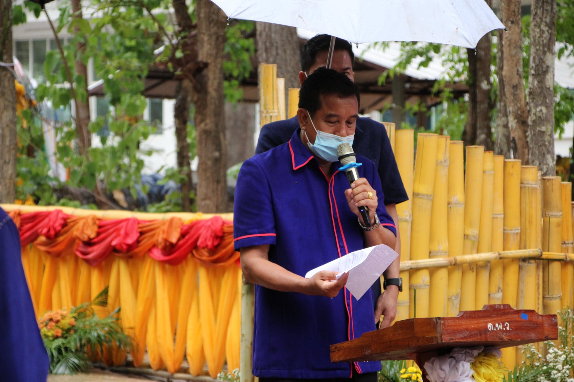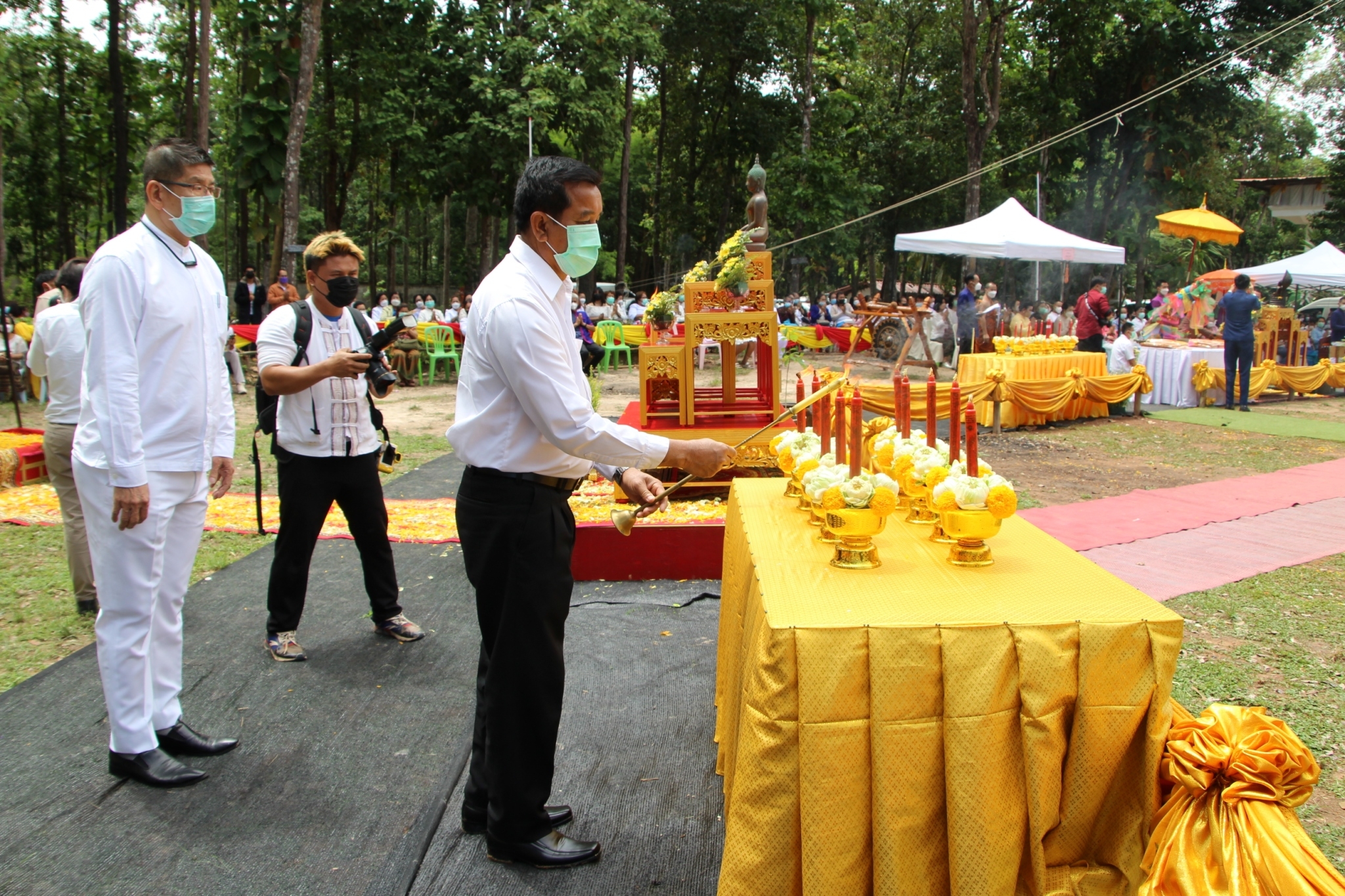นายรันดร สมมิตะ นายกองค์การบริหารส่วนตำบลนางาม เข้าร่วมพิธีอัญเชิญช่อฟ้าขึ้นสู่ยอดอุโบสถ [5 พฤษภาคม 2565]