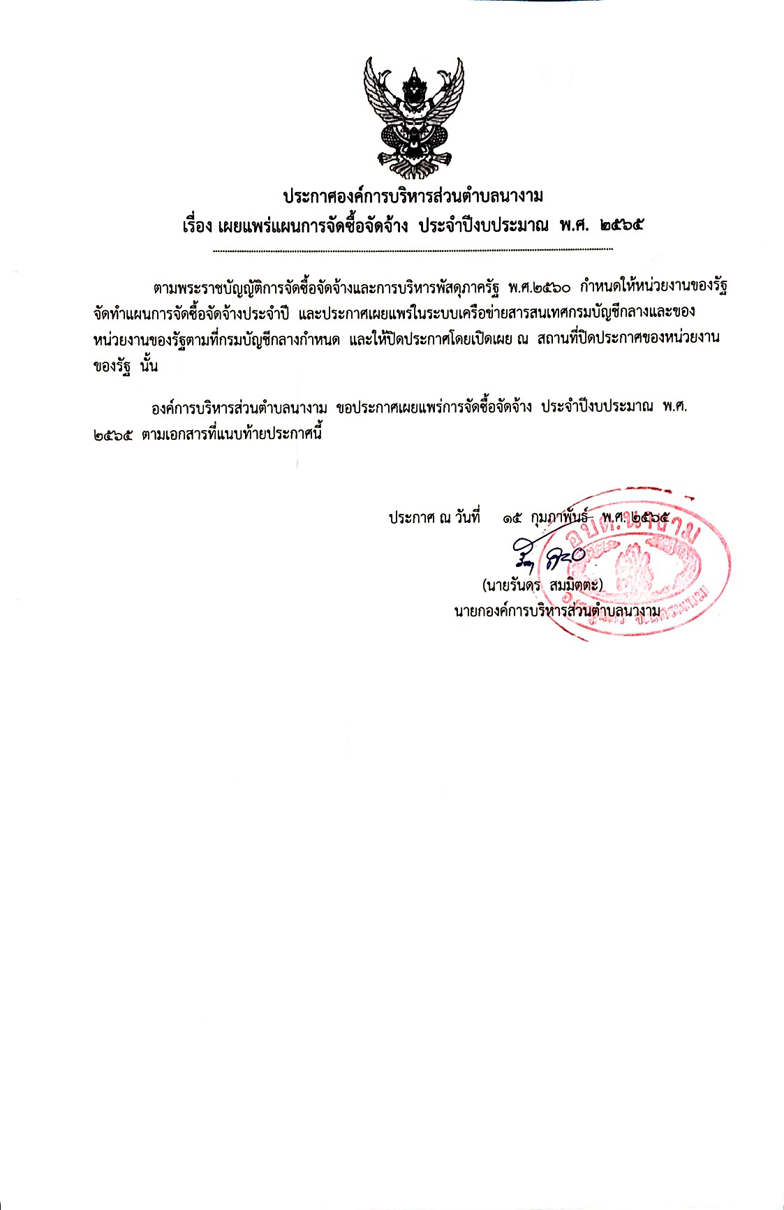 ชื่อเรื่อง : ประกาศเผยแพร่แผนการจัดซื้อจัดจ้าง ประจำปีงบประมาณ พ.ศ. 2565 ตามโครงการพลังงานเพื่อเศรษฐกิจฐานราก(กรอบ500ล้านบาท)