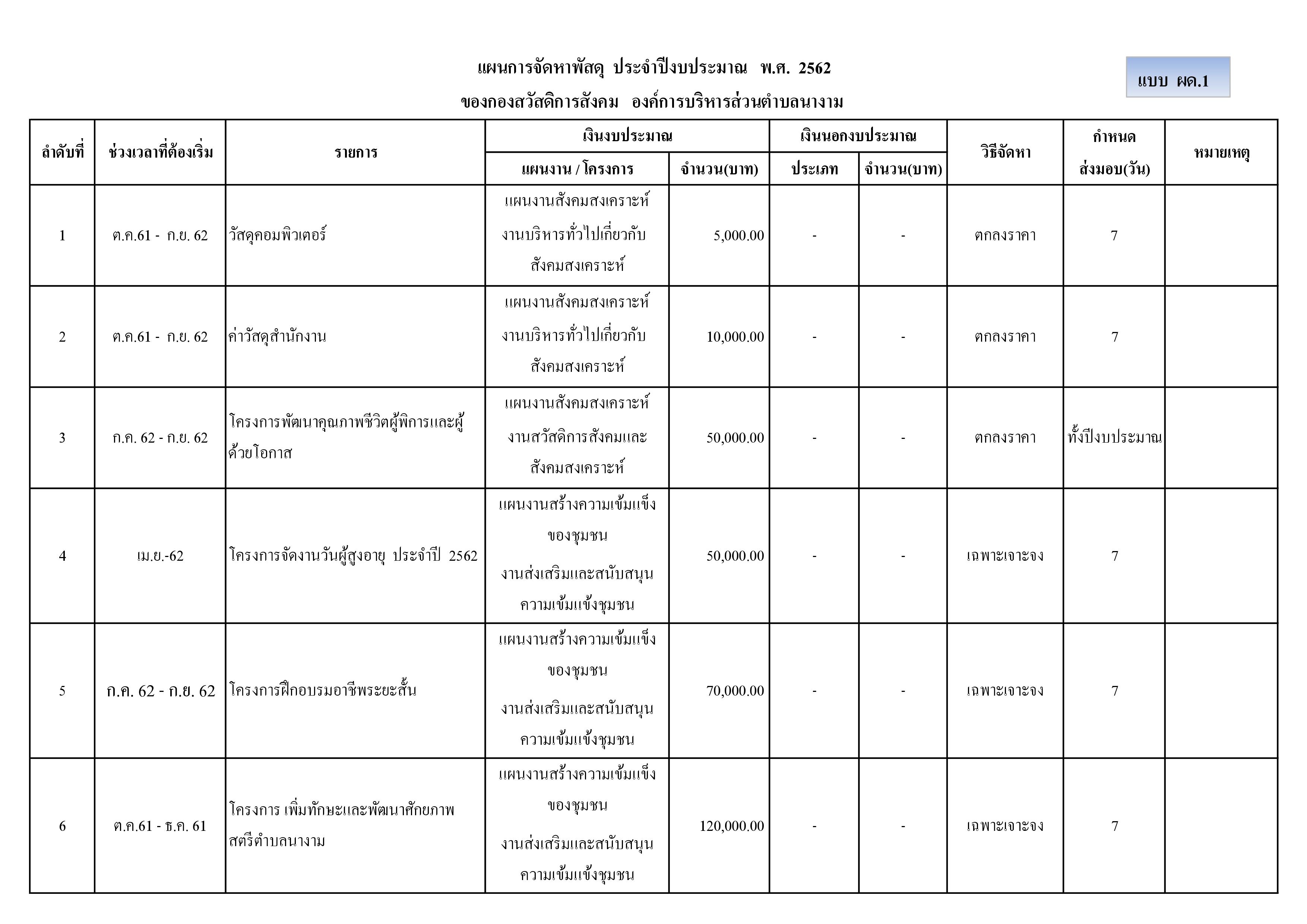 แผนการจัดซื้อ จัดจ้าง จัดหาพัสดุ ประจำปีงบประมาณ พ.ศ. 2562