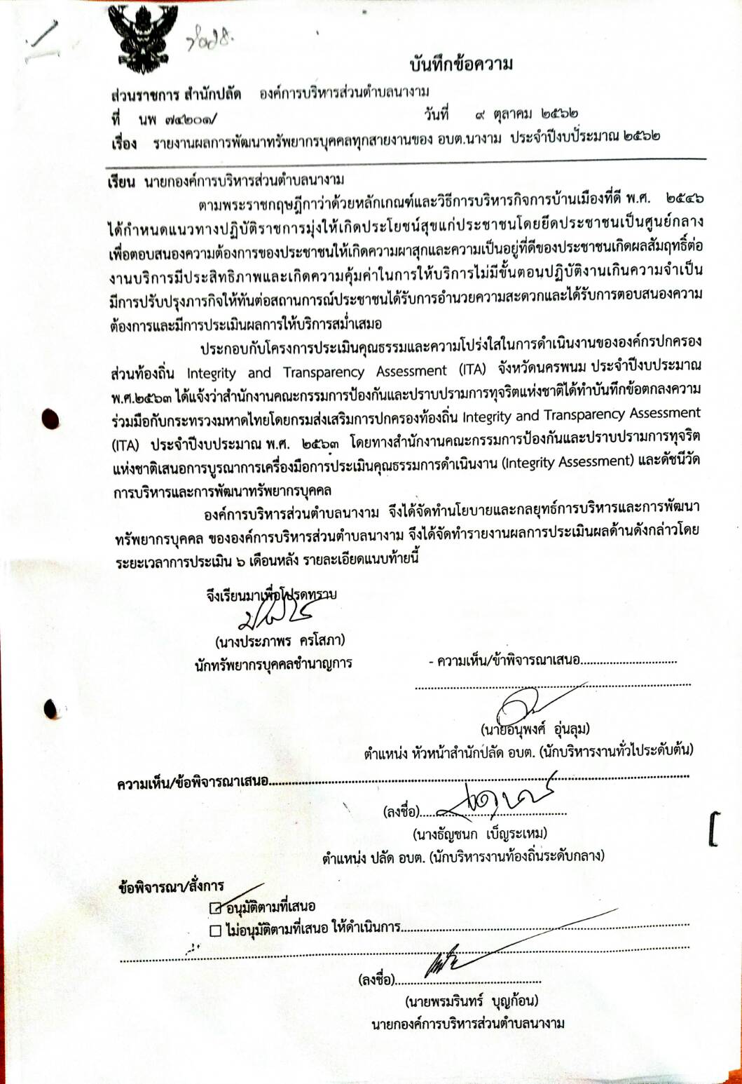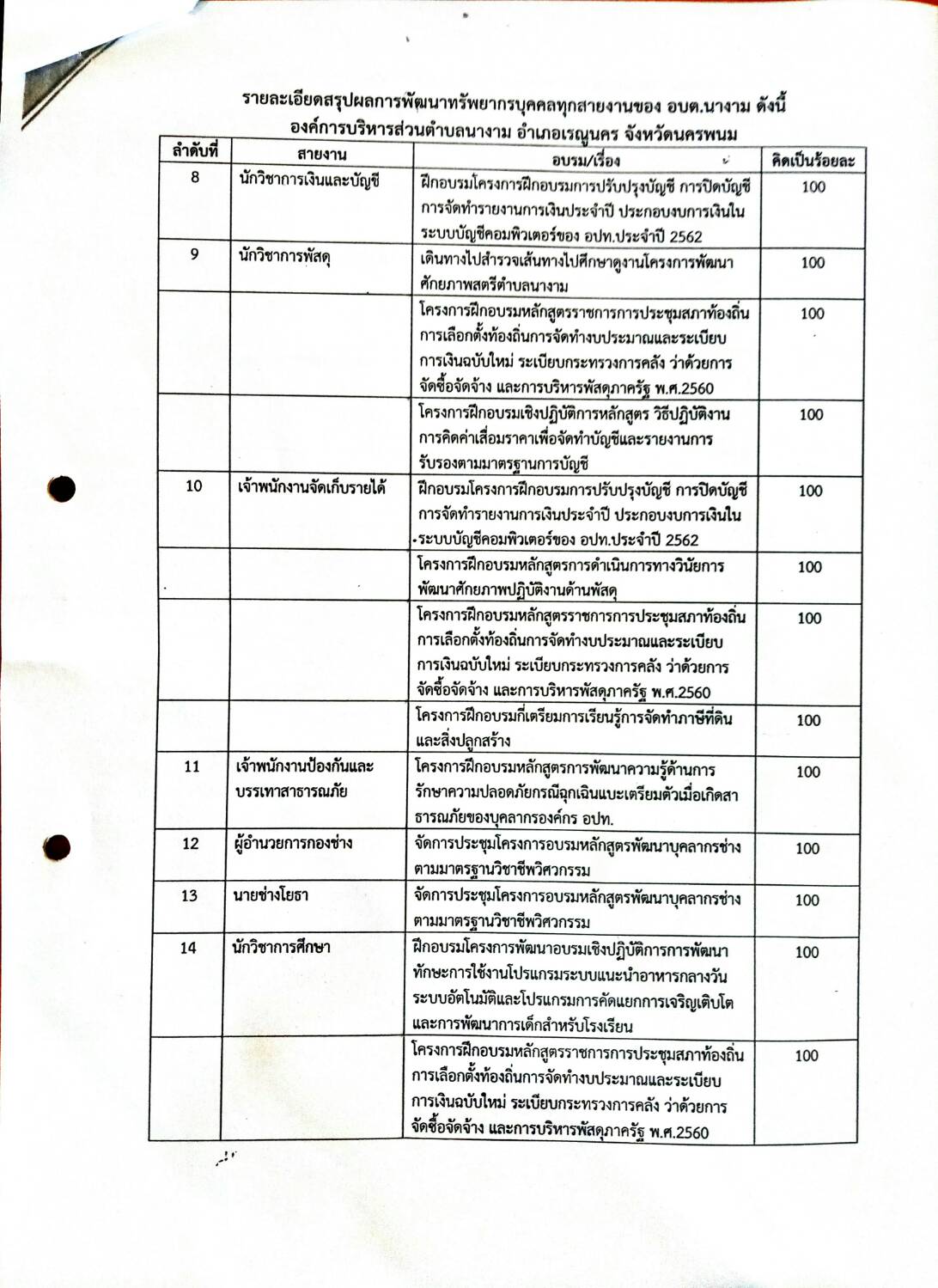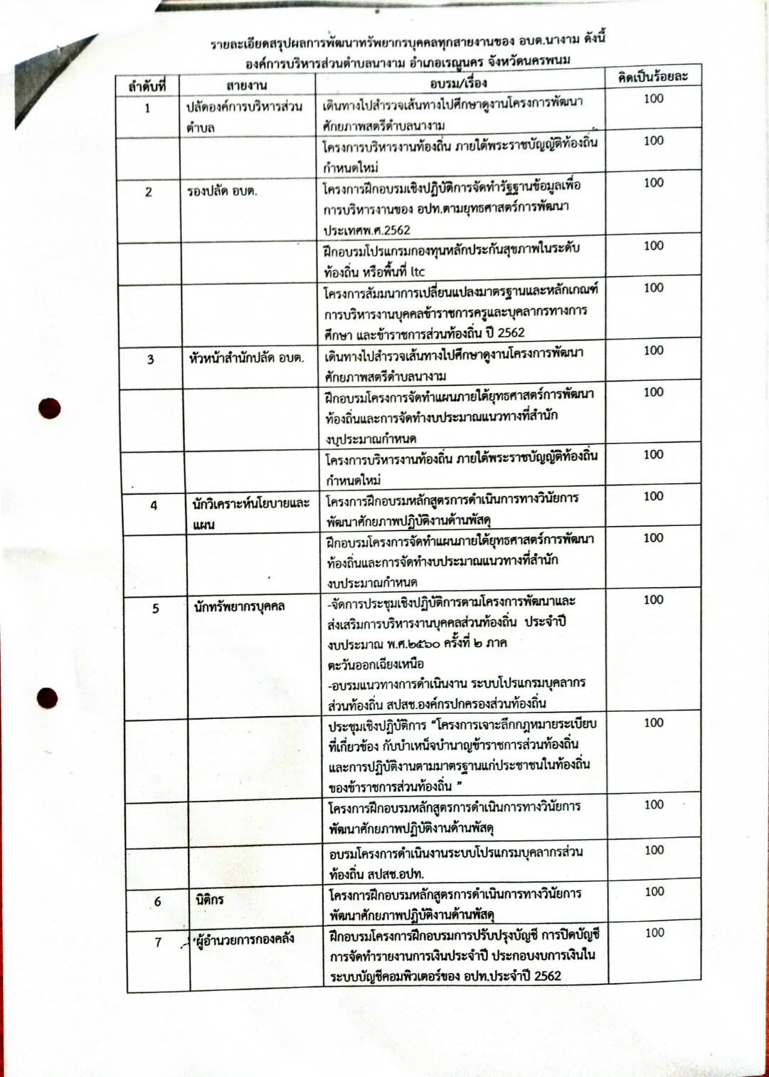 สรุปผลการพัฒนาทรัพยากรบุคคล ประจำปี งบประมาณ พ.ศ. 2562
