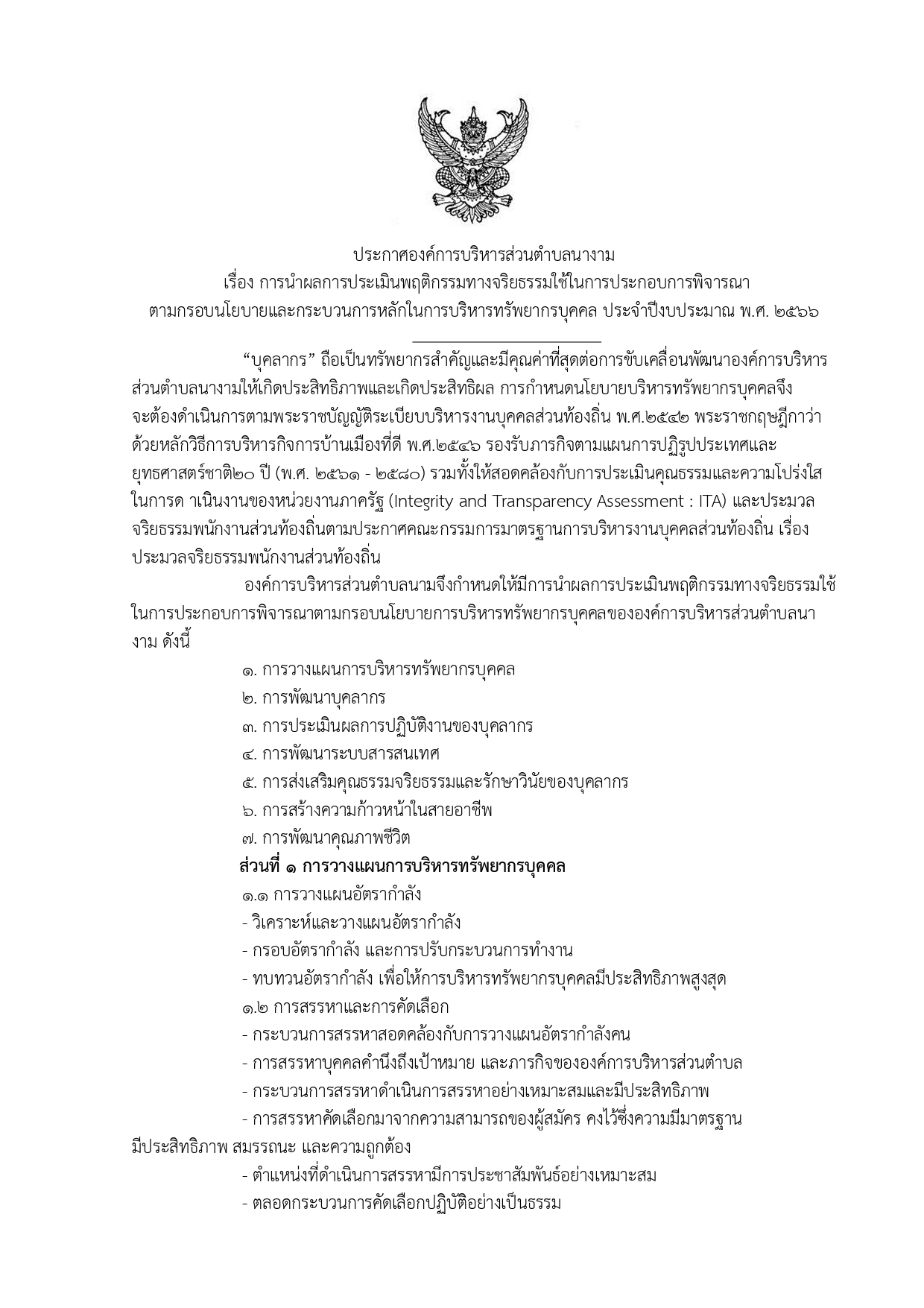 การประเมินจริยธรรมเจ้าหน้าที่ อบต.นางาม ประจำปี พ.ศ. 2566