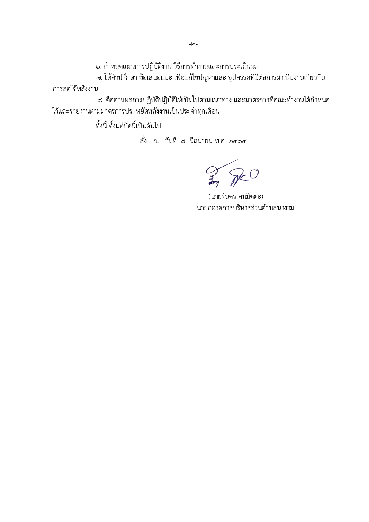 คำสั่งองค์การบริหารส่วนตำบลนางาม เรื่อง แต่งตั้งคณะกรรมการลดใช้พลังงาน
