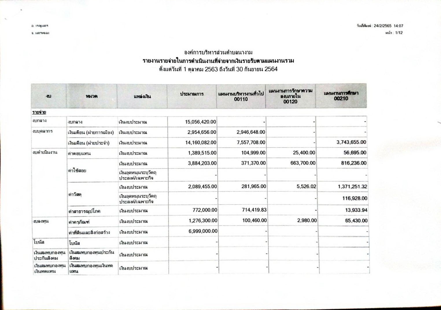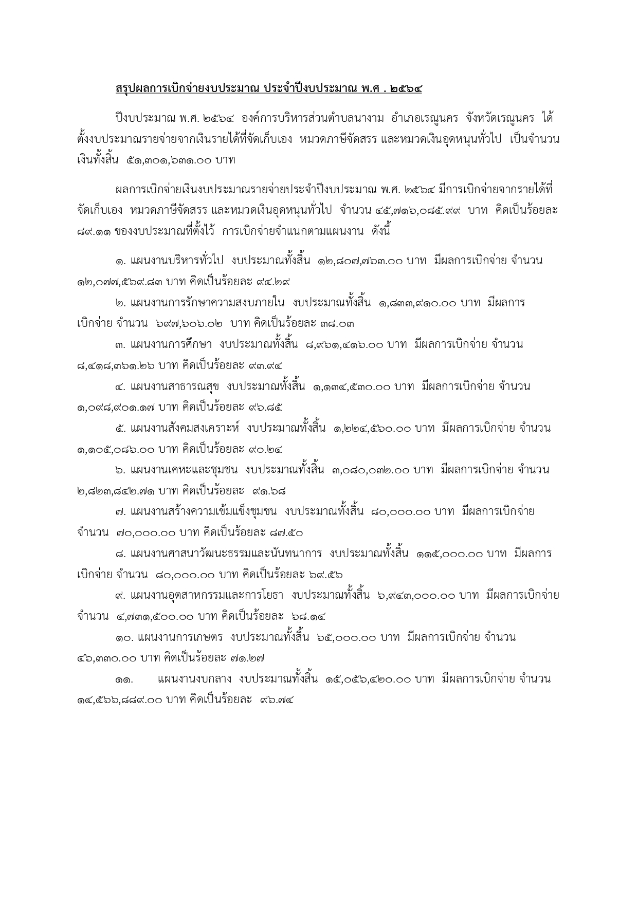 รายงานผลการใช้จ่ายงบประมาณ ประจำปีงบประมาณ พ.ศ. 2564
