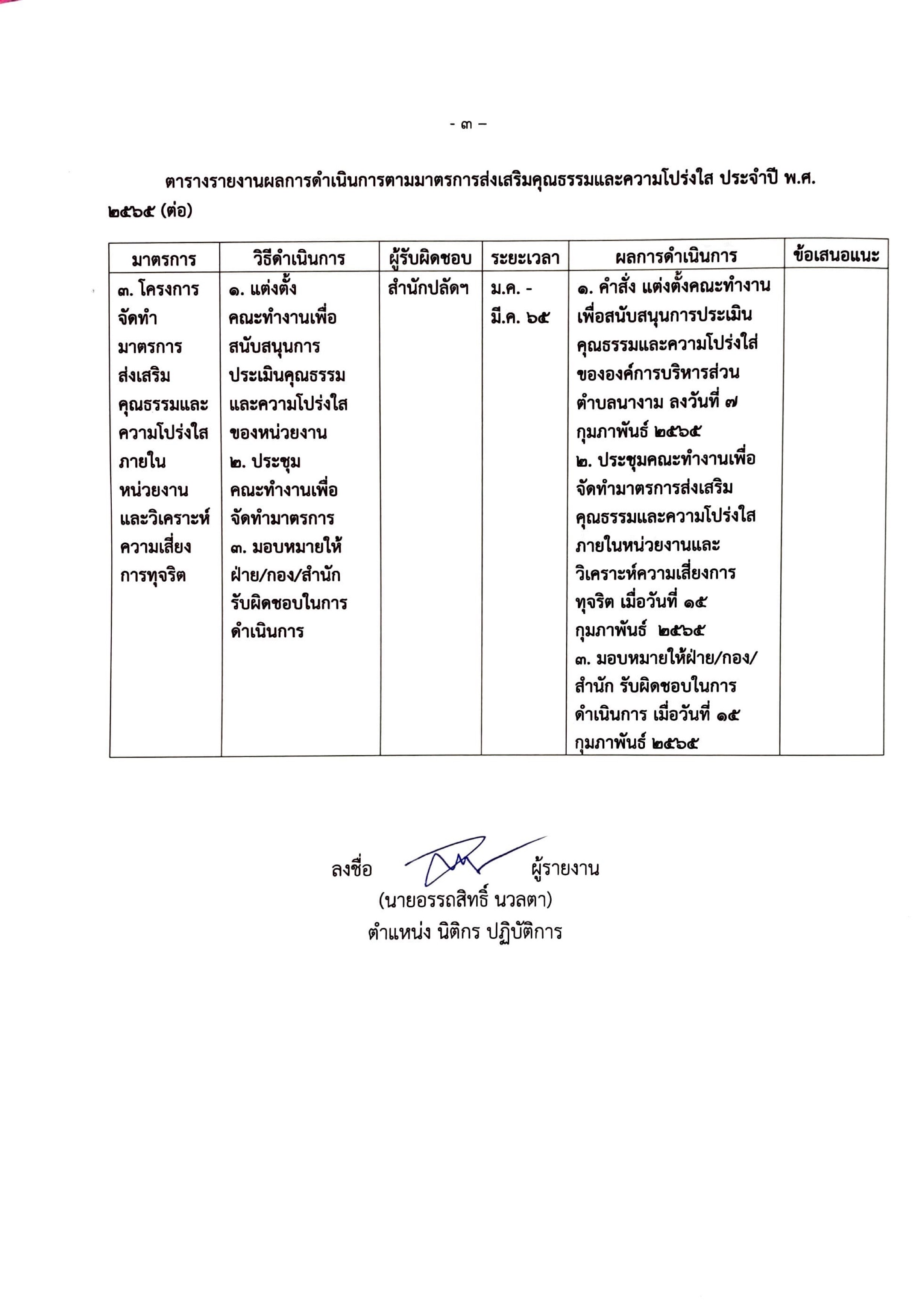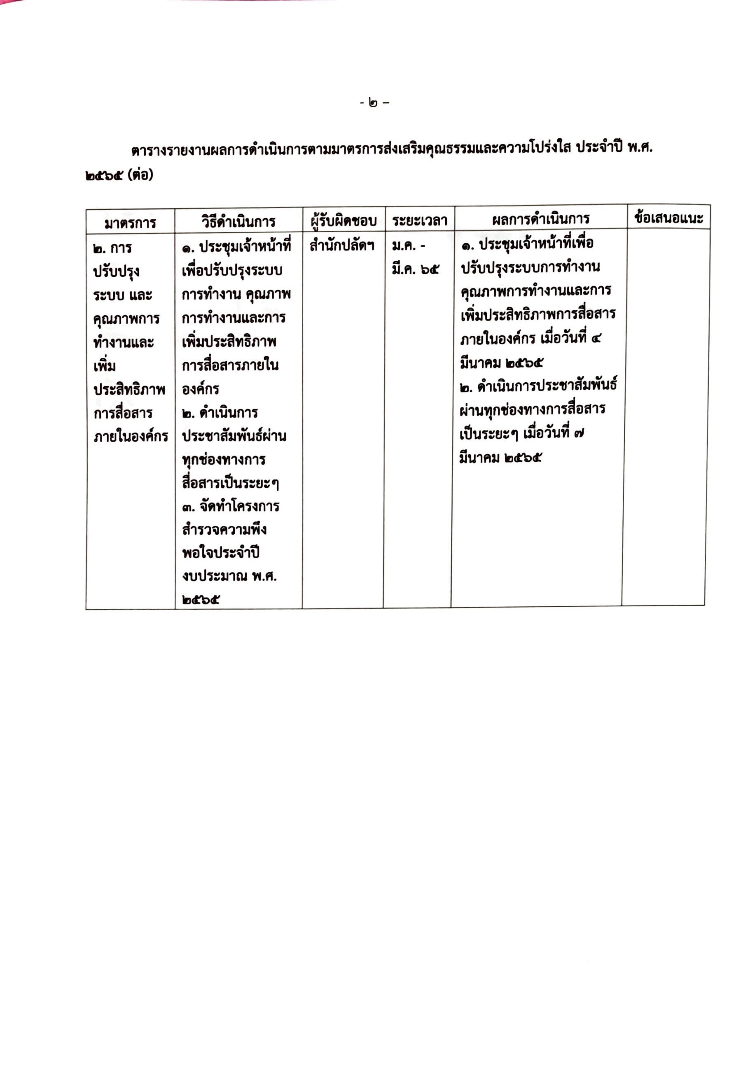 รายงานผลการดำเนินการมาตรการส่งเสริมคุณธรรมและความโปร่งใส ประจำปี 2565