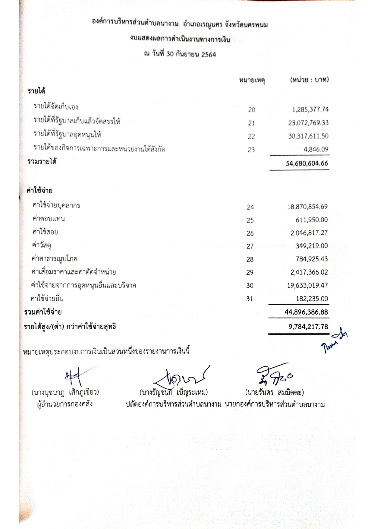 งบแสดงฐานะทางการคลัง ปีงบประมาณ พ.ศ. 2564