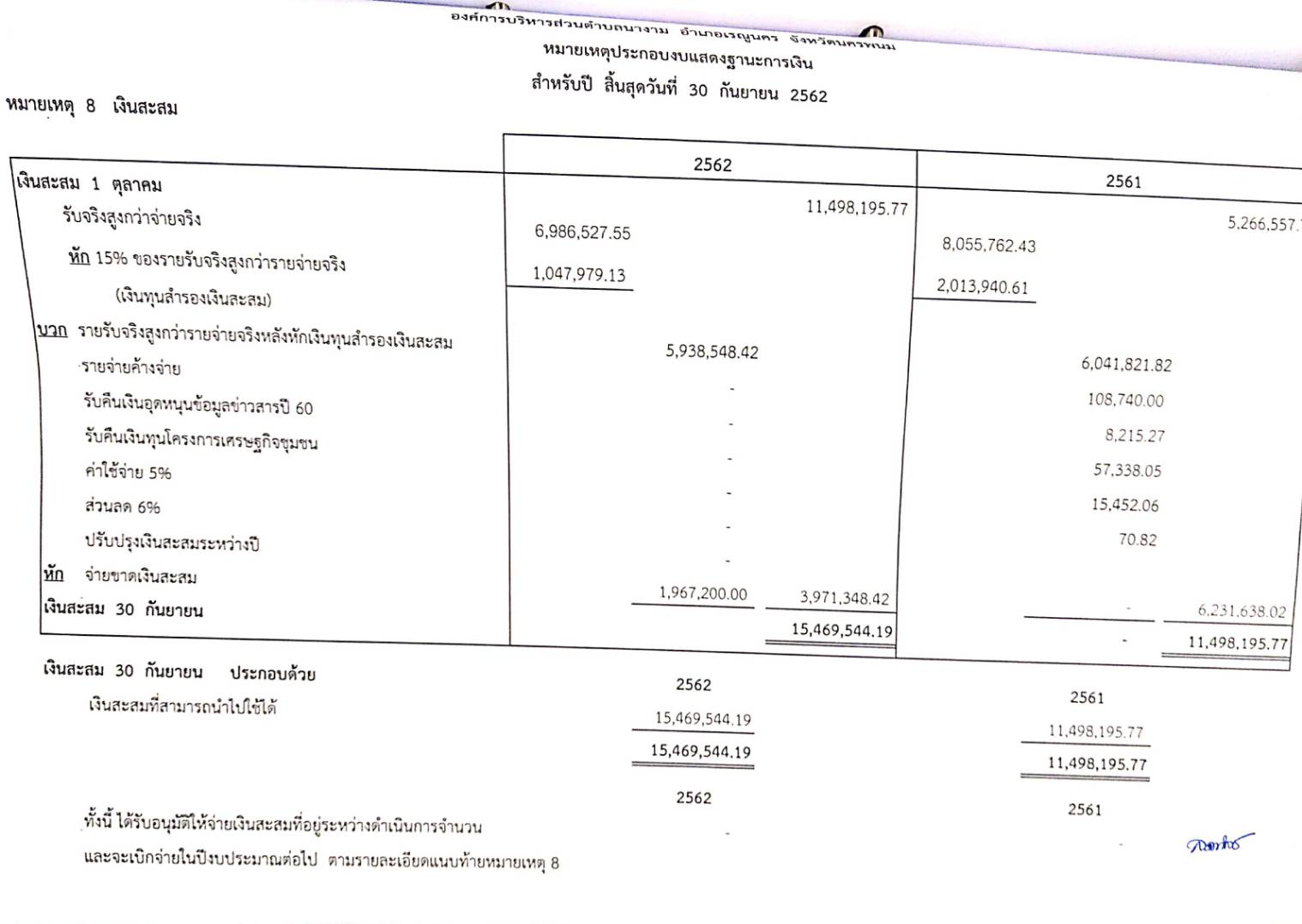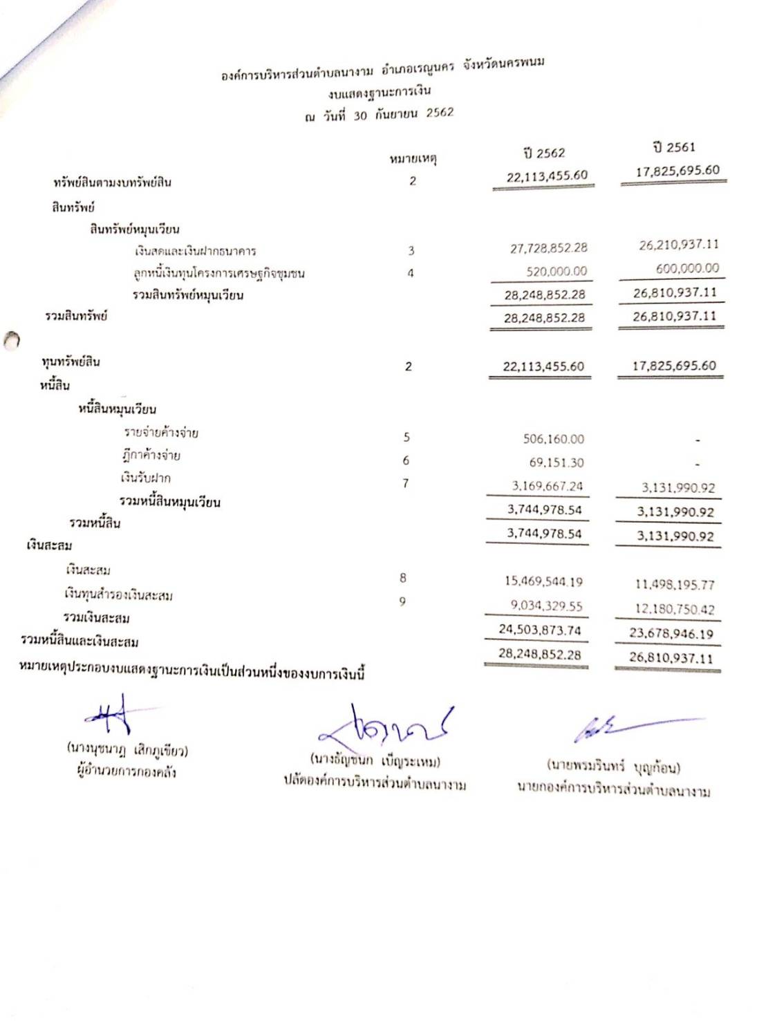 งบแสดงฐานะทางการคลัง ปีงบประมาณ พ.ศ. 2562