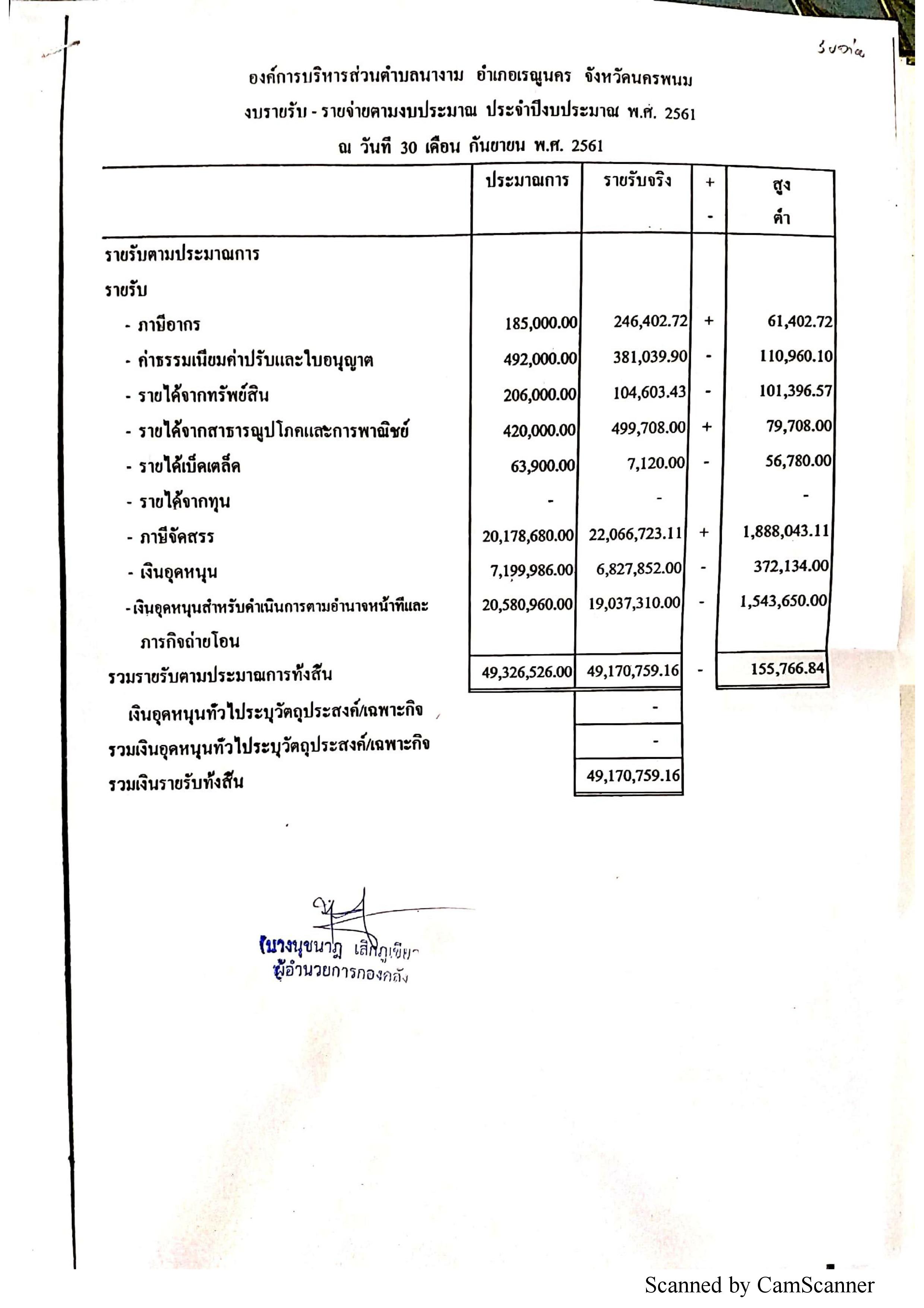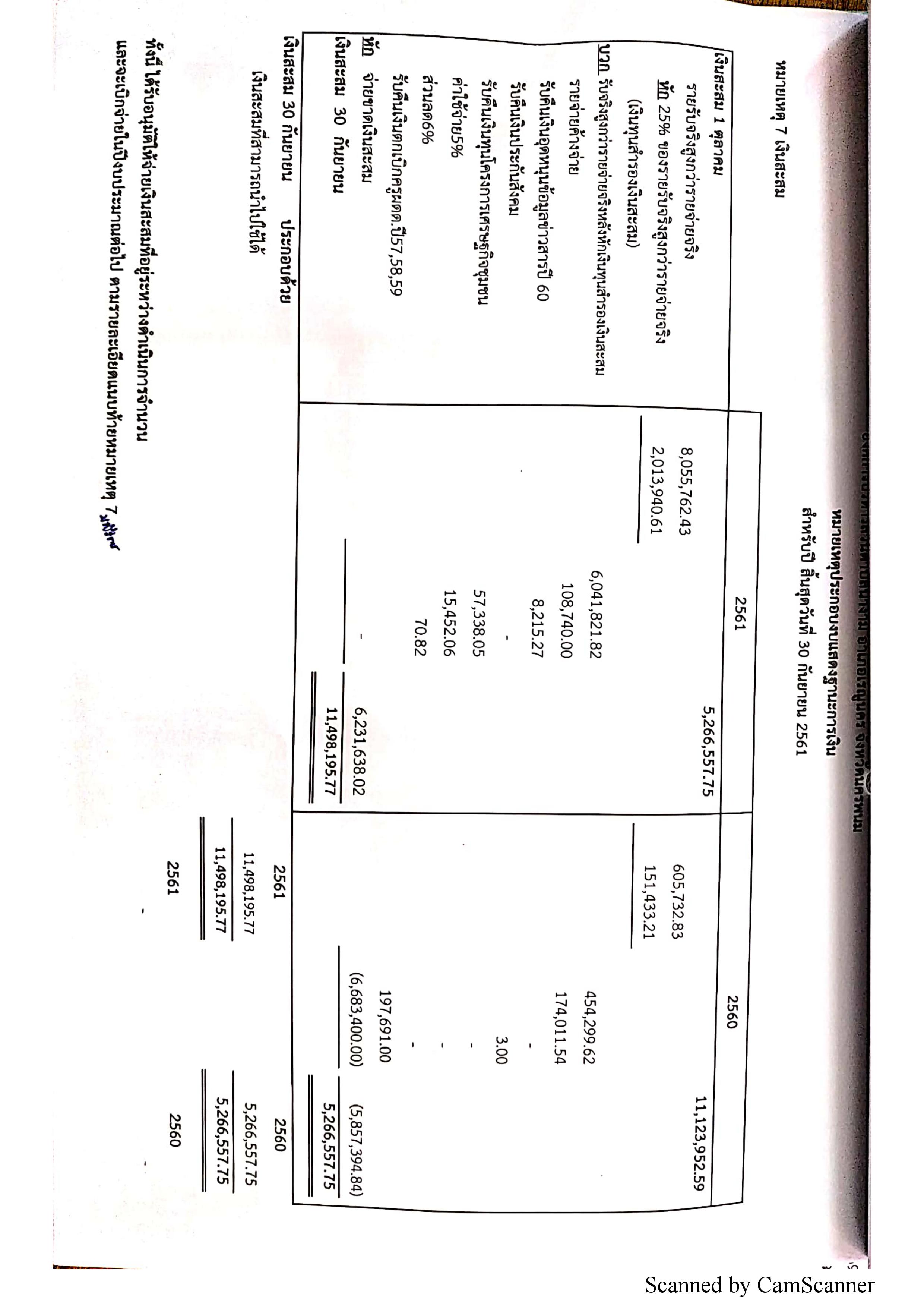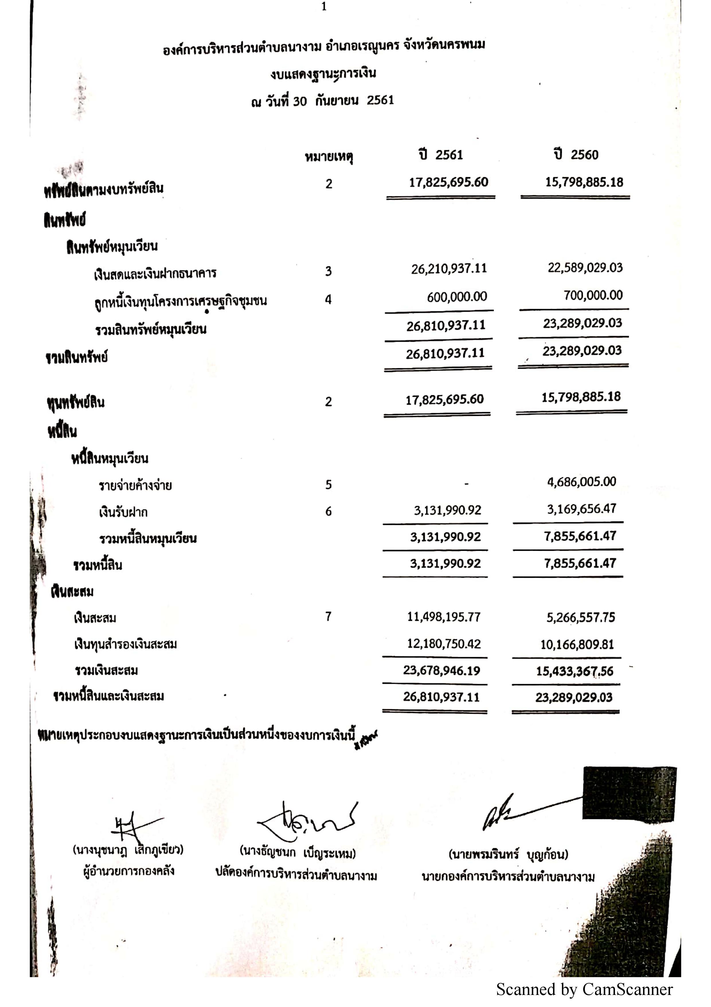 งบแสดงฐานะทางการคลัง ปีงบประมาณ พ.ศ. 2561