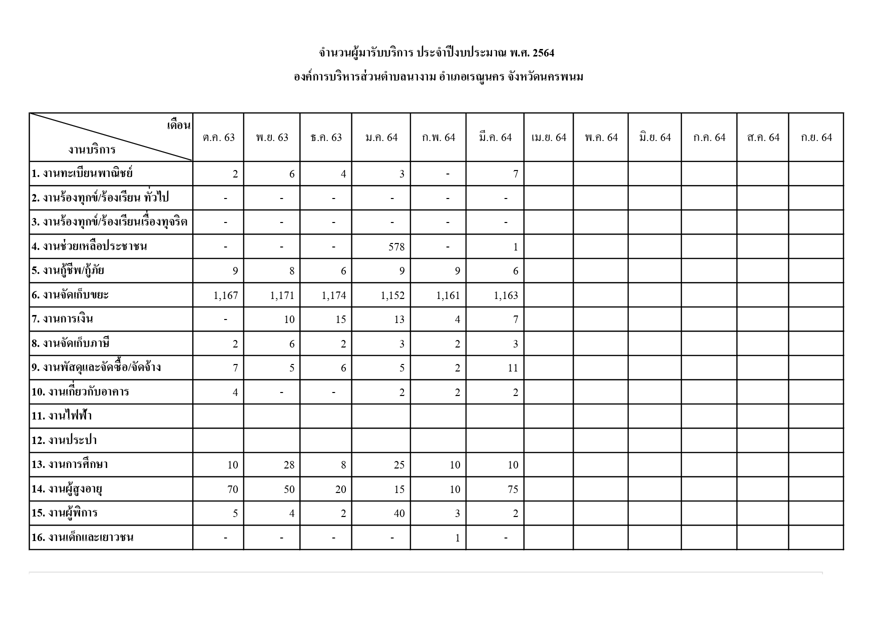 จำนวนผู้มาใช้บริการ ประจำปีงบประมาณ พ.ศ. 2564