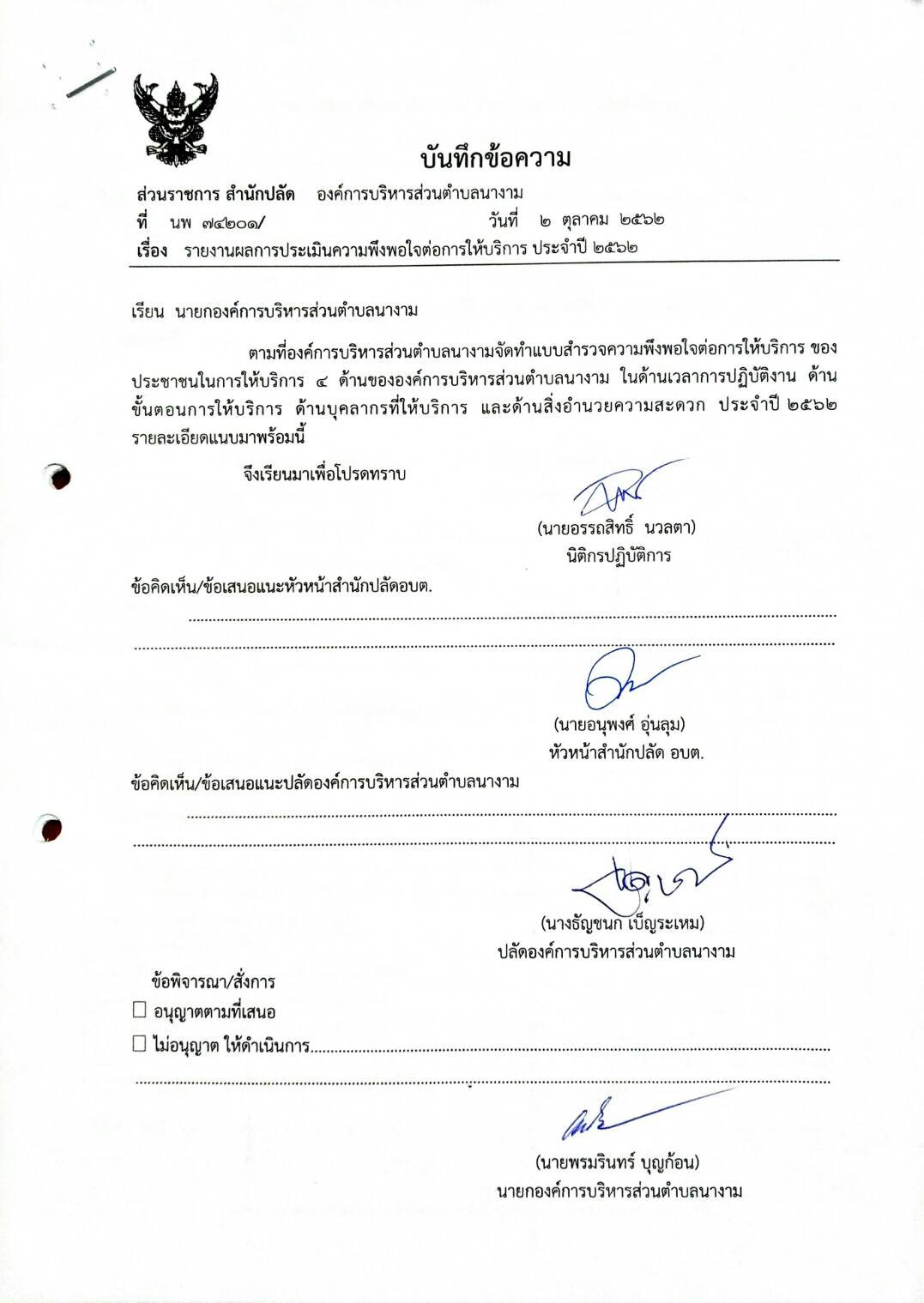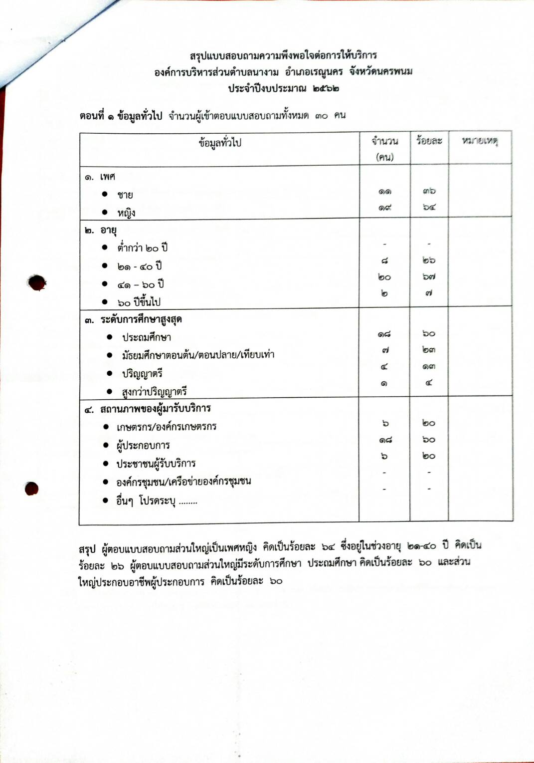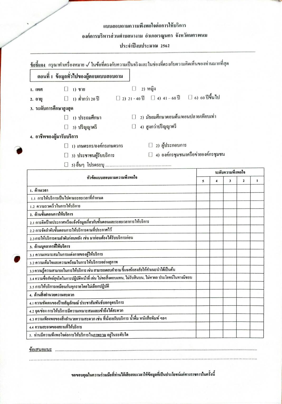 ผลการประเมินความพึงพอใจต่อการให้บริการ ประจำปีงบประมาณ พ.ศ. 2562