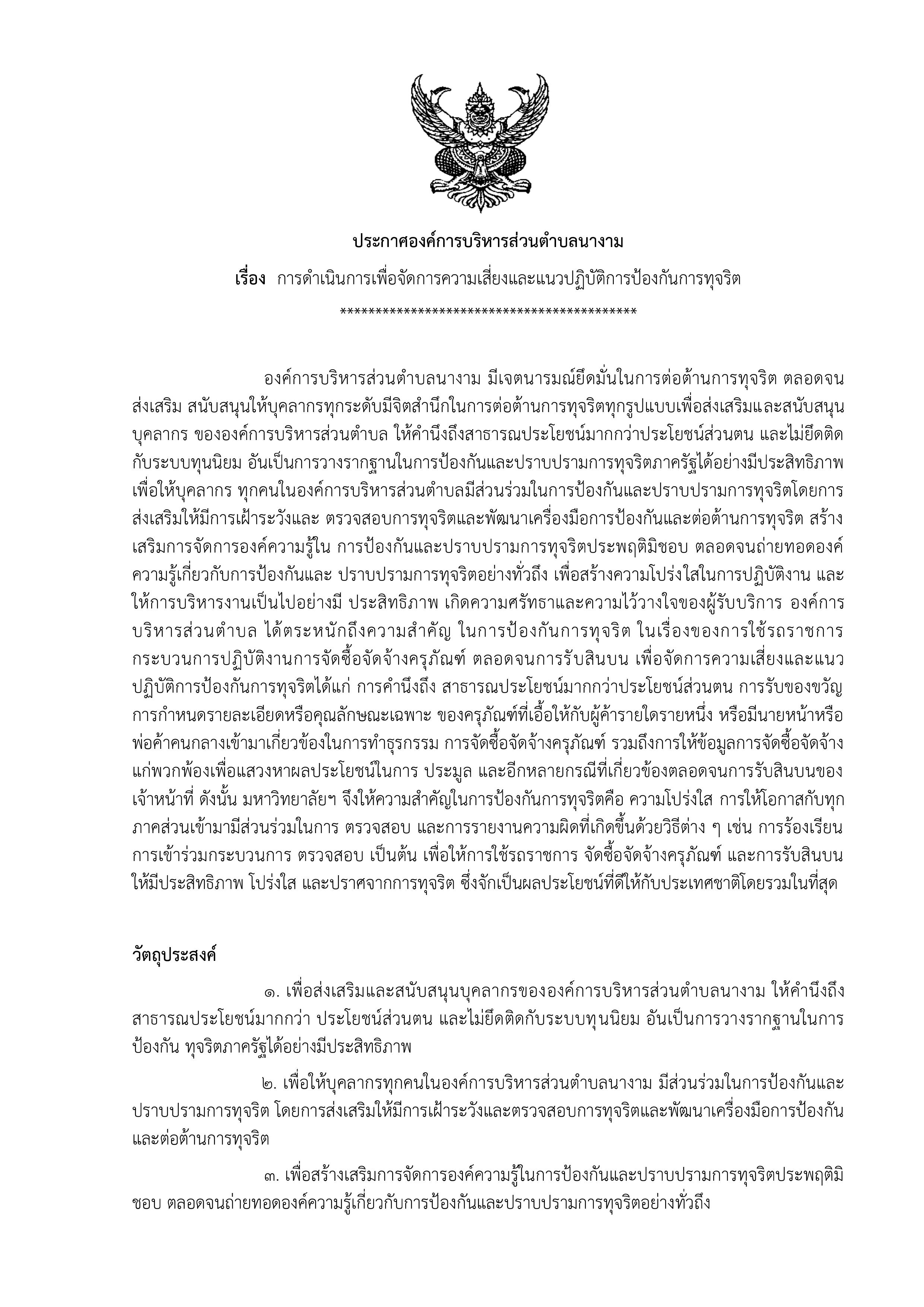 การประเมินความเสี่ยงเพื่อป้องกันการทุจริต