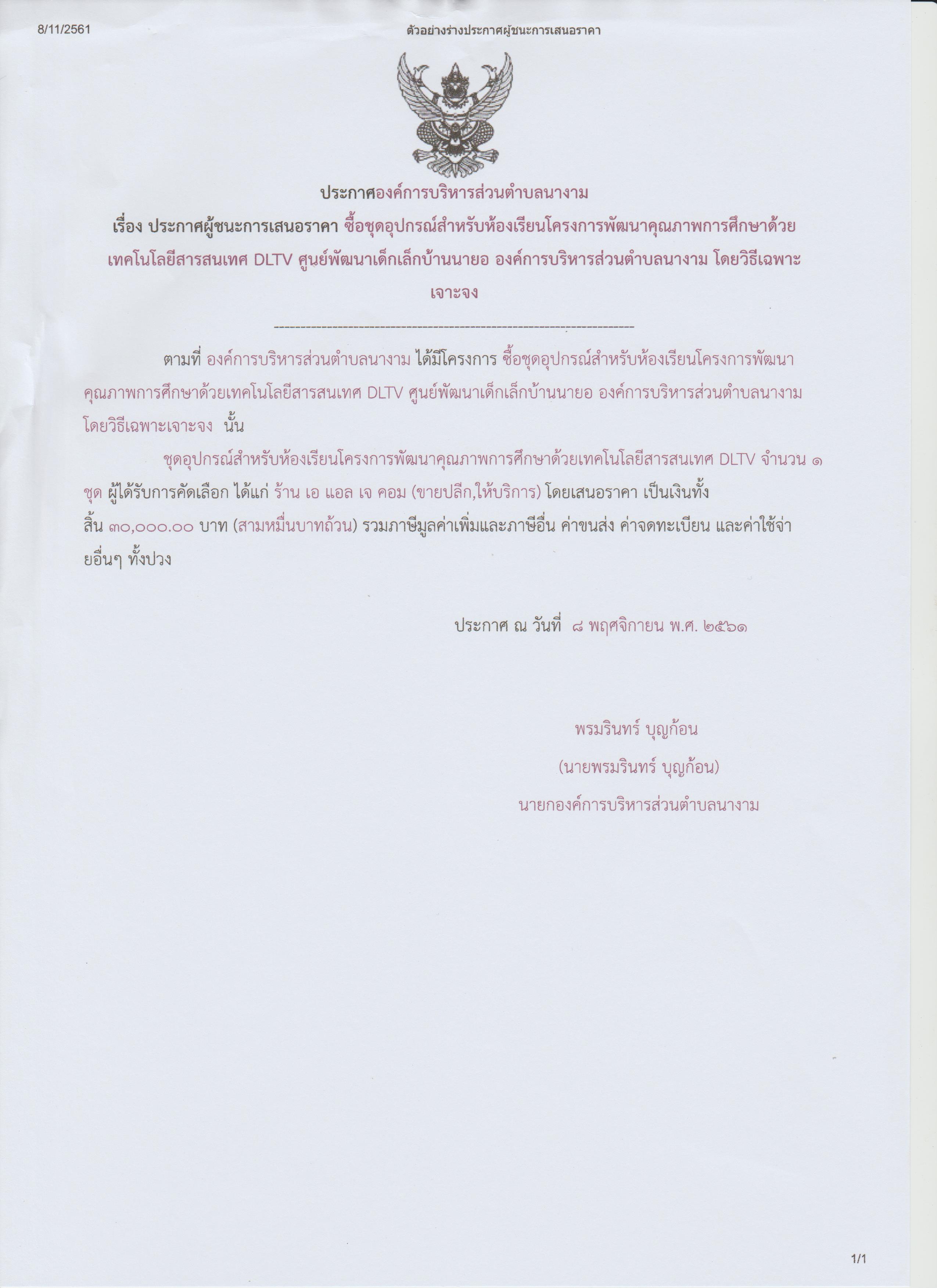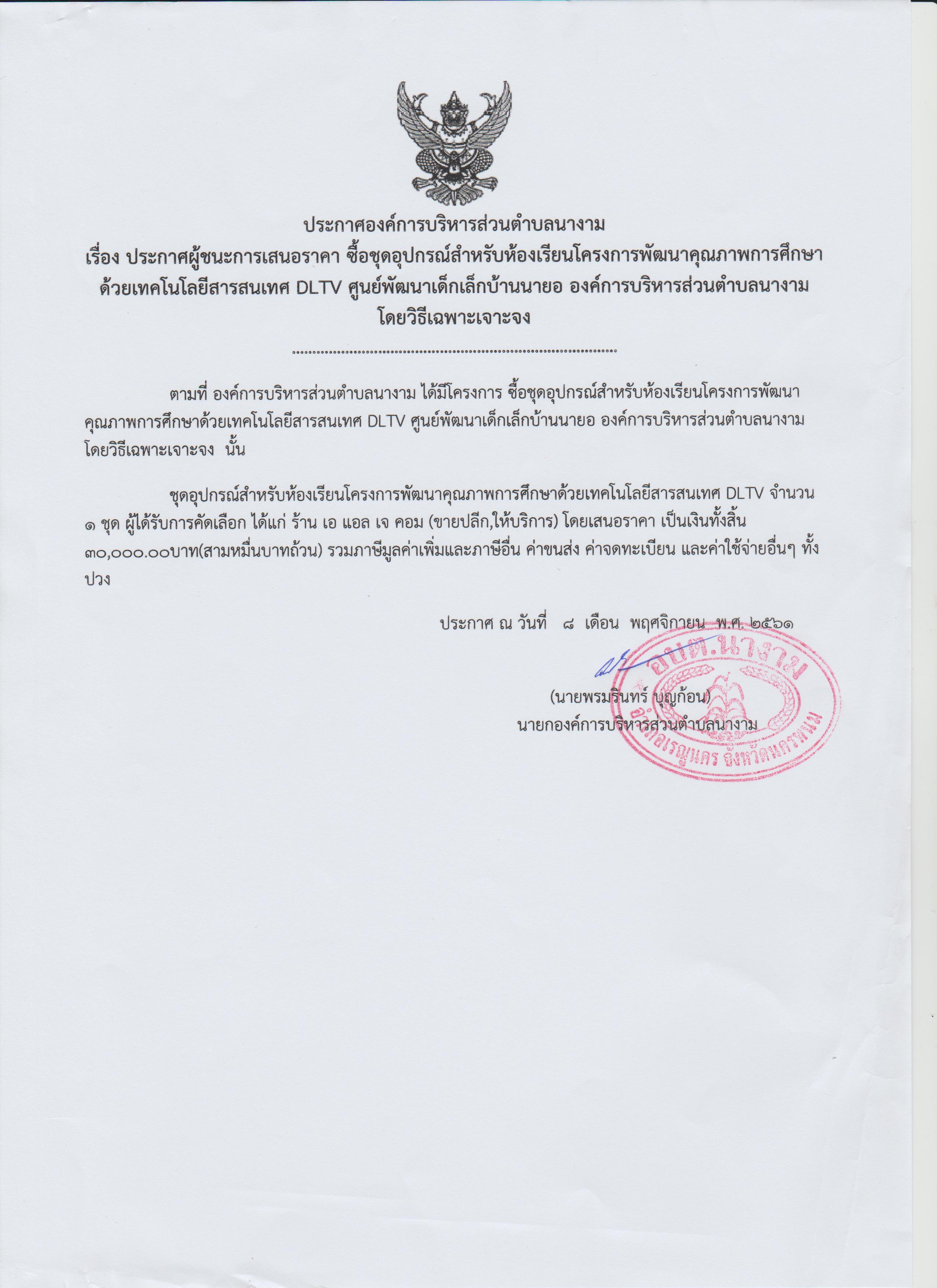 ประกาศผู้ชนะการจัดซื้อชุด DLTV