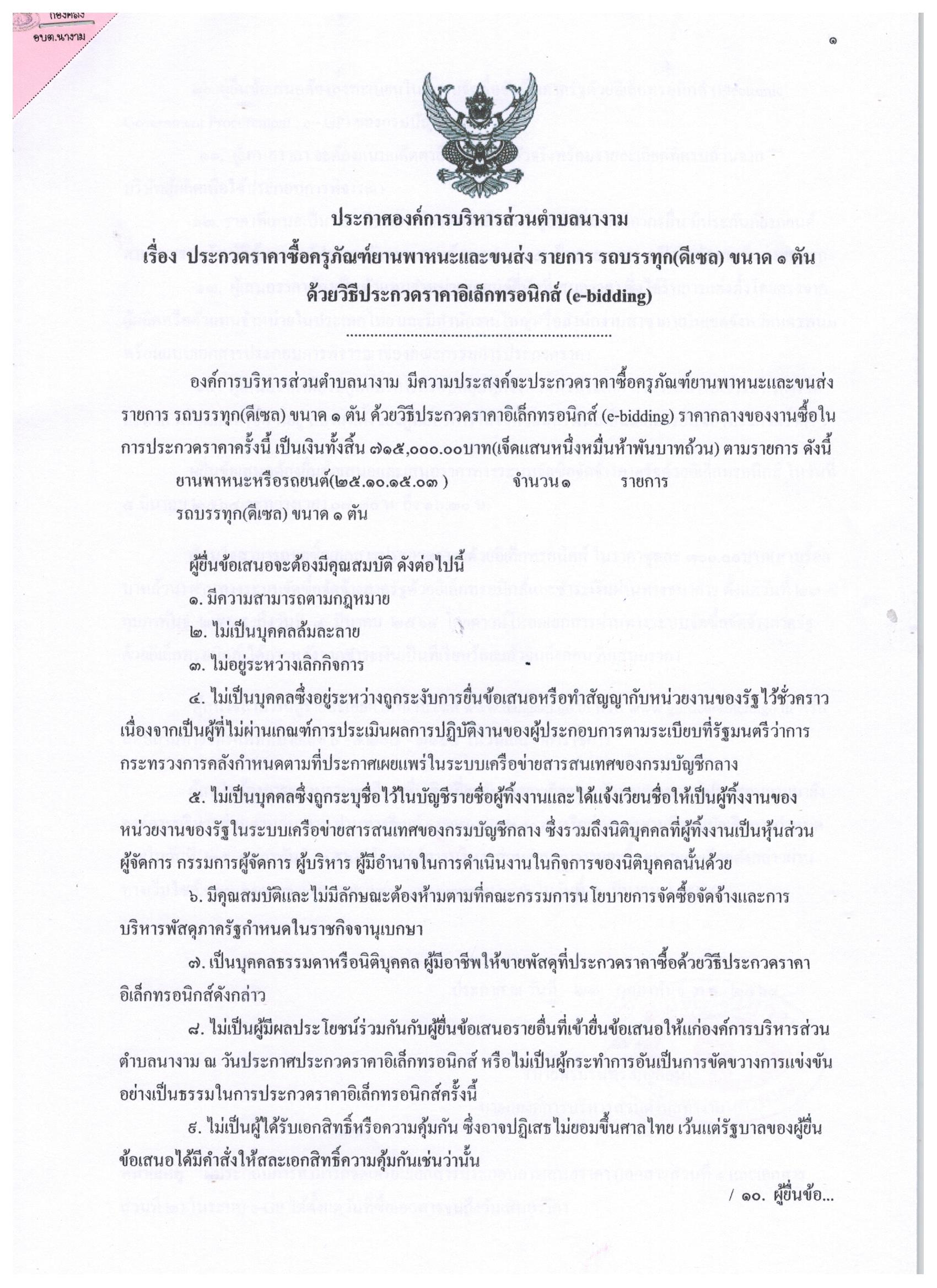 ประกาศประกวดราคาซื้อครุภัณฑ์ยานพาหนะและขนส่ง รายการ รถบรรทุก(ดีเซล) ขนาด ๑ ตัน ด้วยวิธีประกวดราคาอิเล็กทรอนิกส์ (e-bidding)