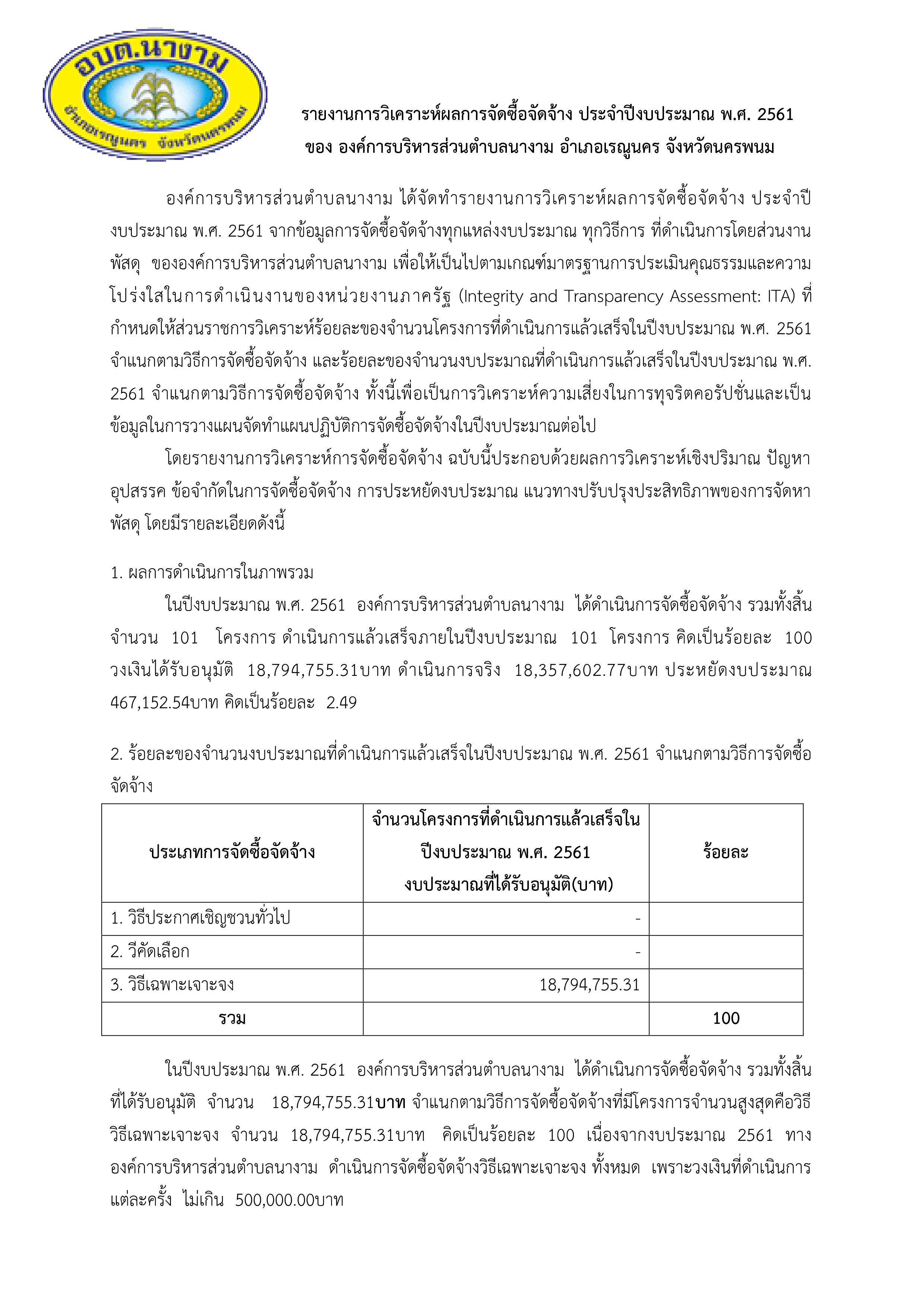 ชื่อเรื่อง : รายงานผลการจัดซื้อจัดจ้างหรือการจัดหาพัสดุ ประจำปีงบประมาณ 2561