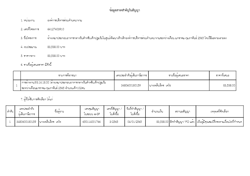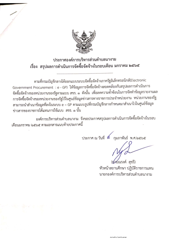 สรุปผลการดำเนินการจัดซื้อจัดจ้างศูนย์พัฒนาเด็กเล็กองค์การบริหารส่วนตำบลนางามเดือน มกราคม 2565