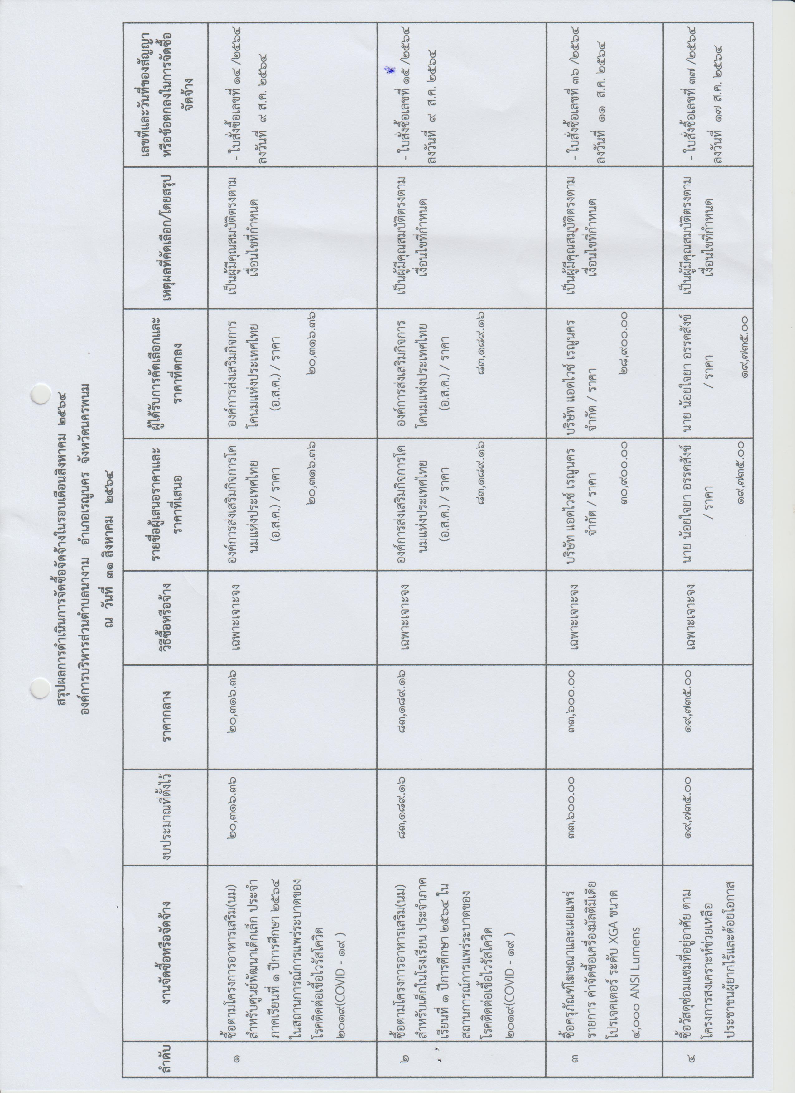 ชื่อเรื่อง : สรุปผลการดำเนินการจัดซื้อจัดจ้างในรอบเดือนสิงหาคม 2564