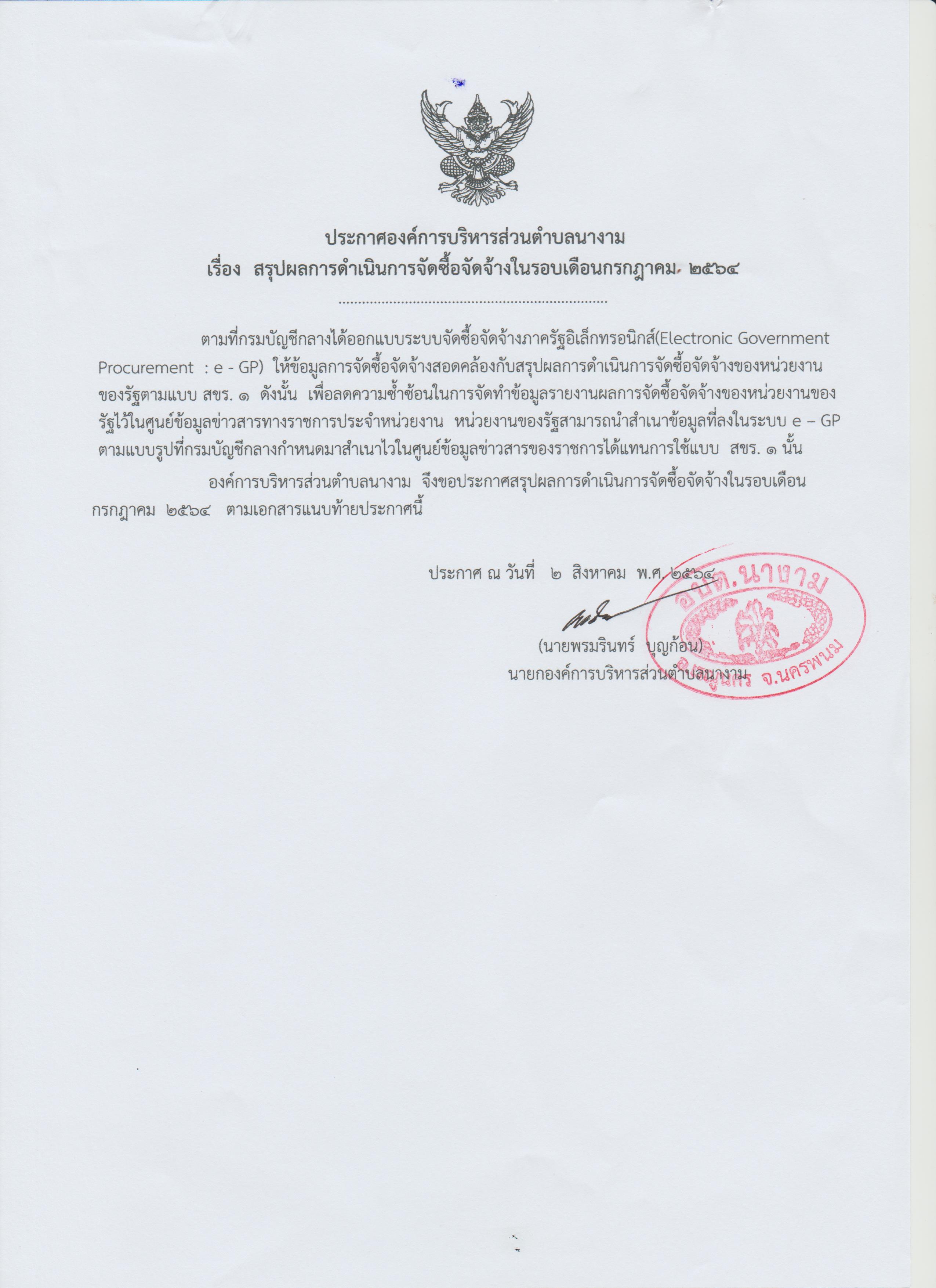 สรุปผลการดำเนินงานจัดซื้อจัดจ้างในรอบเดือนกรกฎาคม2564
