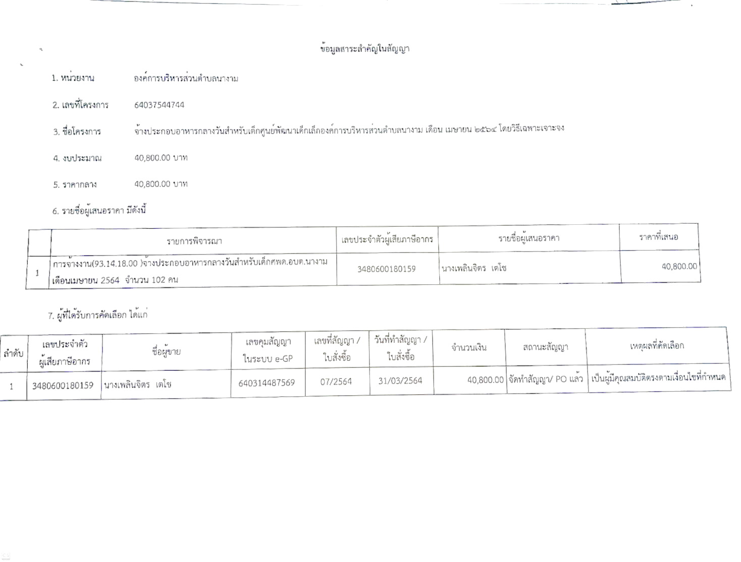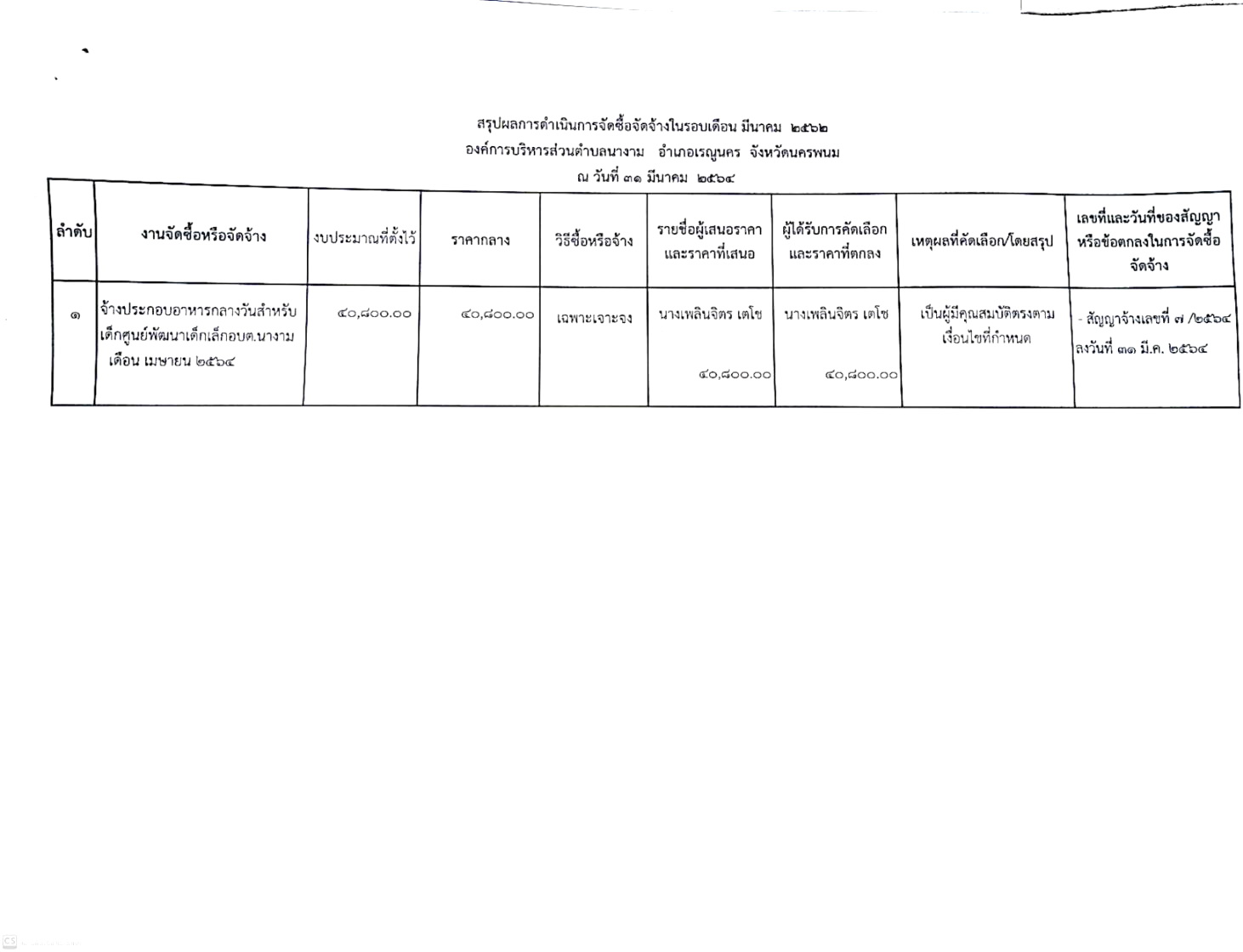 ชื่อเรื่อง : สรุปผลการดำเนินการจัดซื้อจัดจ้างศูนย์พัฒนาเด็กเล็กองค์การบริหารส่วนตำบลนางามเดือน มีนาคม 2564