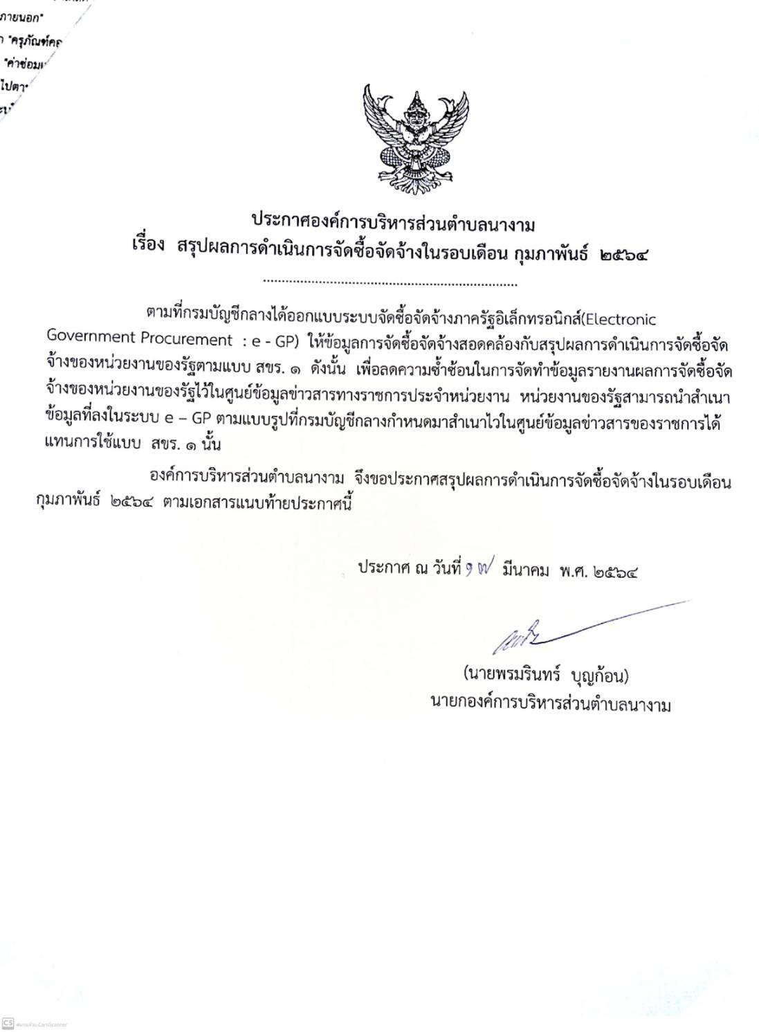 สรุปผลการดำเนินการจัดซื้อจัดจ้างศูนย์พัฒนาเด็กเล็กองค์การบริหารส่วนตำบลนางามระหว่างเดือนกุมภาพันธ์ 2564