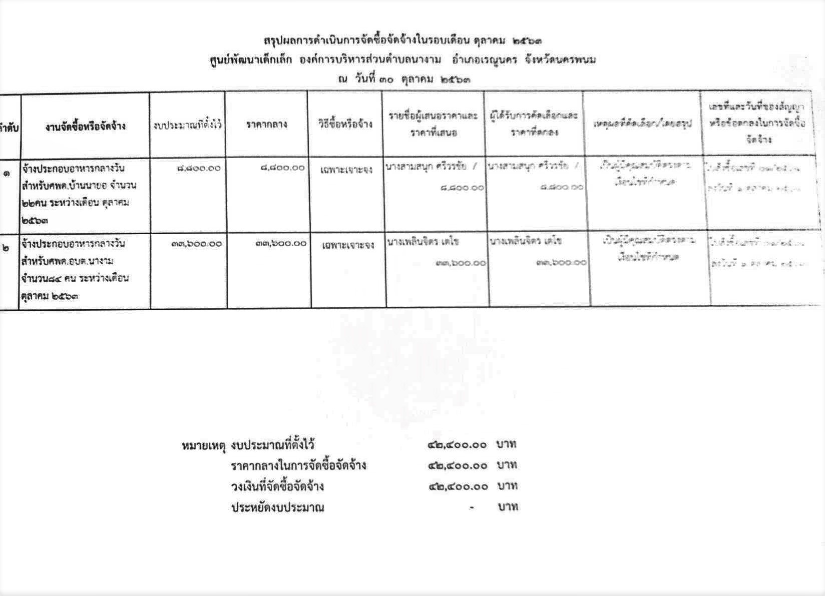 สรุปผลการดำเนินการจัดซื้อจัดจ้างศูนย์พัฒนาเด็กเล็กองค์การบริหารส่วนตำบลนางามระหว่างเดือนตุลาคม 2563-มกราคม2564