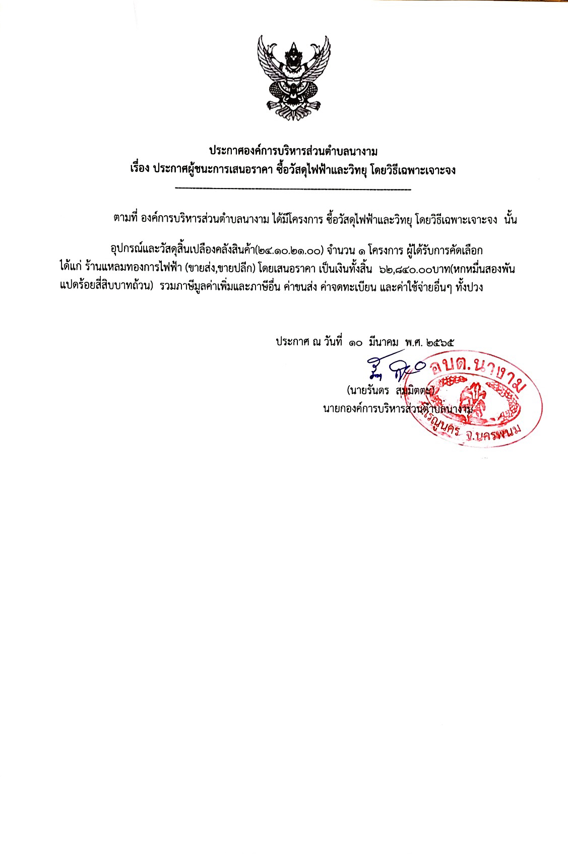 ประกาศผู้ชนะการเสนอราคา ซื้อวัสดุไฟฟ้าและวิทยุ โดยวิธีเฉพาะเจาะจง