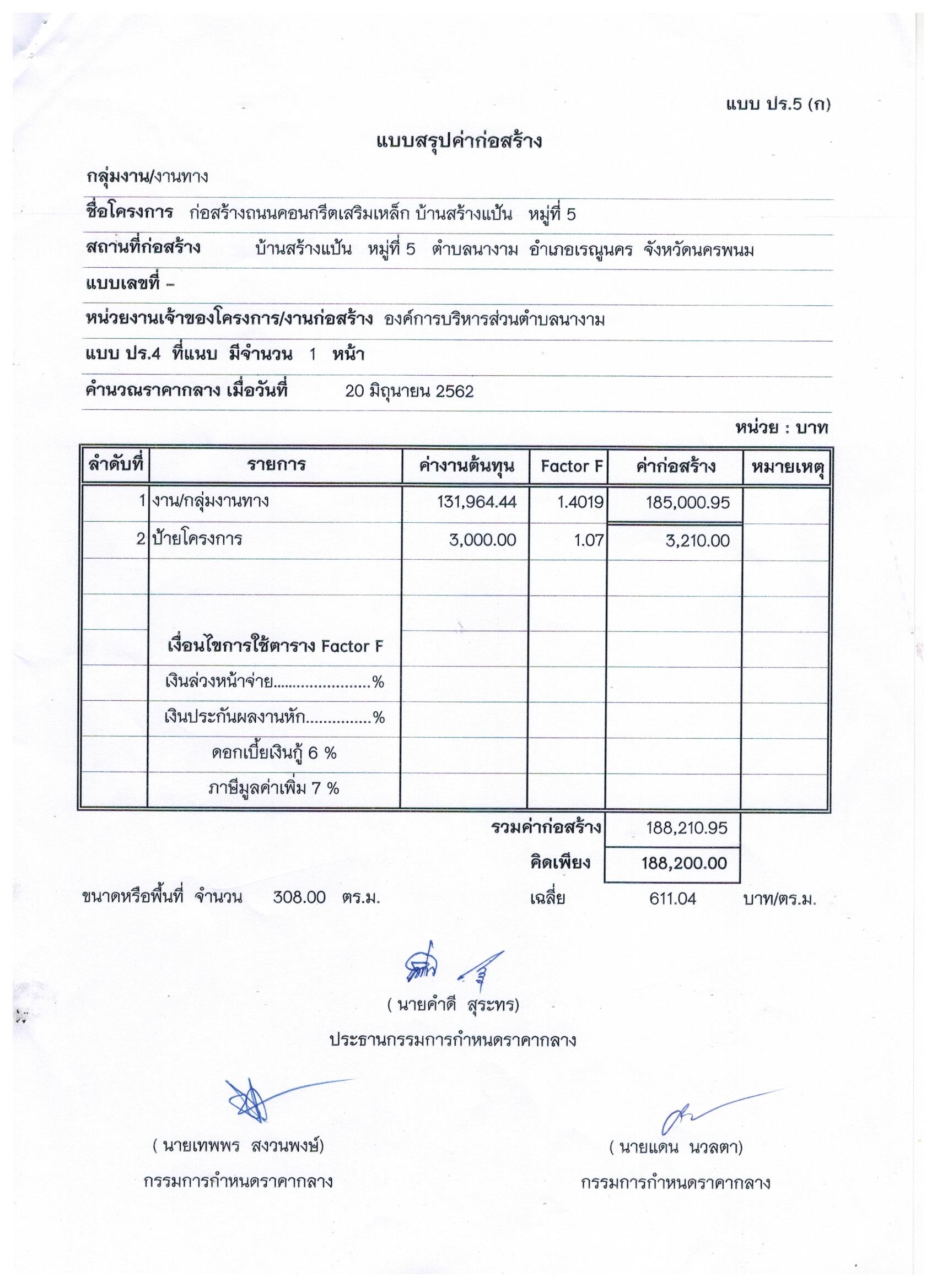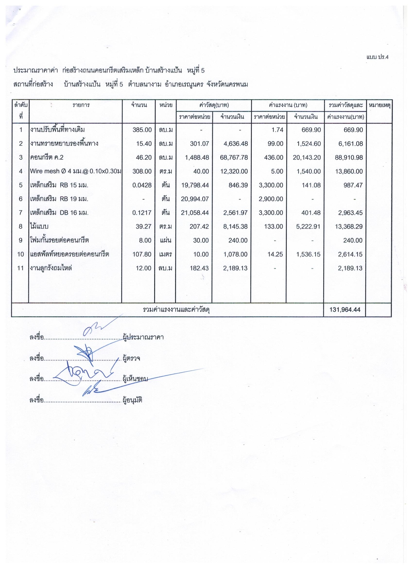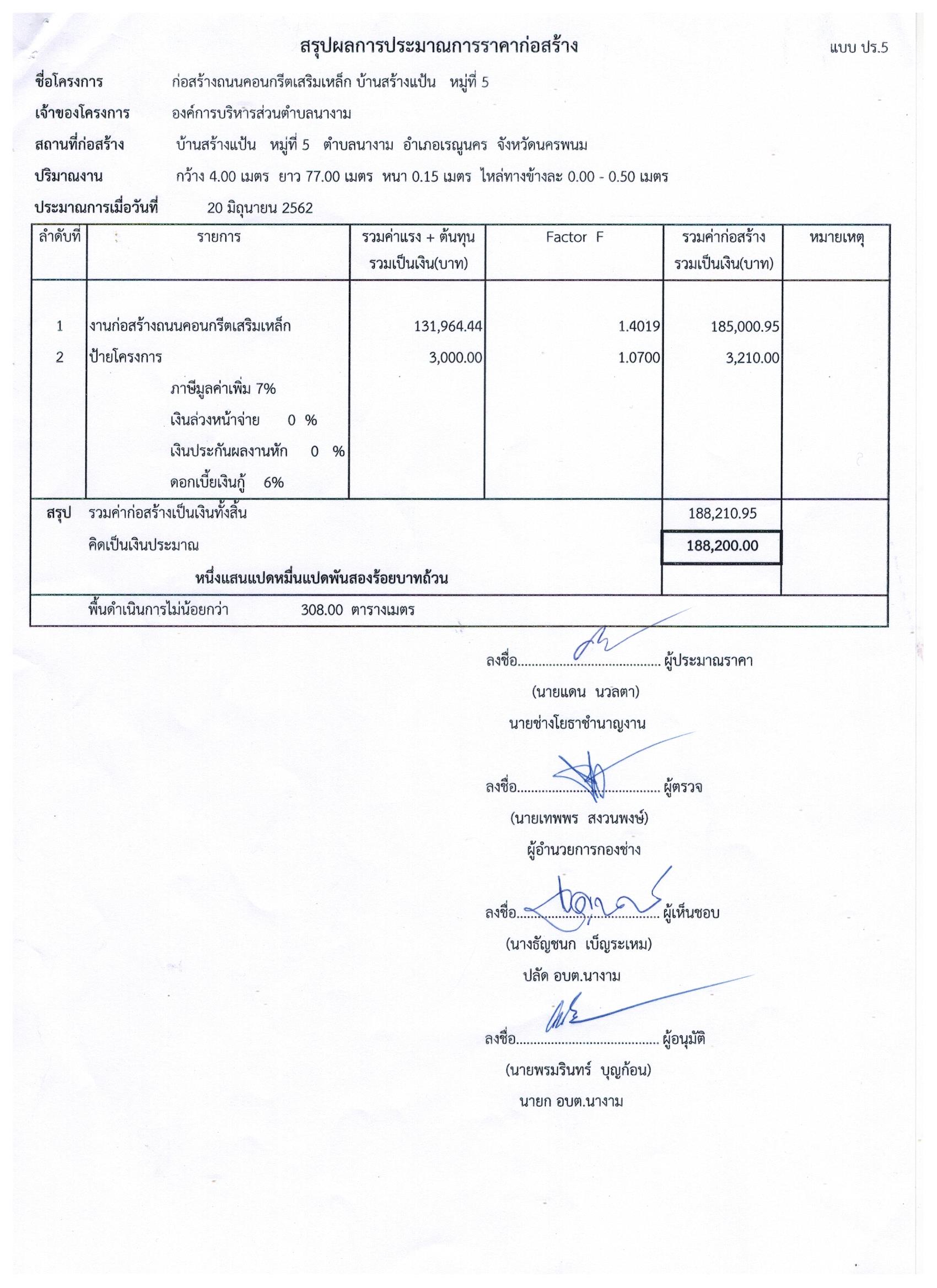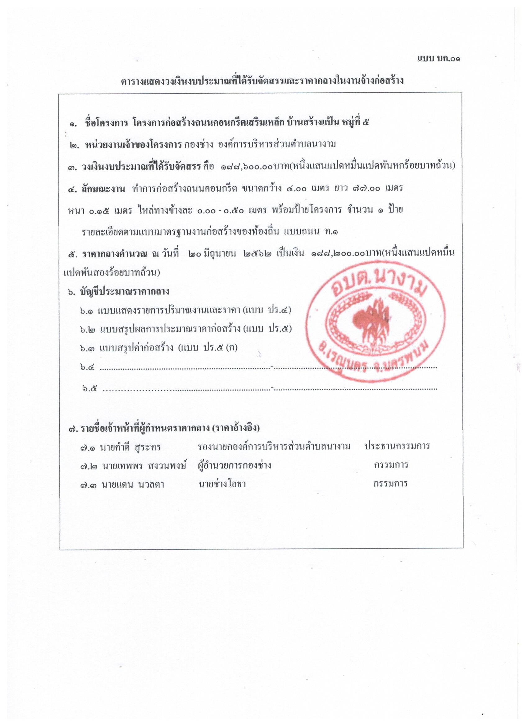 ประชาสัมพันธ์การเปิดเผยราคากลางตามโครงการก่อสร้างถนนคอนกรีตเสริมเหล็ก บ้านสร้างแป้น หมู่ที่ ๕ โดยวิธีเฉพาะเจาะจง