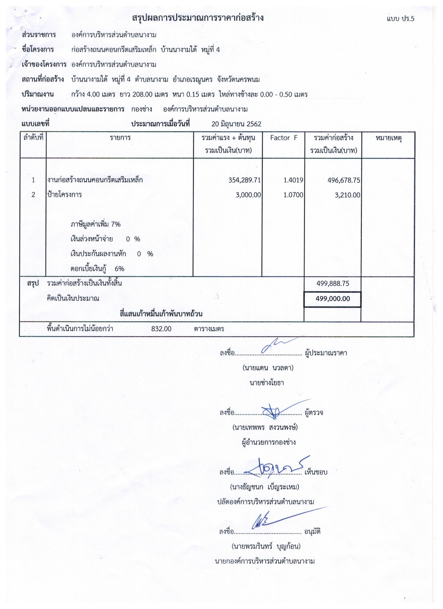 ประชาสัมพันธ์การเปิดเผยราคากลางตามโครงการก่อสร้างถนนคอนกรีตเสริมเหล็ก บ้านนางามใต้ หมู่ที่ ๔