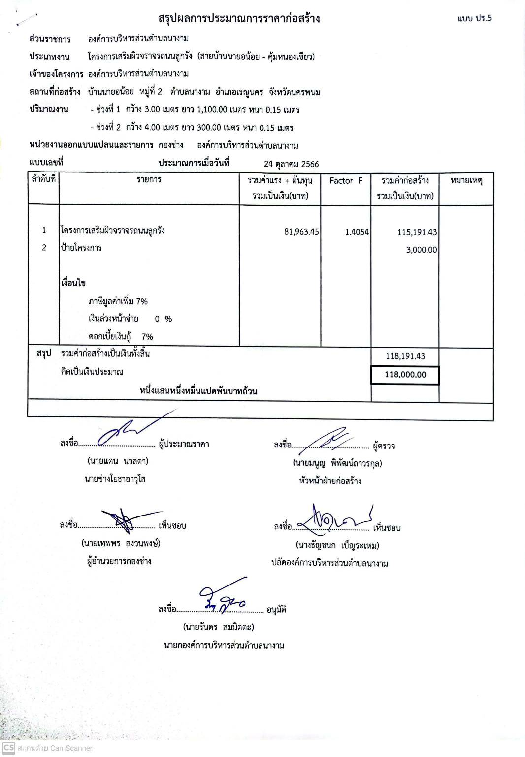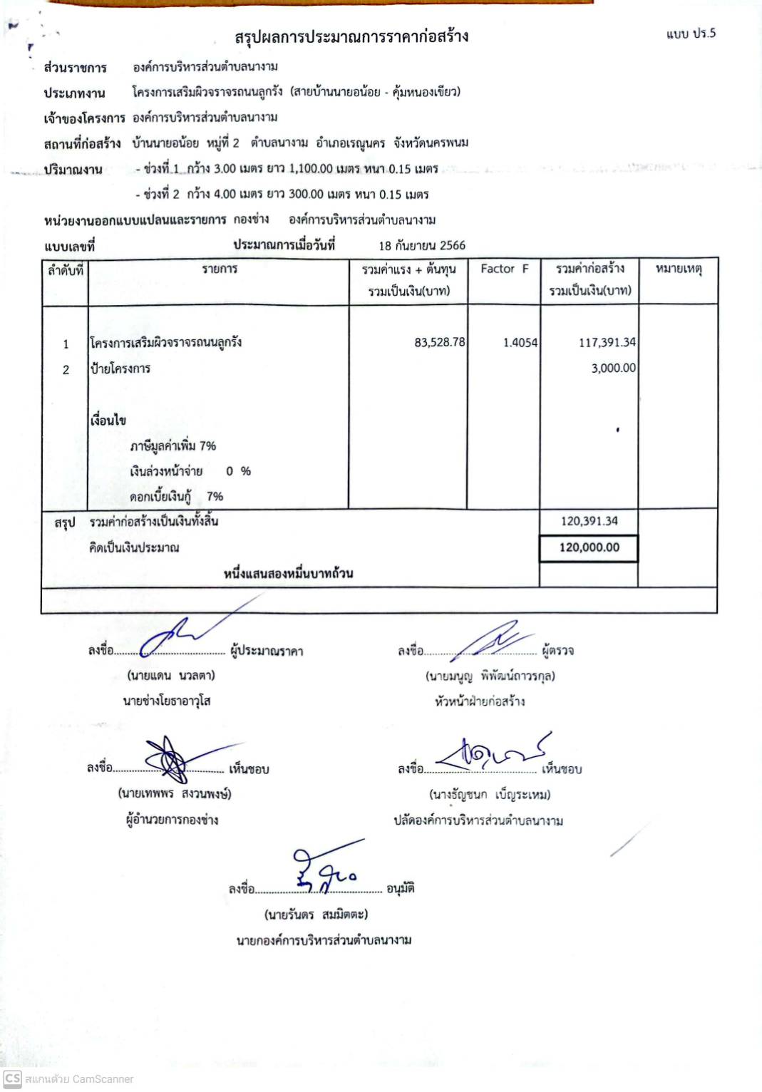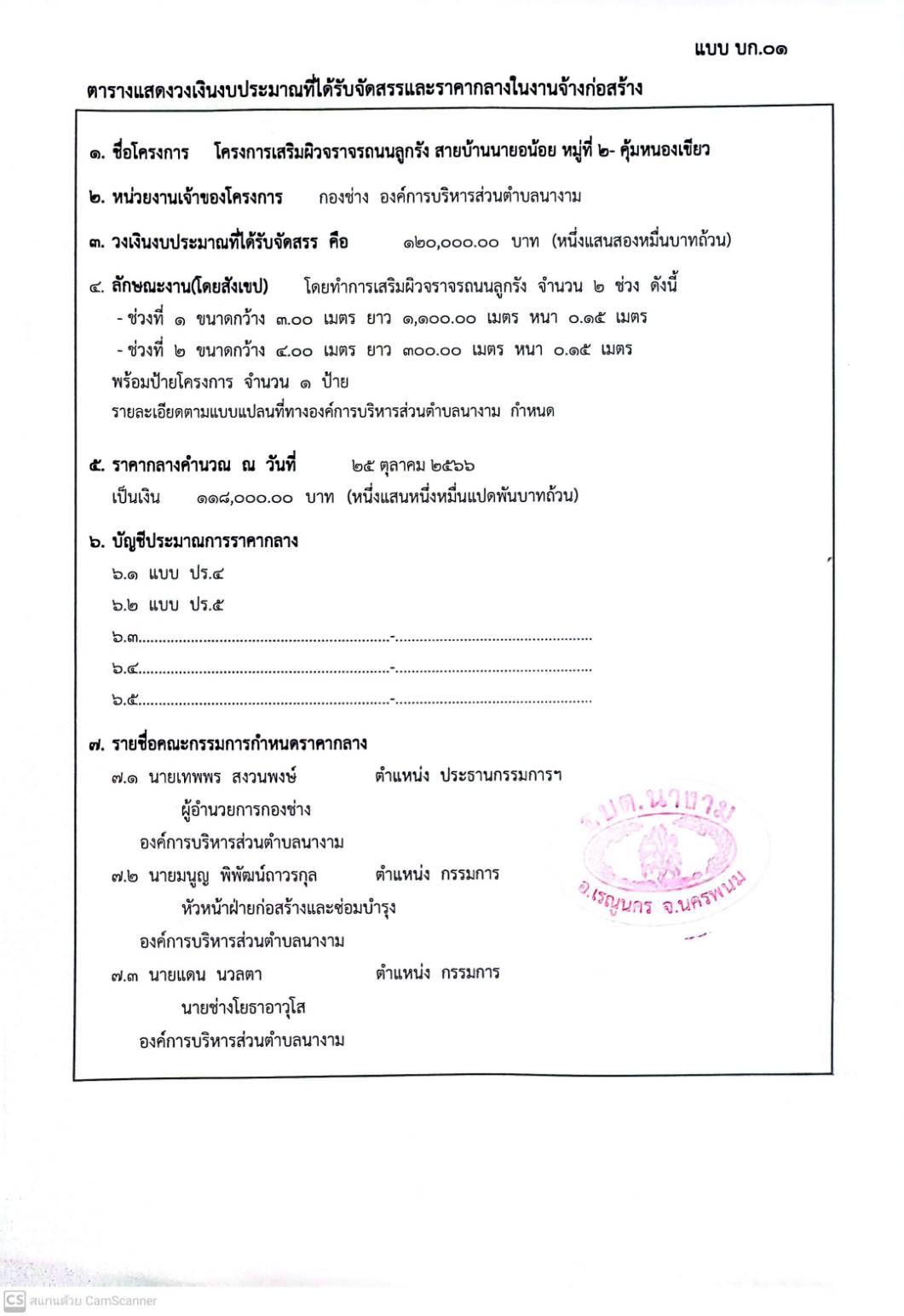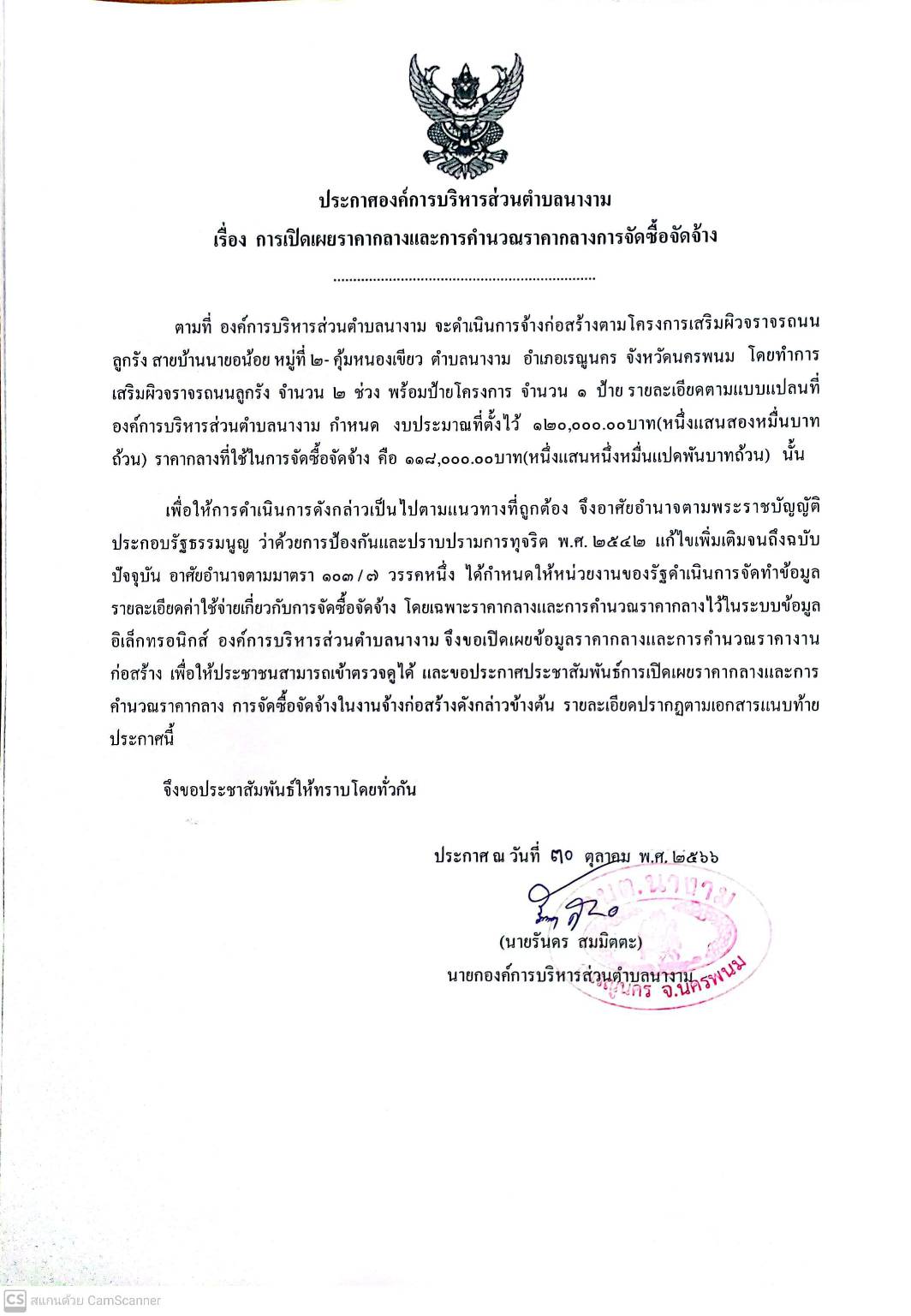 ประชาสัมพันธ์การเปิดเผยราคากลางตามโครงการเสริมผิวจราจรถนนลูกรัง สายบ้านนายอน้อย หมู่ที่ 2 - คุ้มหนองเขียว