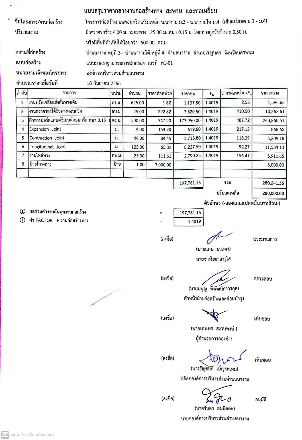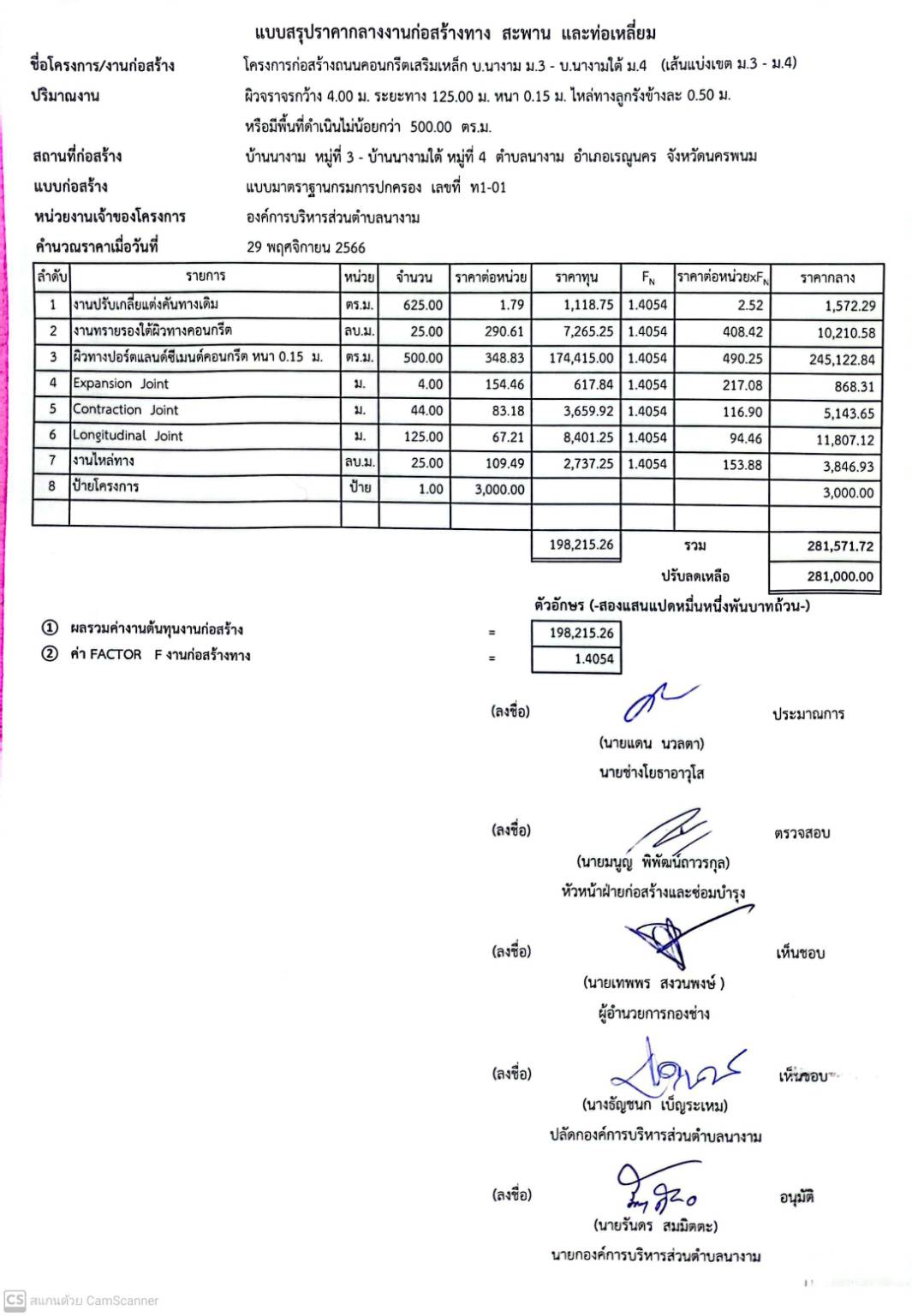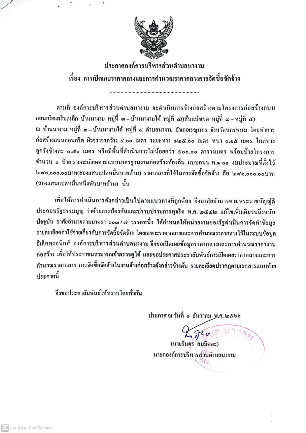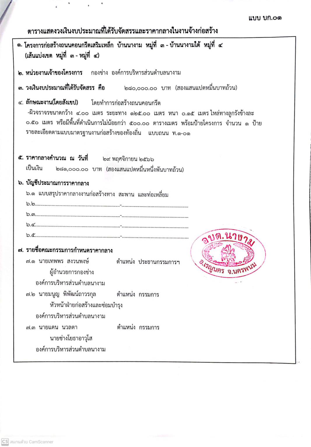 ประชาสัมพันธ์การเปิดเผยราคากลางตามโครงการก่อสร้างถนนคอนกรีตเสริมเหล็ก บ้านนางาม หมู่ที่ 3 - บ้านนางามใต้ หมู่ที่ 4(เส้นแบ่งเขต หมู่ที่ 3 - หมู่ที่ 4)