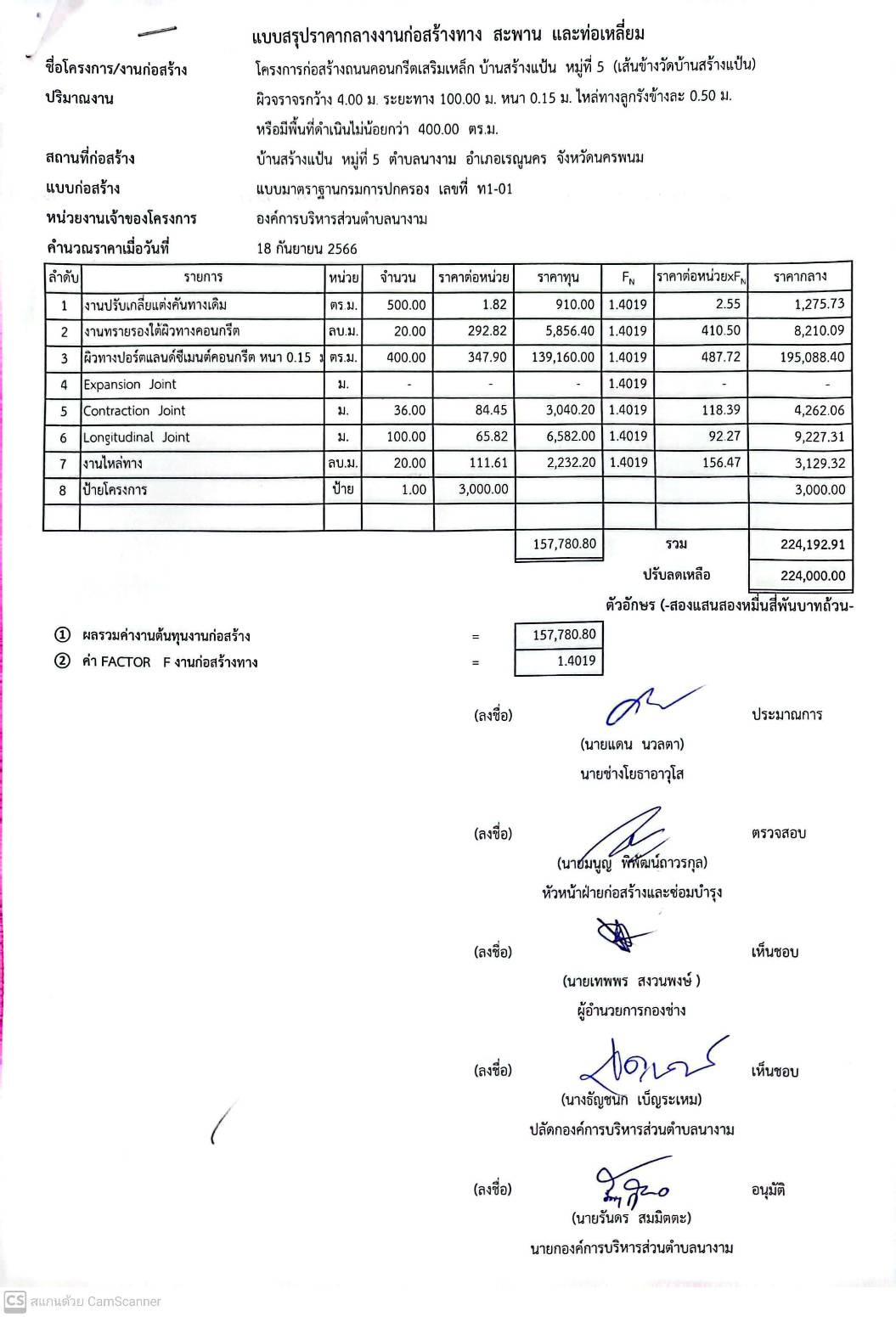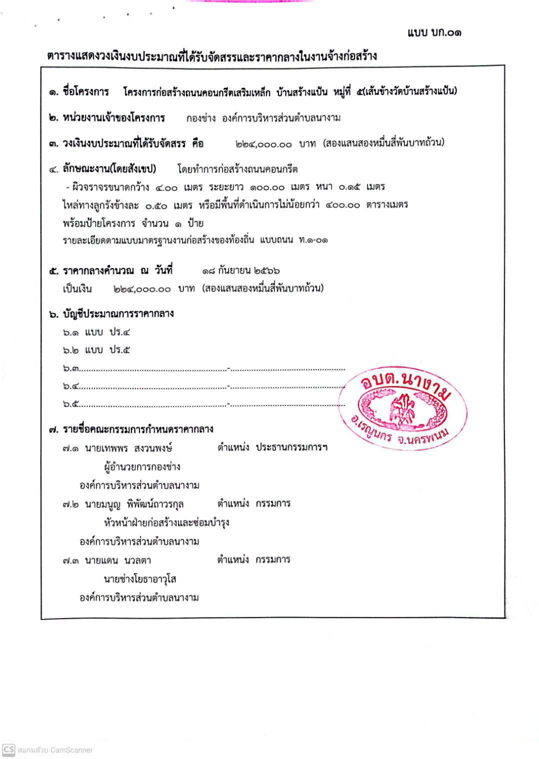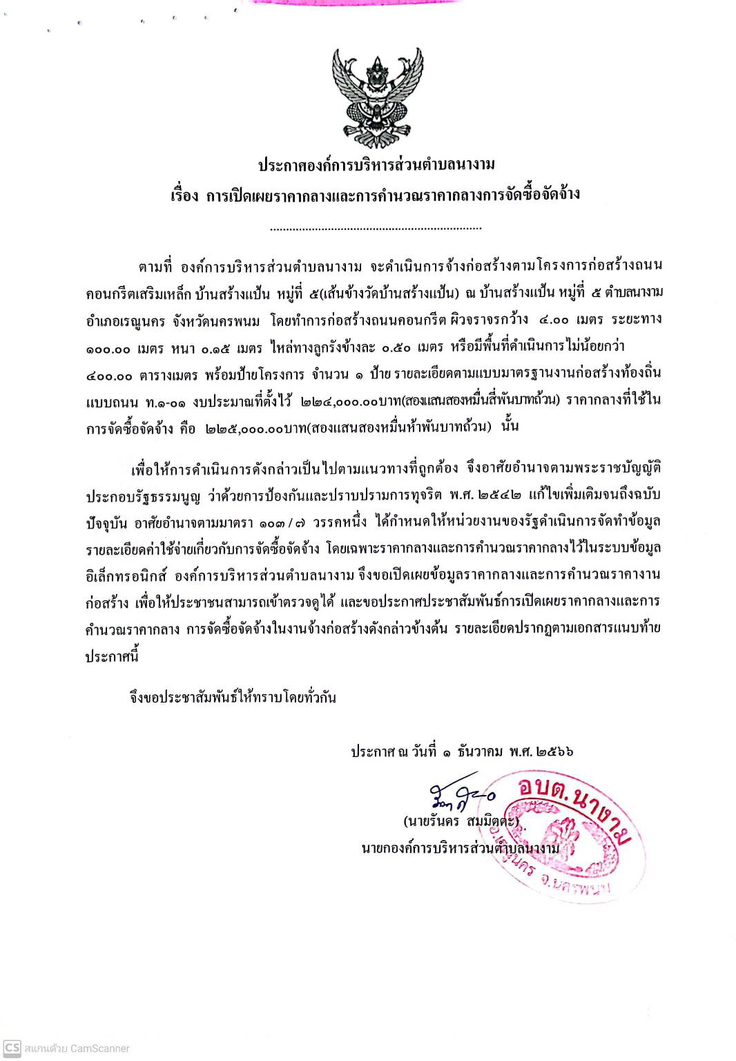 ประชาสัมพันธ์การเปิดเผยราคากลางตามโครงการก่อสร้างถนนคอนกรีตเสริมเหล็ก บ้านสร้างแป้น หมู่ที่ 5(เส้นข้างวัดบ้านสร้างแป้น)