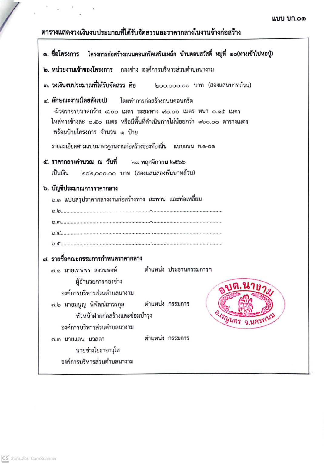 ชื่อเรื่อง : ประชาสัมพันธ์การเปิดเผยราคากลางตามโครงการก่อสร้างถนนคอนกรีตเสริมเหล็ก บ้านดอนสวัสดิ์ หมู่ที่ 10(ทางเข้าไปหอปู่)