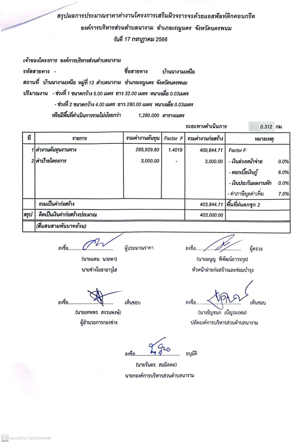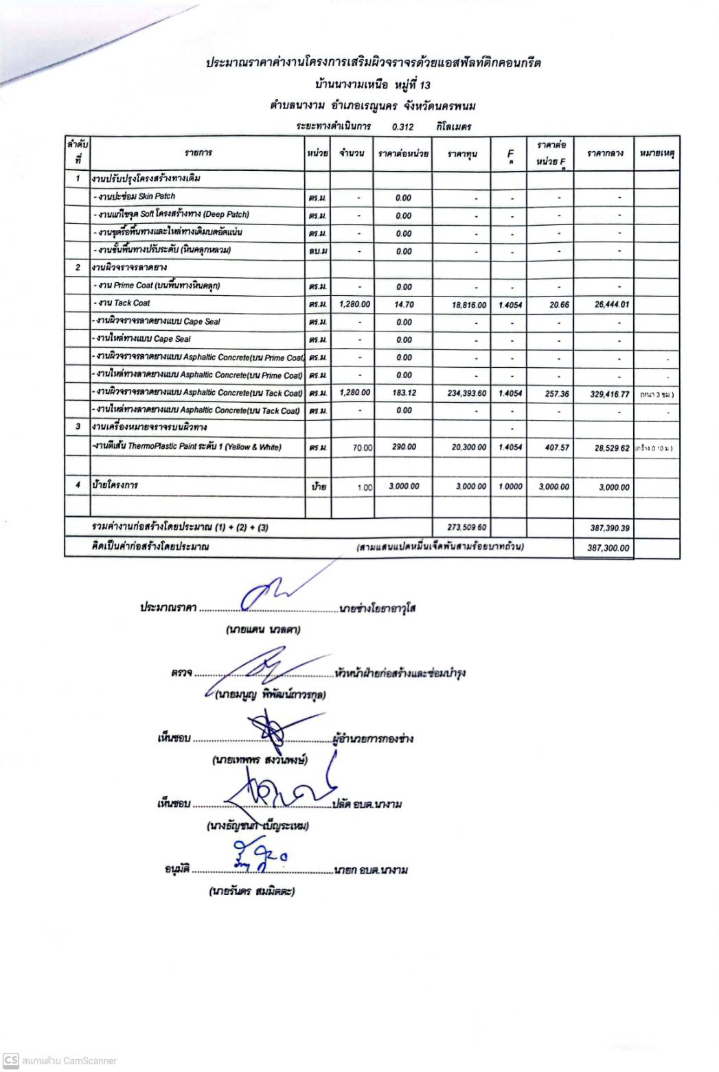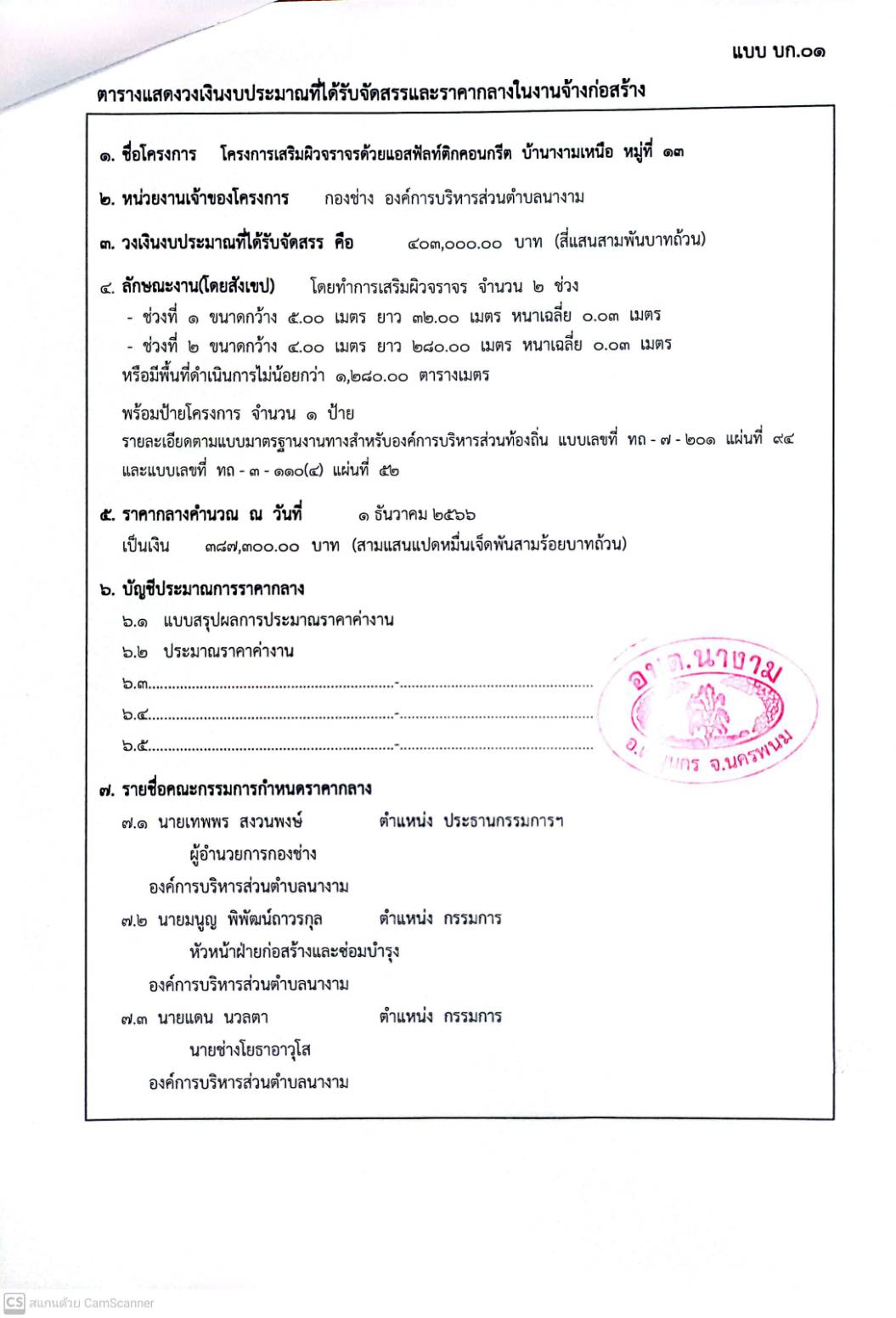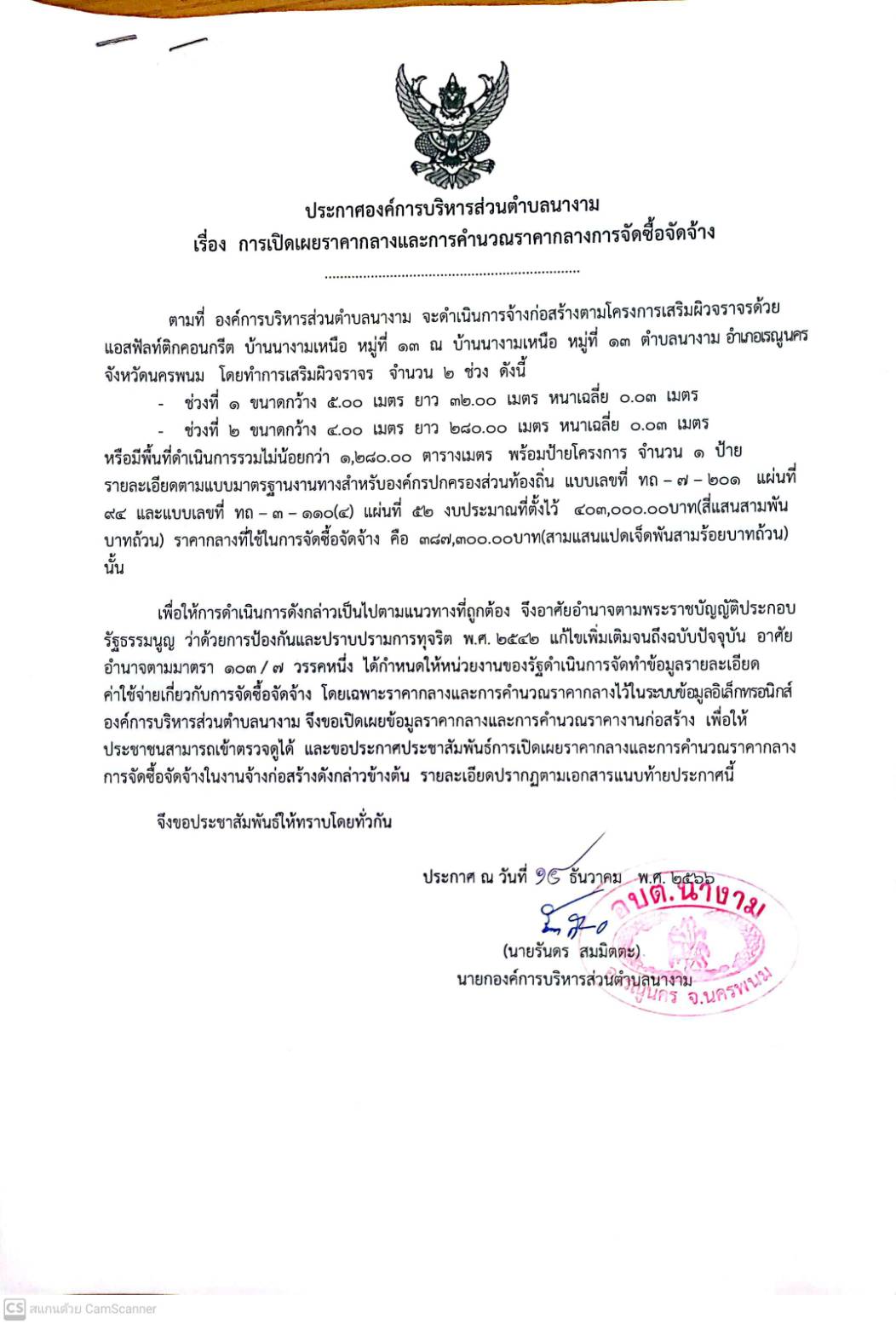 ประชาสัมพันธ์การเปิดเผยราคากลางตามโครงการเสริมผิวจราจรด้วยแอสฟัลท์ติกคอนกรีต บ้านนางามเหนือ หมู่ที่ 13