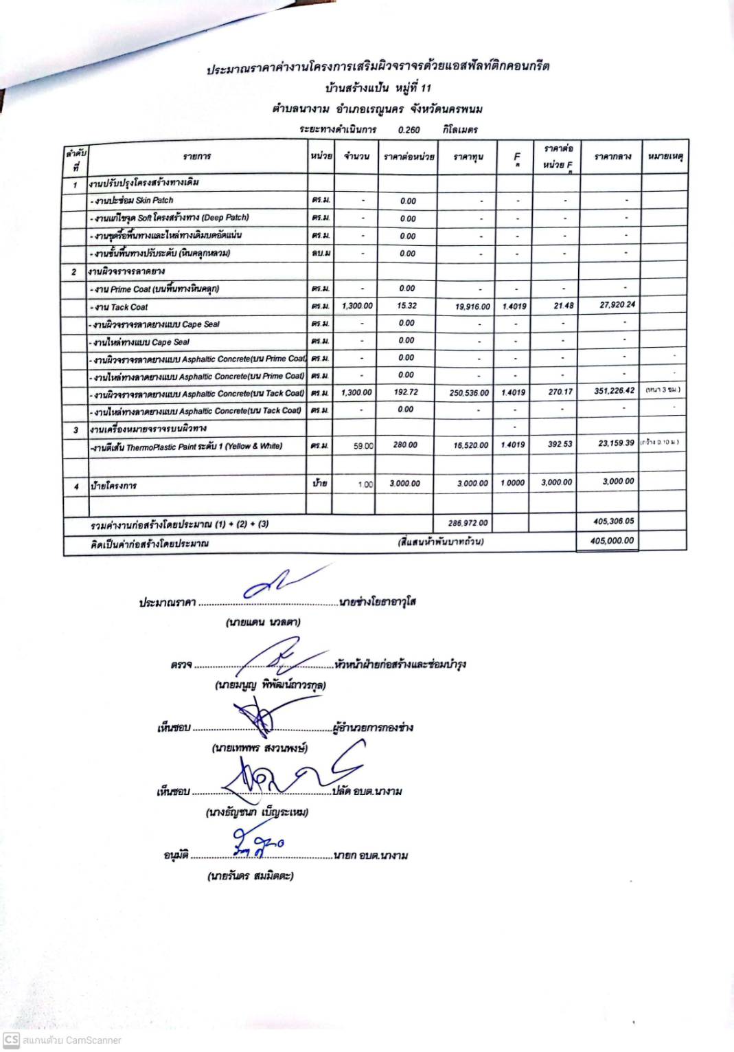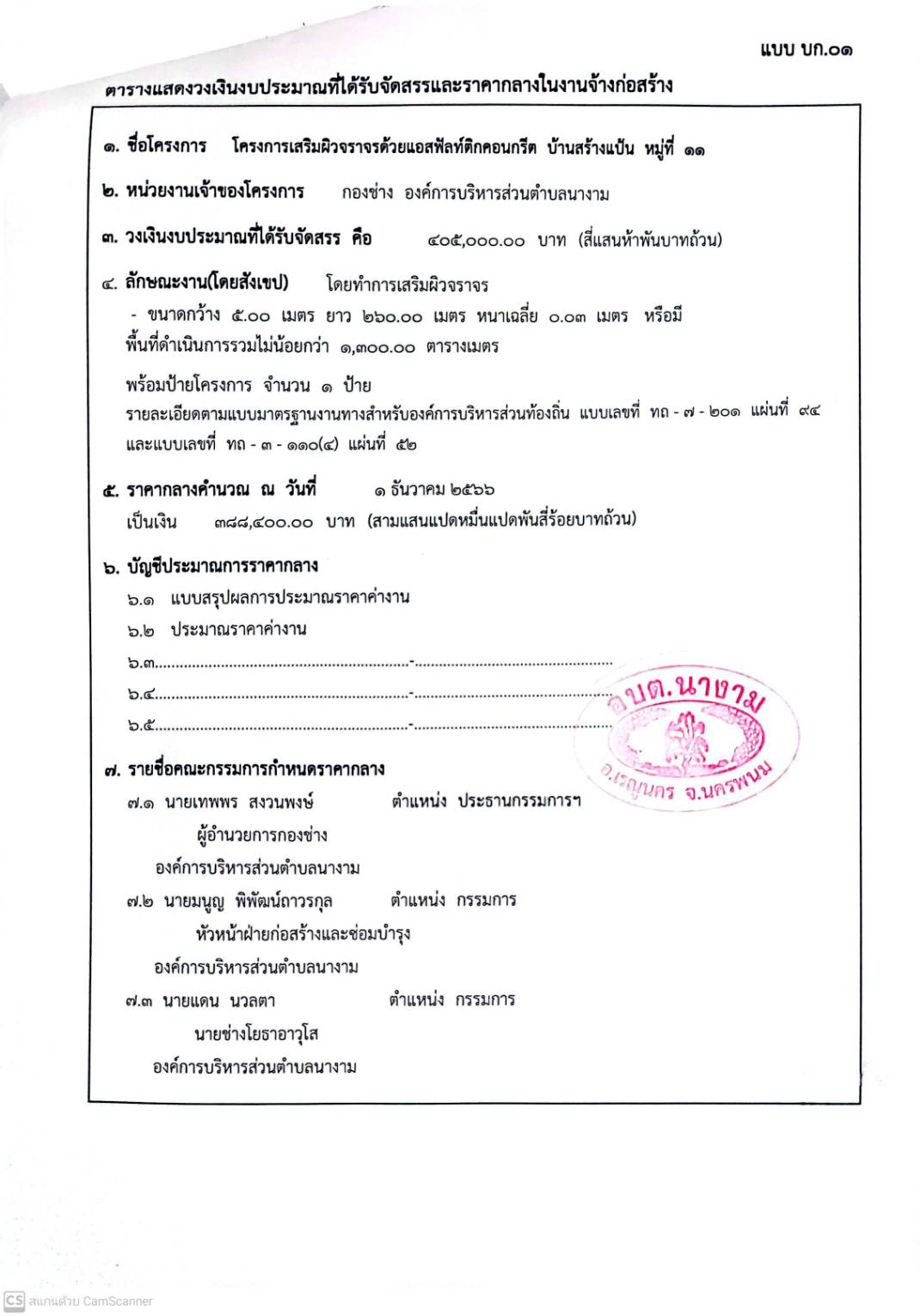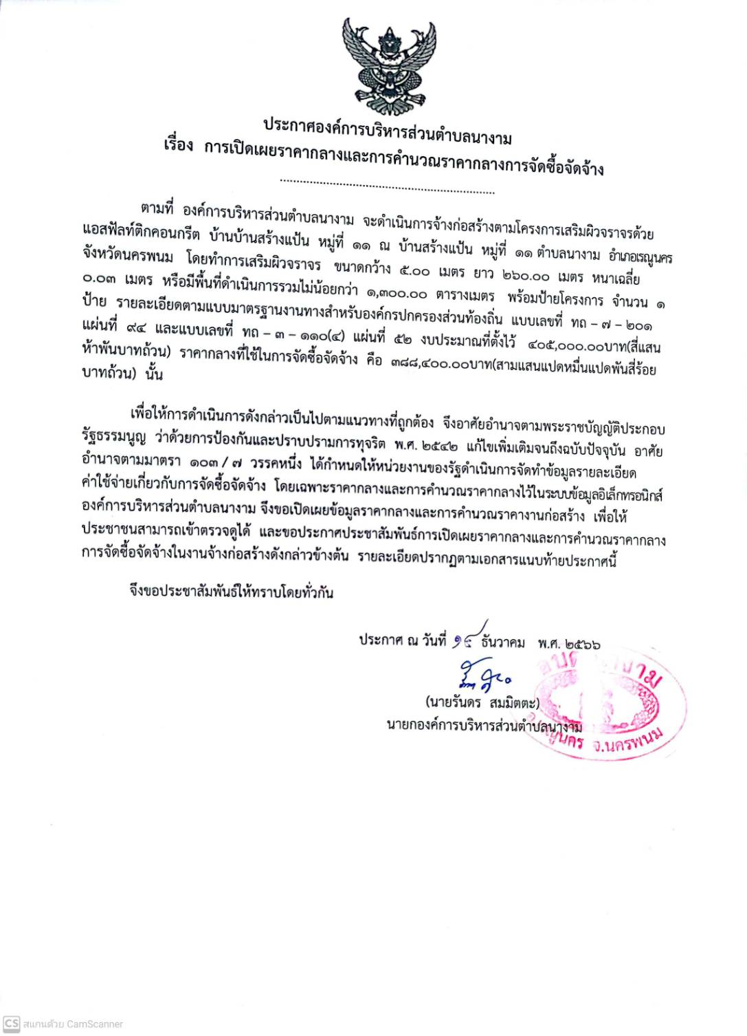 ประชาสัมพันธ์การเปิดเผยราคากลางตามโครงการเสริมผิวจราจรด้วยแอสฟัลท์ติกคอนกรีต บ้านสร้างแป้น หมู่ที่ 11