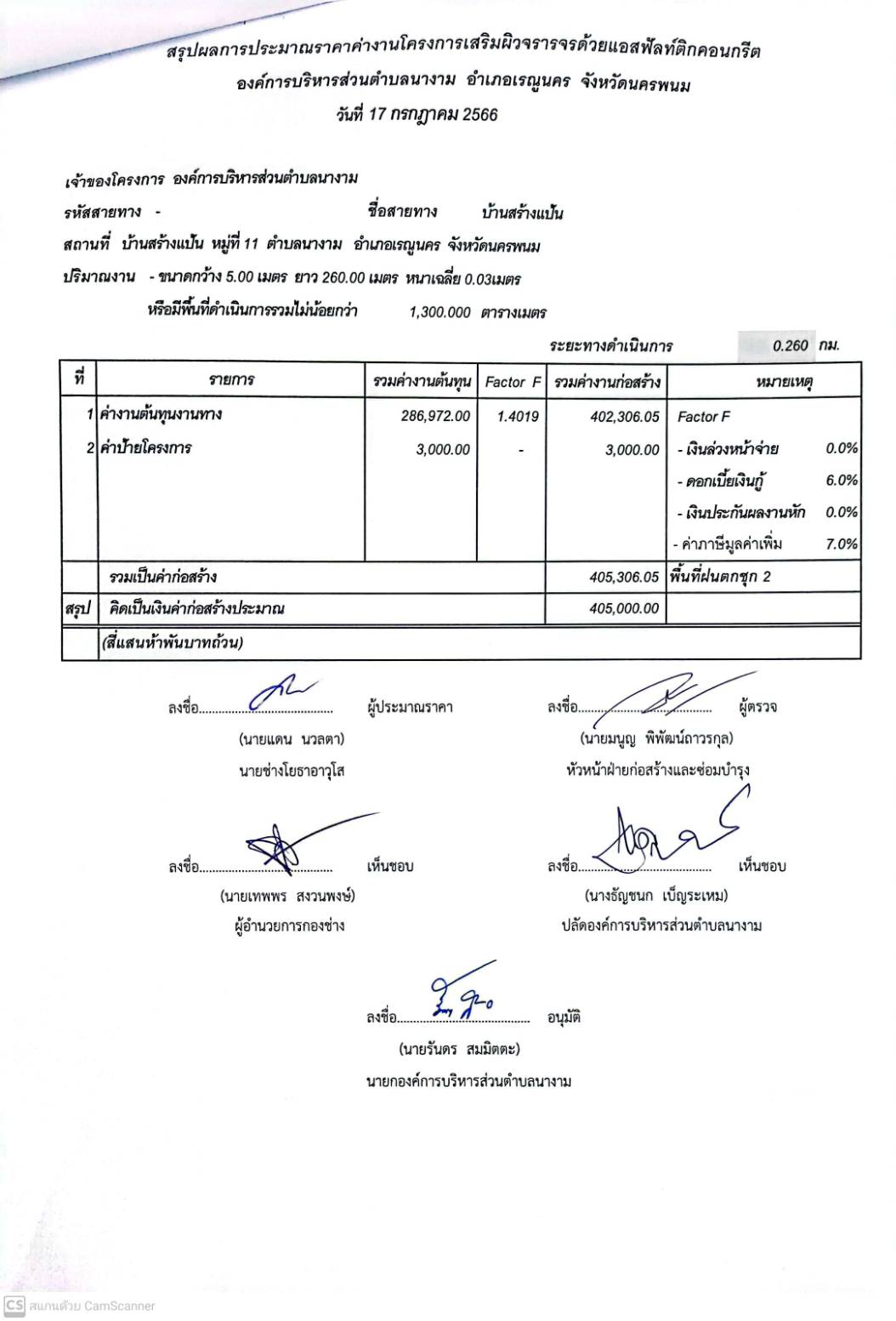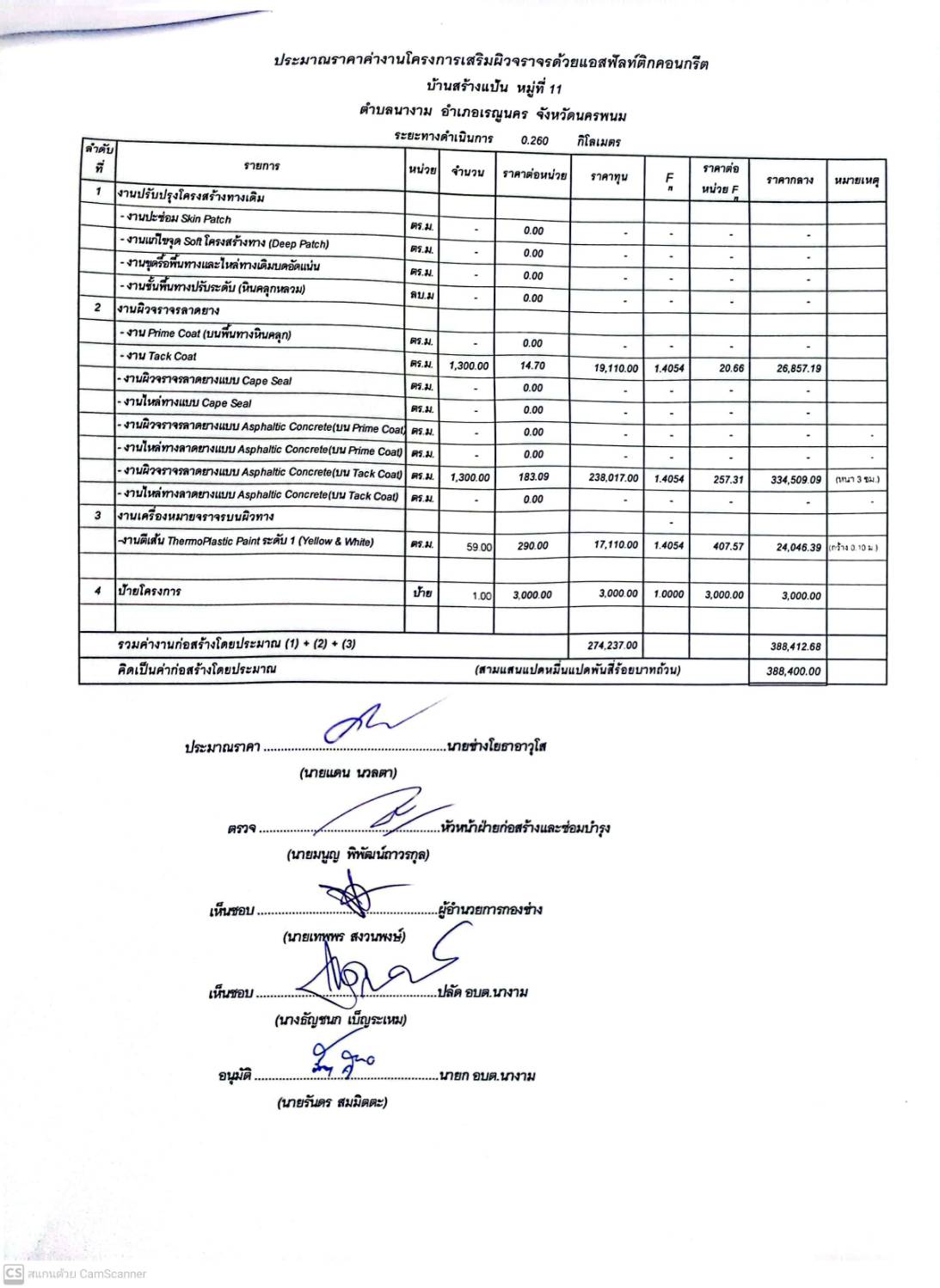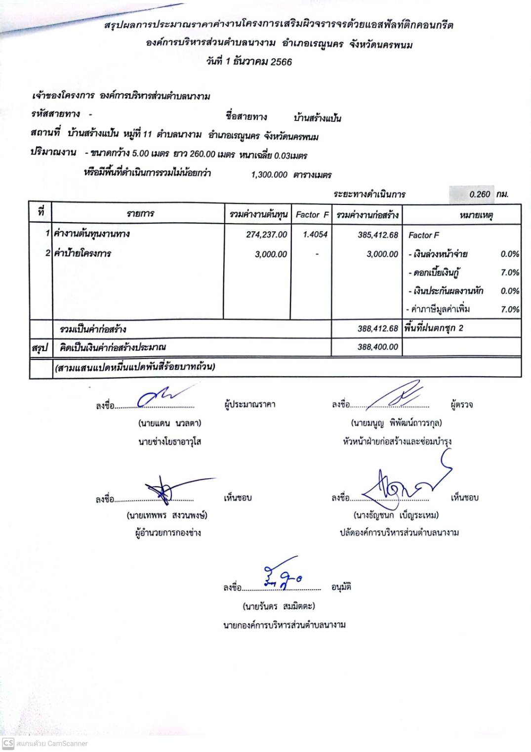 ประชาสัมพันธ์การเปิดเผยราคากลางตามโครงการเสริมผิวจราจรด้วยแอสฟัลท์ติกคอนกรีต บ้านสร้างแป้น หมู่ที่ 11