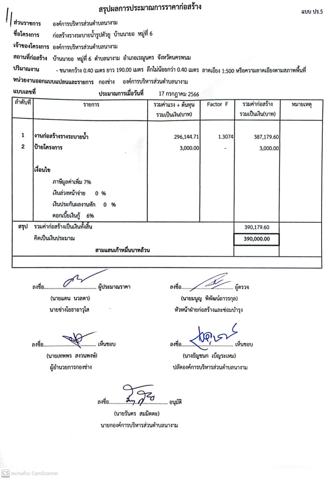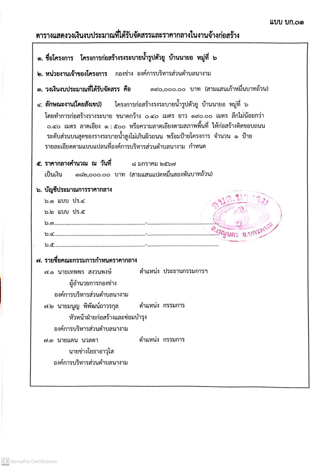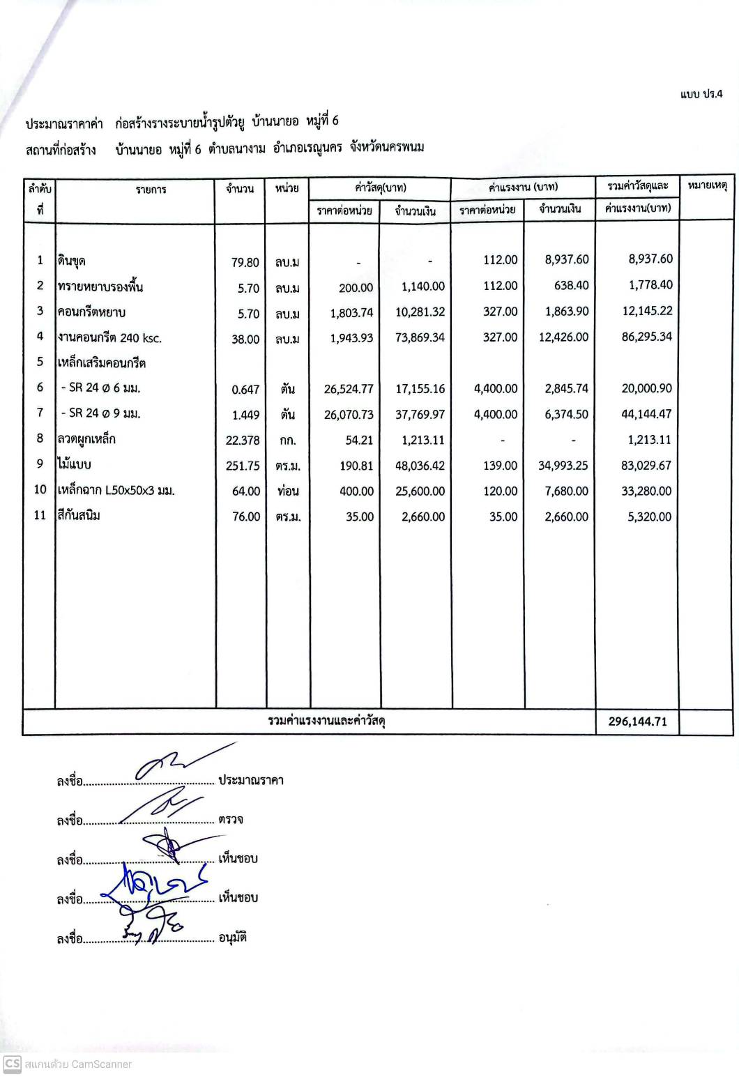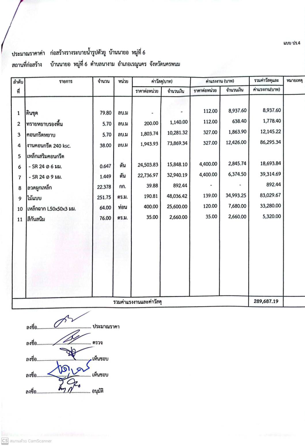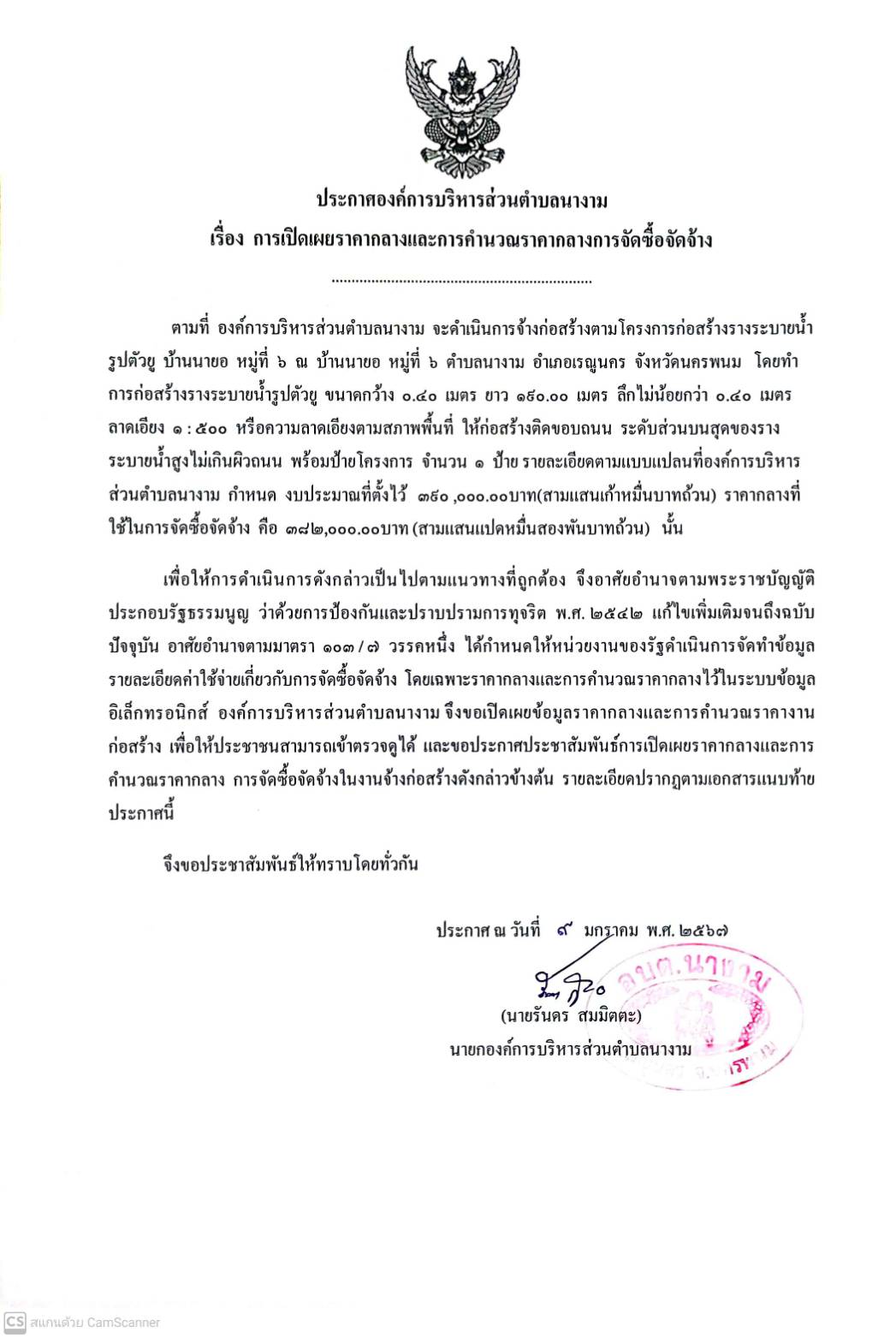 ประชาสัมพันธ์การเปิดเผยราคากลางตามโครงการก่อสร้างรางระบายน้ำรูปตัวยู บ้านนายอ หมู่ที่ 6