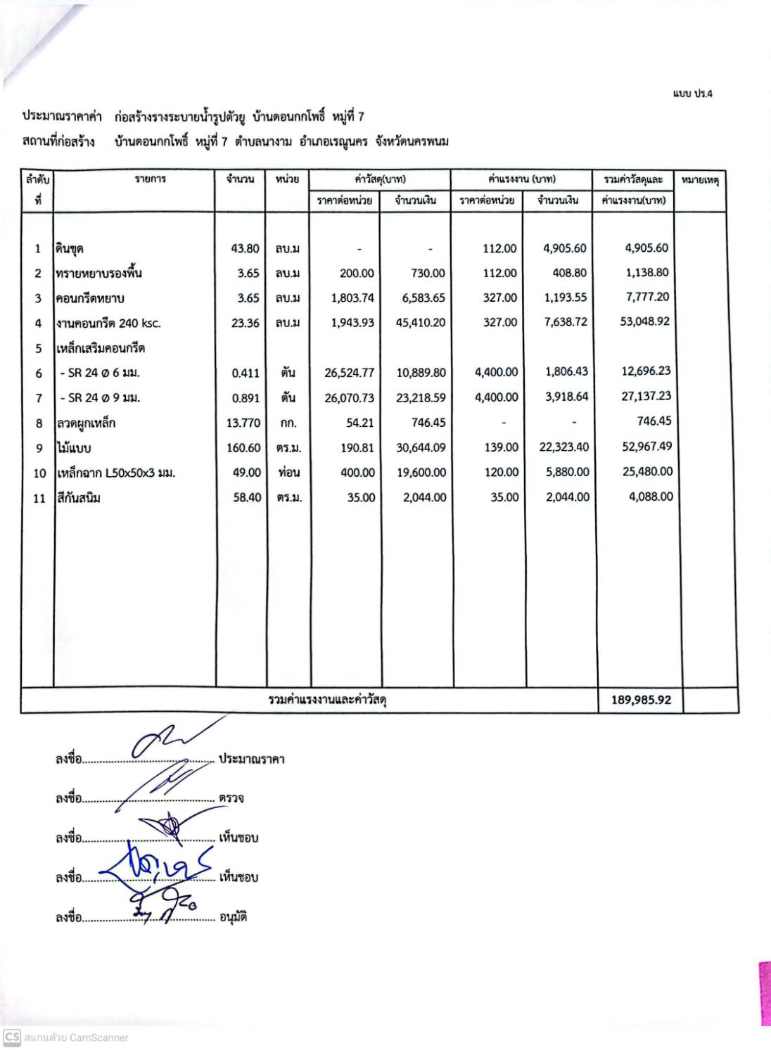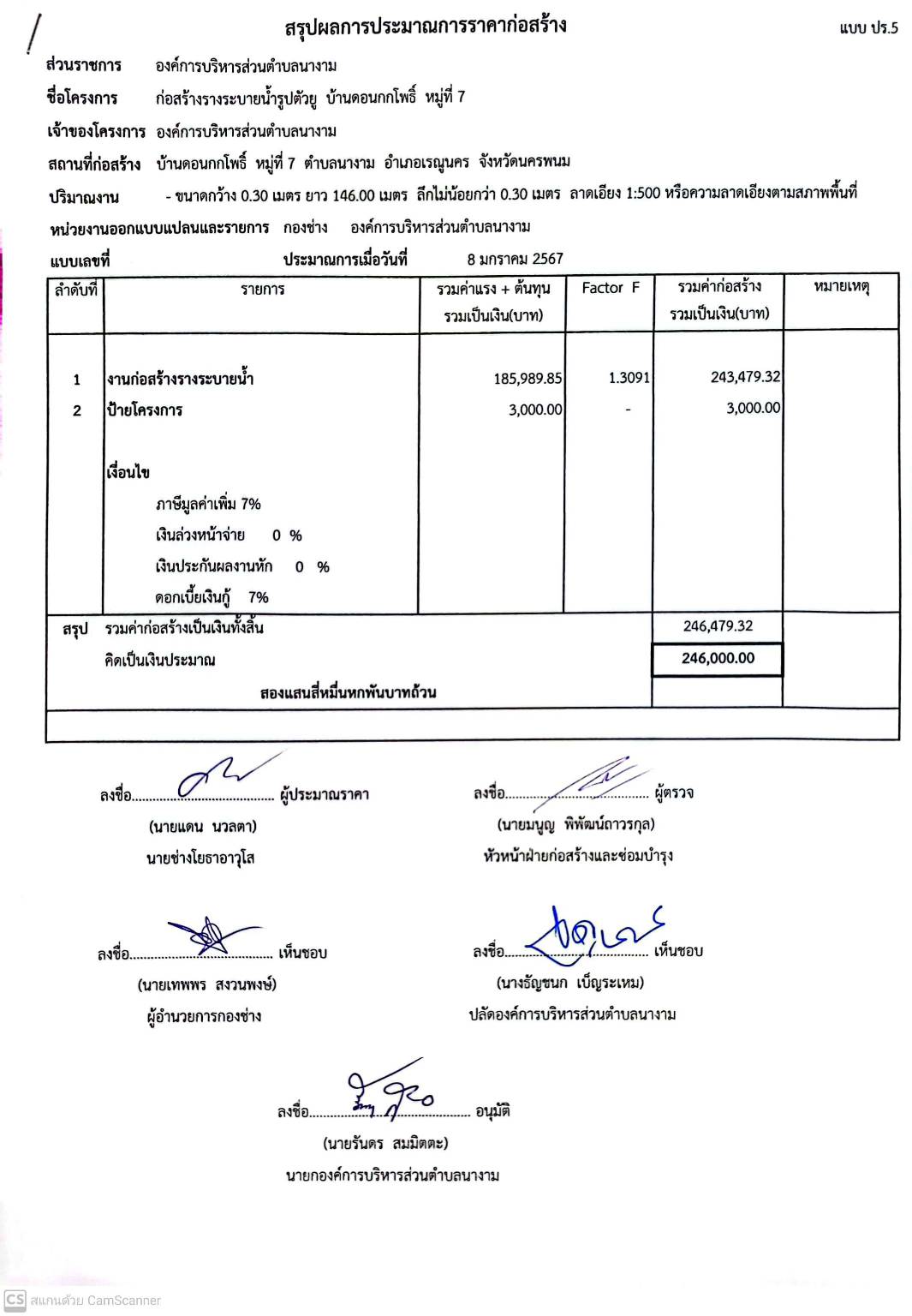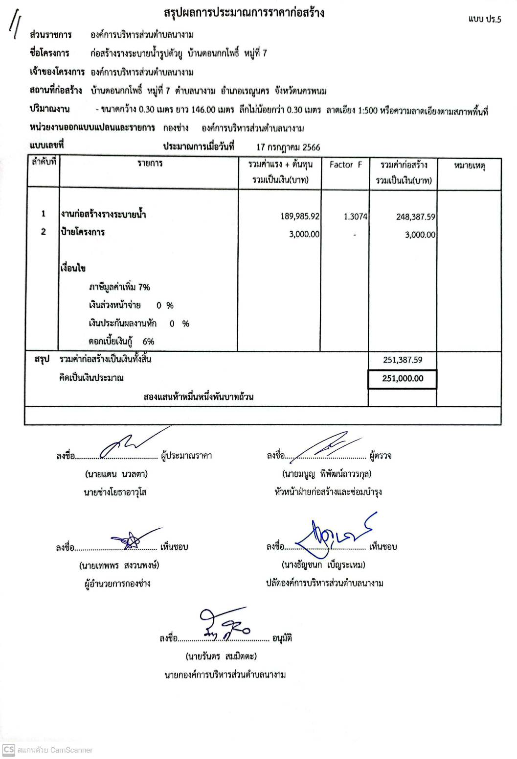 ประชาสัมพันธ์การเปิดเผยราคากลางตามโครงการก่อสร้างรางระบายน้ำรูปตัวยู บ้านดอนกกโพธิ์ หมู่ที่ 7