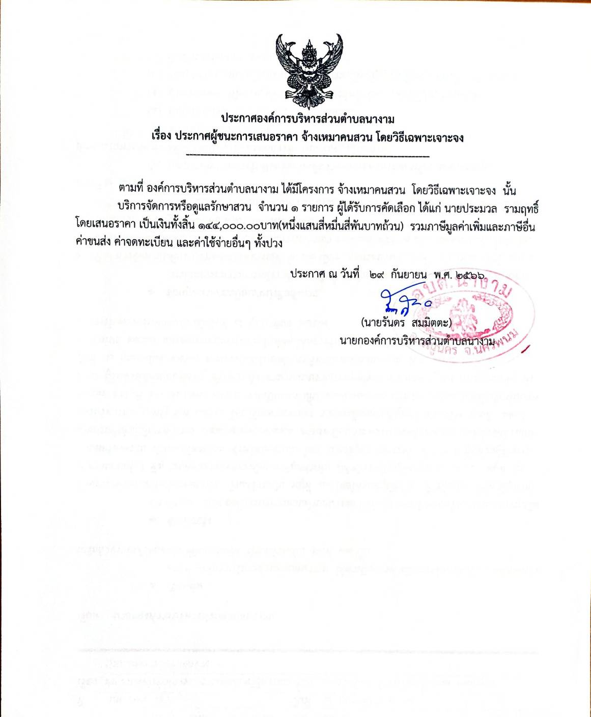 ชื่อเรื่อง : ประกาศผู้ชนะการเสนอราคา จ้างเหมาคนสวน โดยวิธีเฉพาะเจาะจง