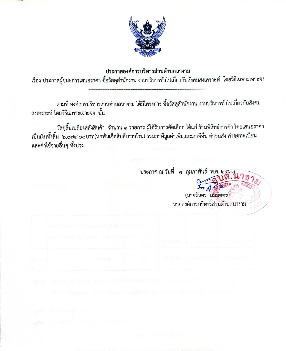 ประกาศผู้ชนะการเสนอราคา ซื้อวัสดุสำนักงาน งานบริหารทั่วไปเกี่ยวกับสังคมสงเคราะห์ โดยวิธีเฉพาะเจาะจง