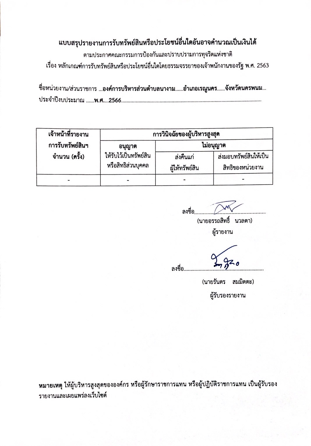 รายงานการรับทรัพย์สินหรือประโยชน์อื่นใดโดยธรรมจรรยา ประจำปี พ.ศ. 2566