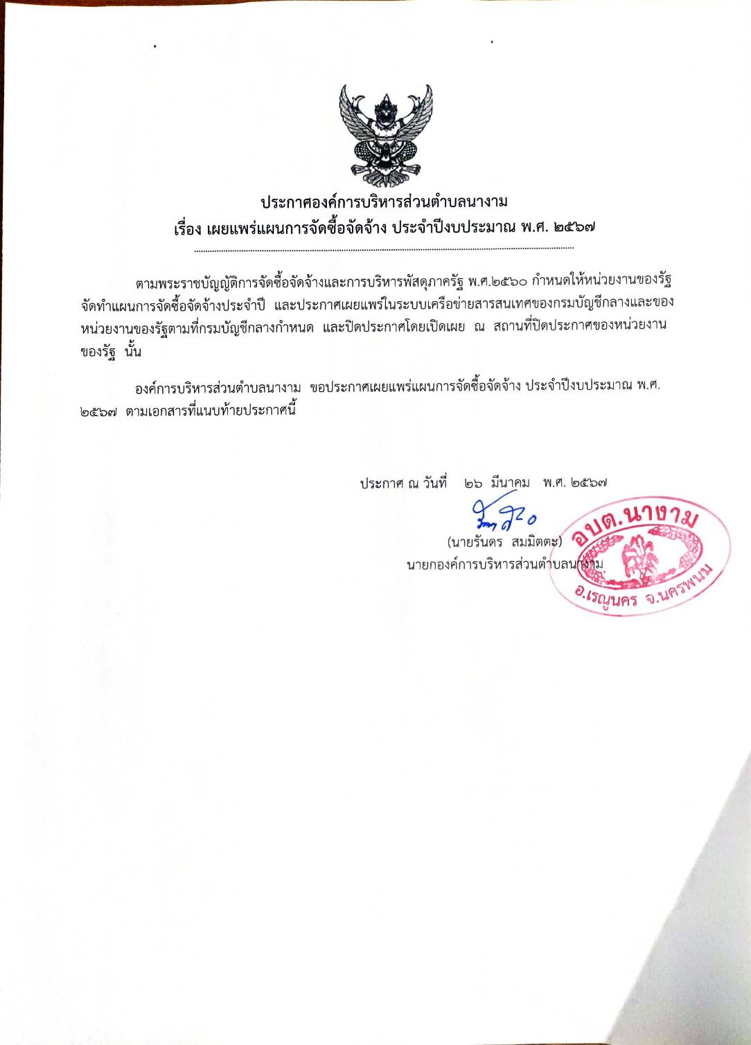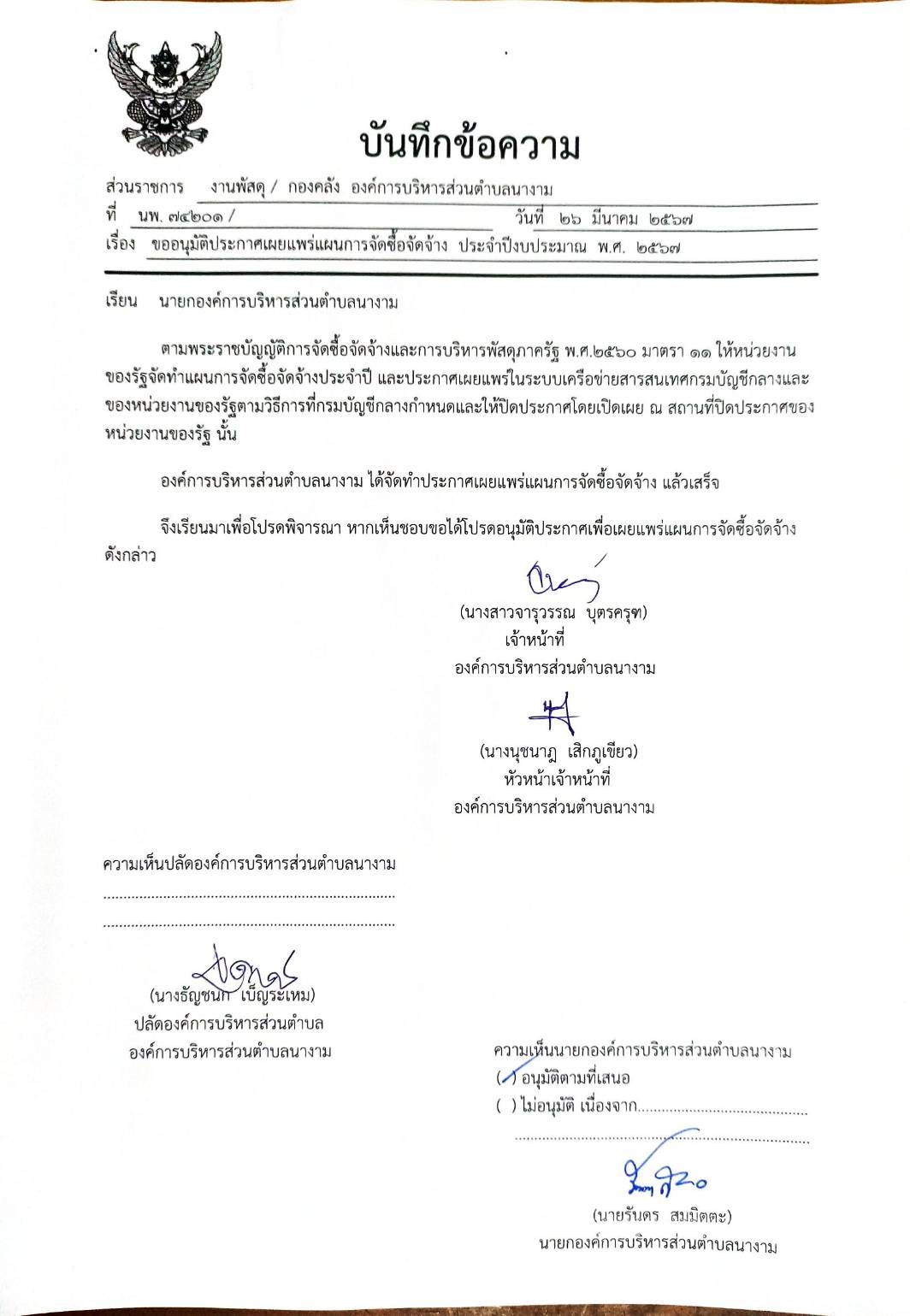 เผยแพร่แผนการจัดซื้อจัดจ้าง ประจำปีงบประมาณ พ.ศ. ๒๕๖๗