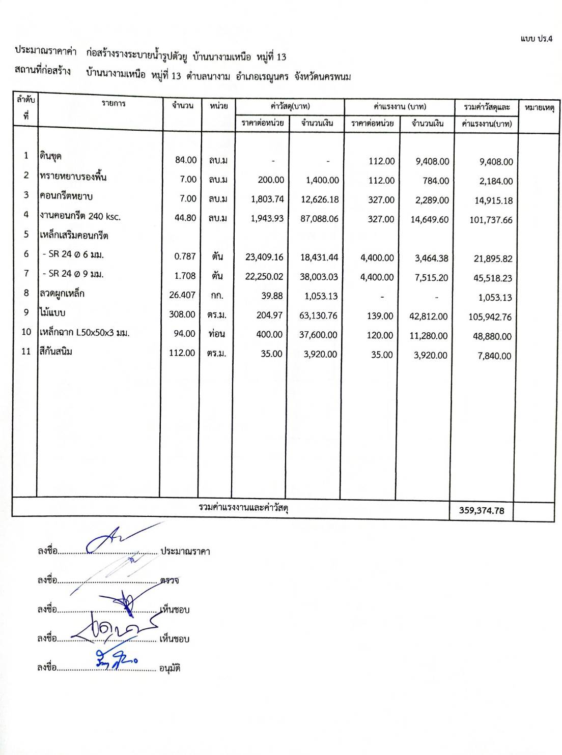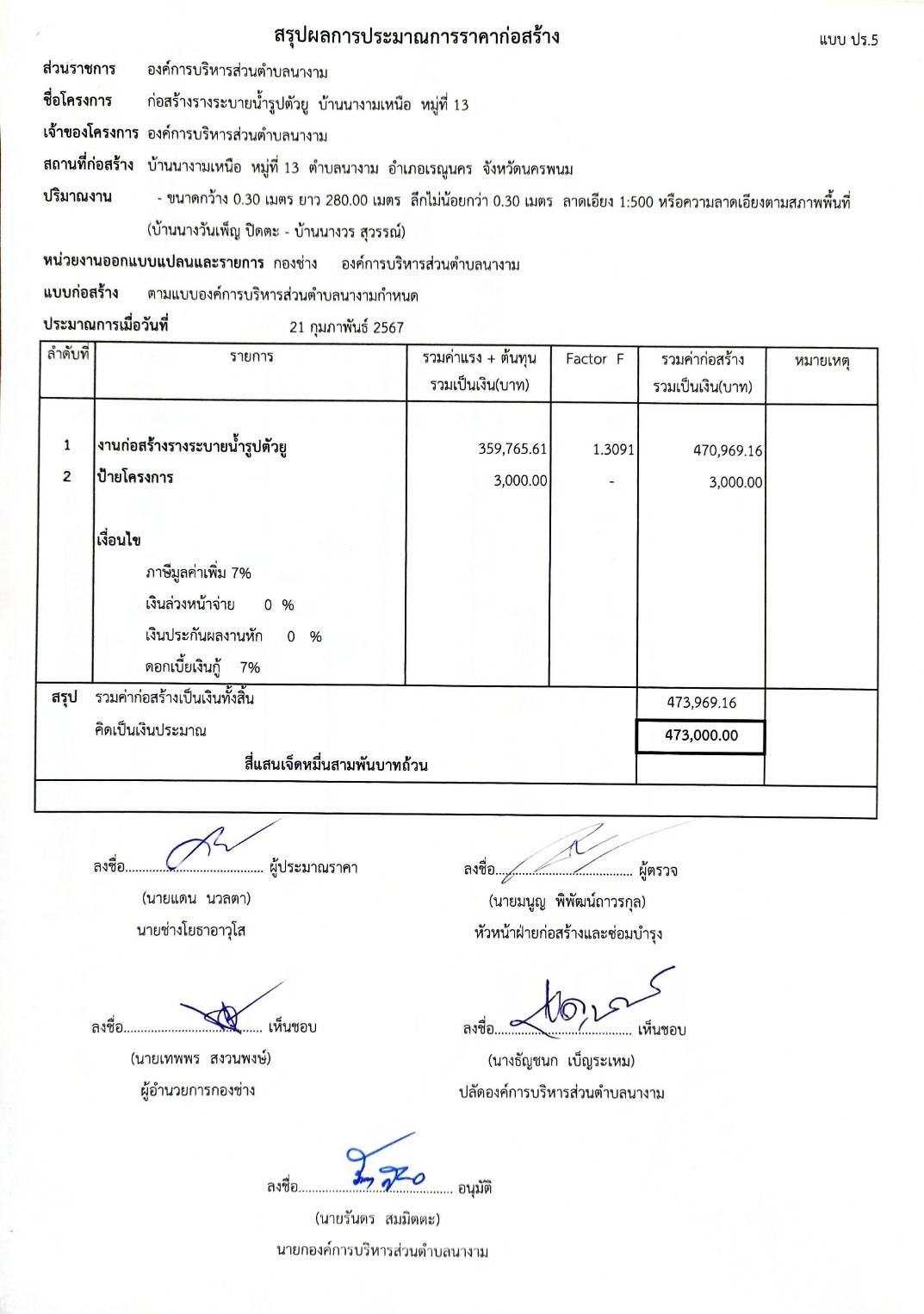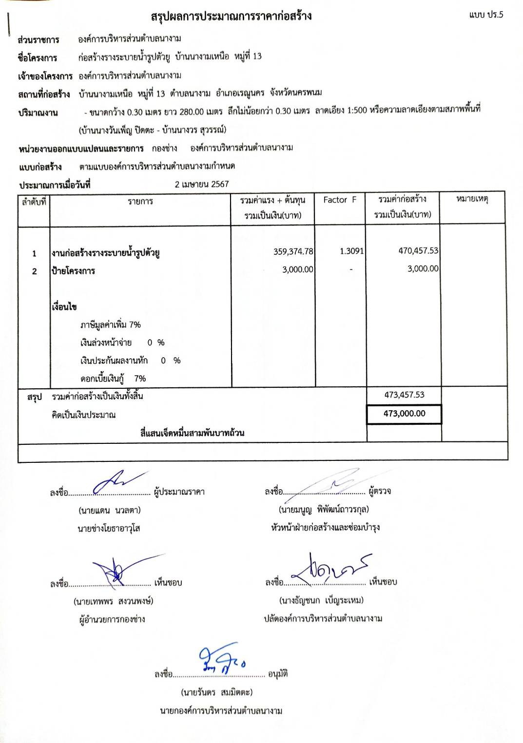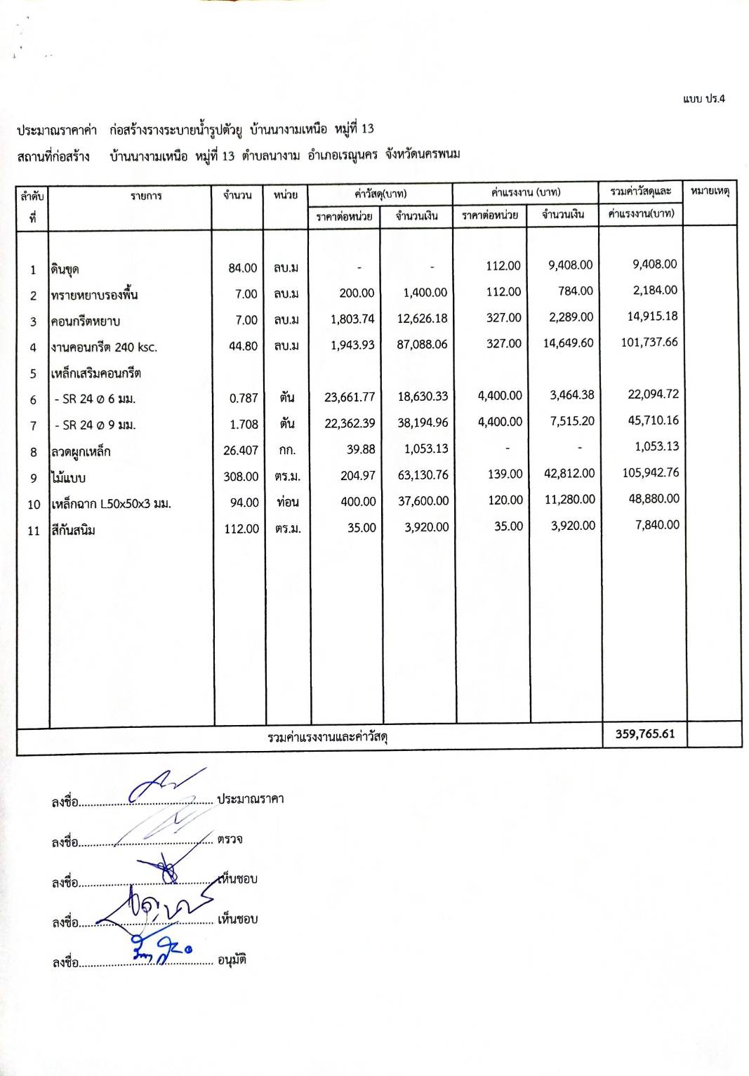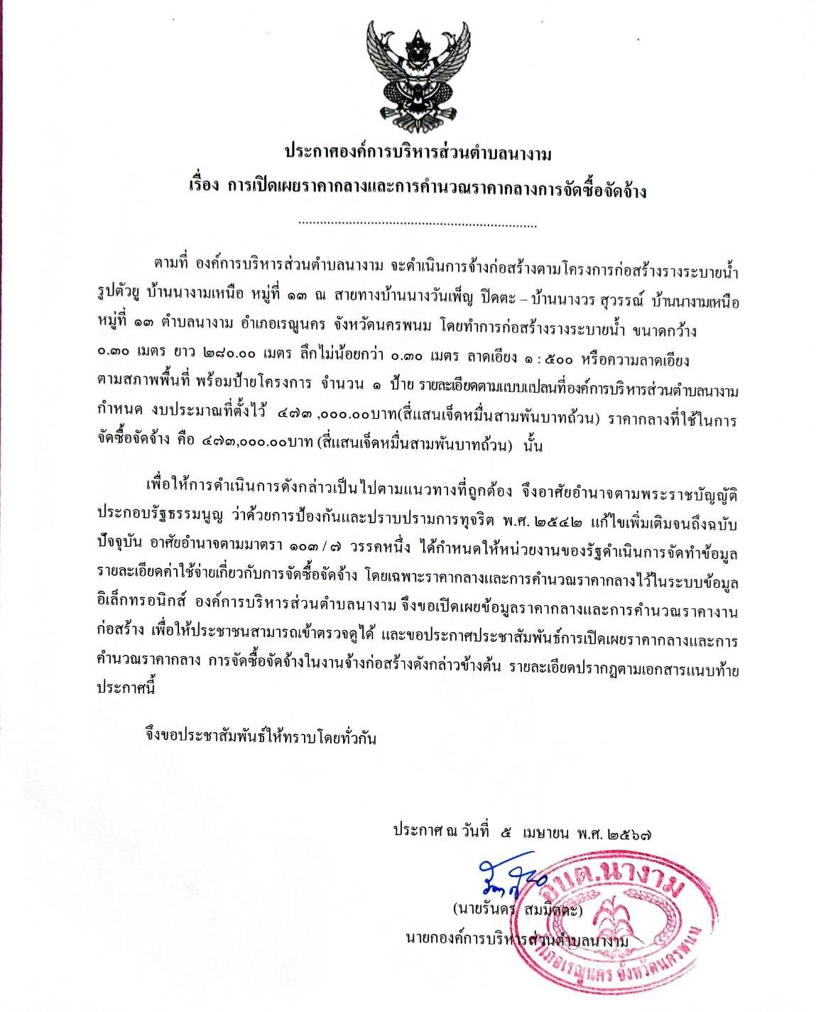 ประชาสัมพันธ์การเปิดเผยราคากลางตามโครงการก่อสร้างรางระบายน้ำรูปตัวยู บ้านนางามเหนือ หมู่ที่ 13