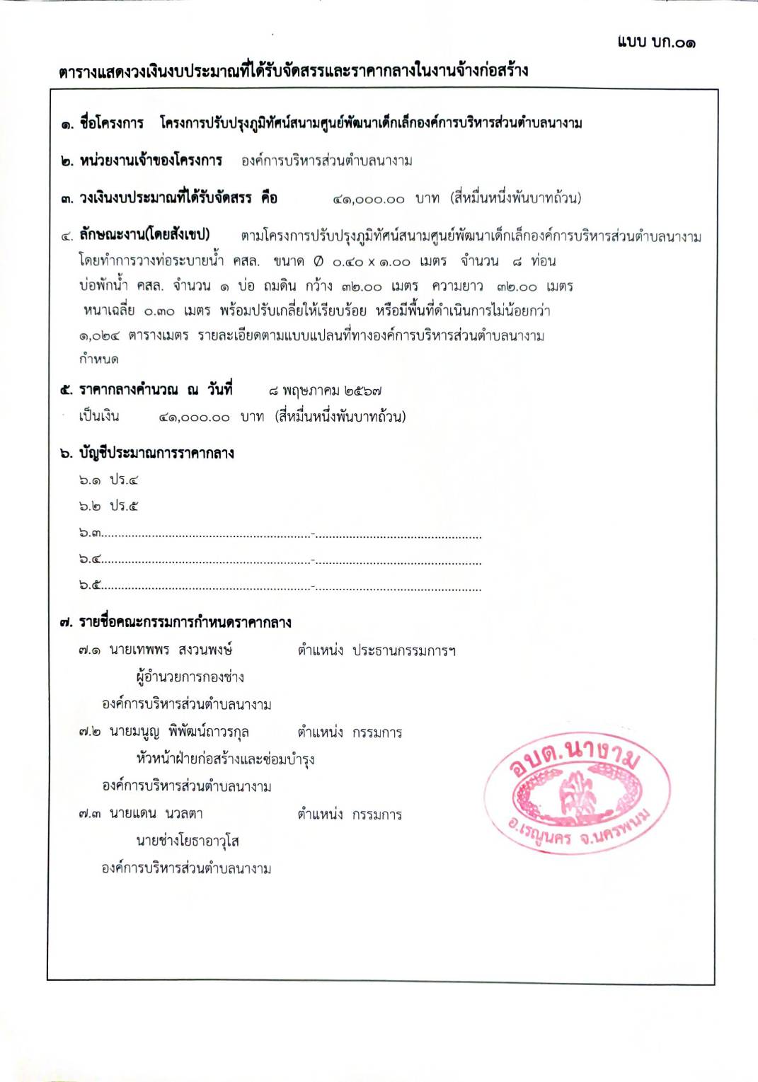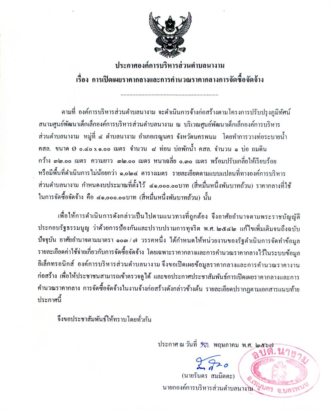 ประชาสัมพันธ์การเปิดเผยราคากลางตามโครงการปรับปรุงภูมิทัศน์สนามศูนย์พัฒนาเด็กเล็กองค์การบริหารส่วนตำบลนางาม