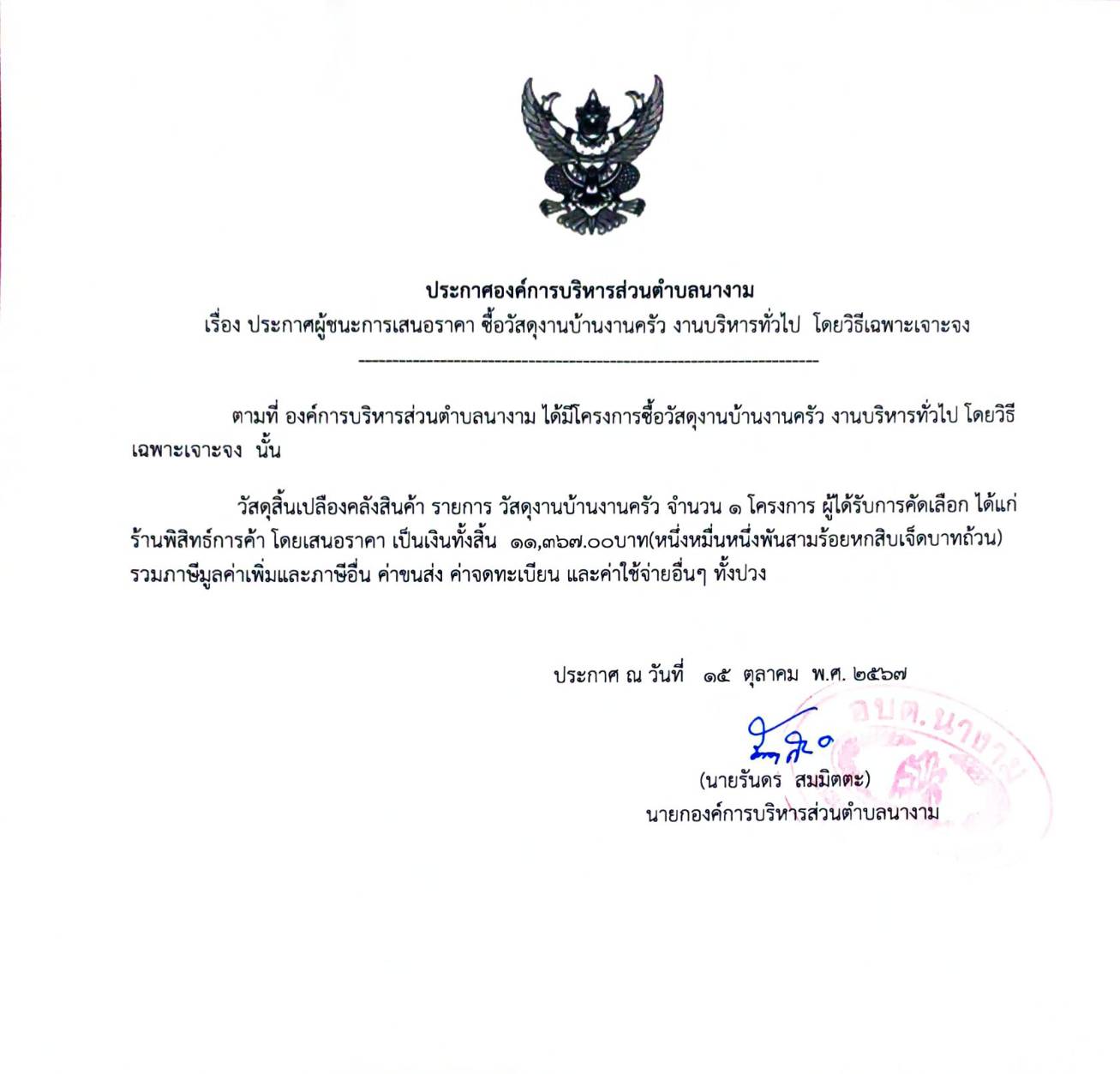 ชื่อเรื่อง : ประกาศผู้ชนะการเสนอราคา ซื้อวัสดุงานบ้านงานครัว งานบริหารทั่วไป โดยวิธีเฉพาะเจาะจง