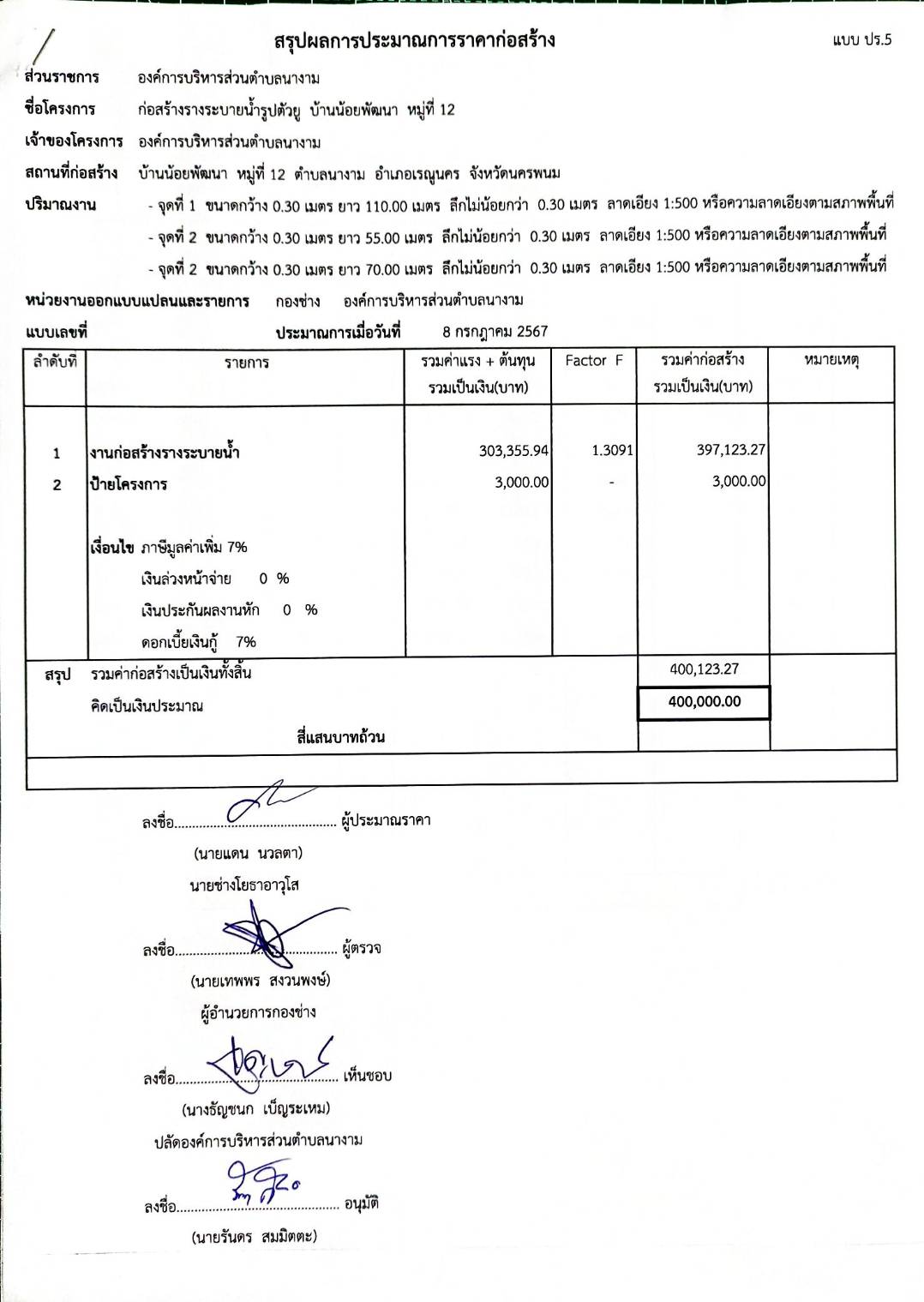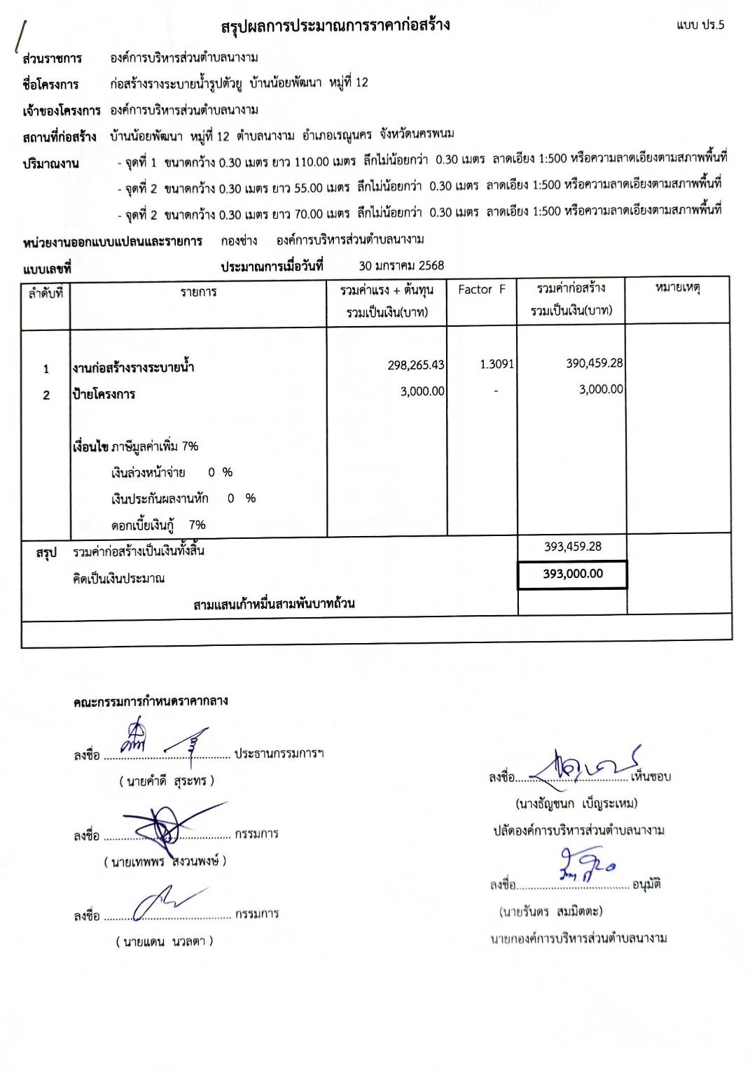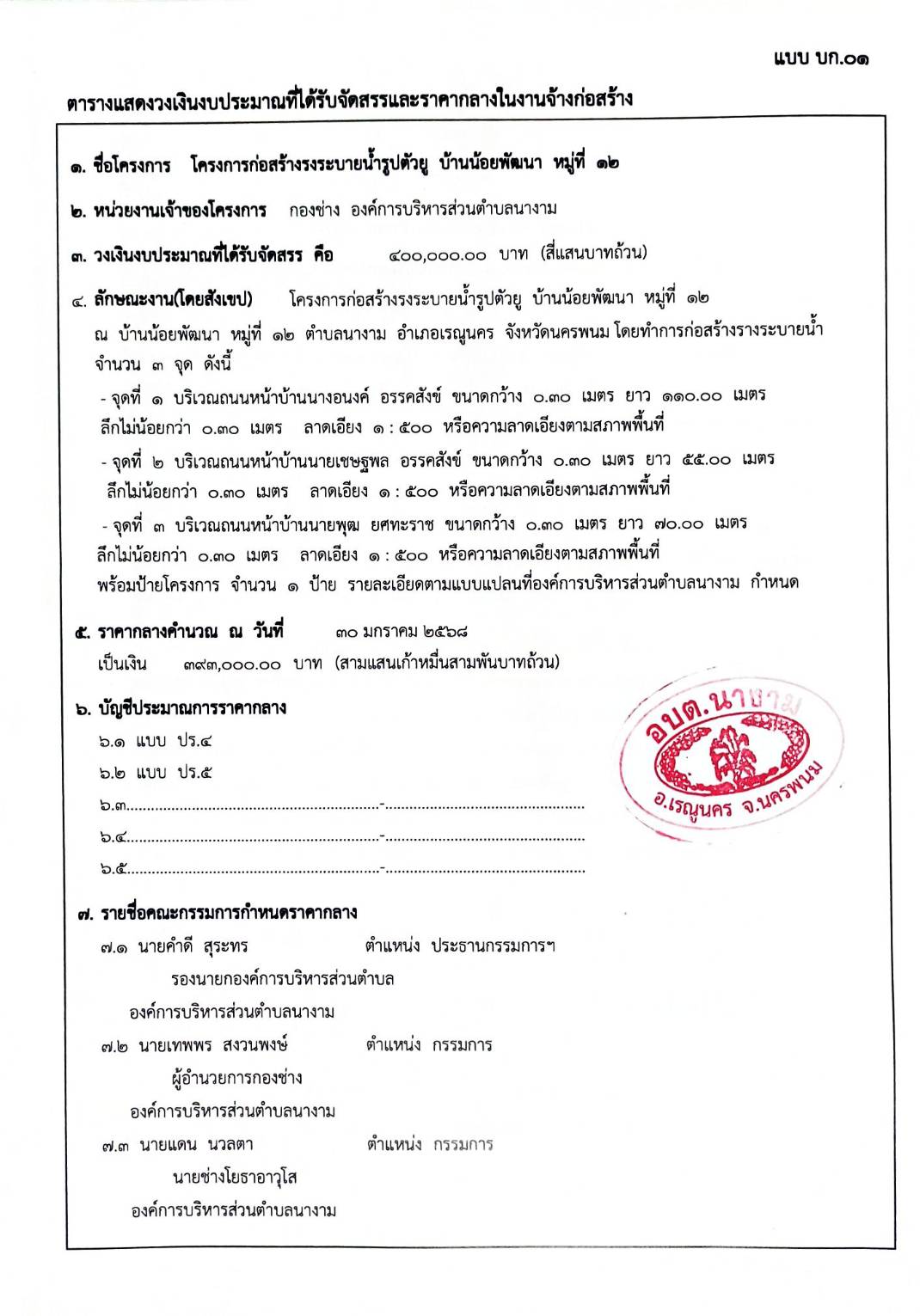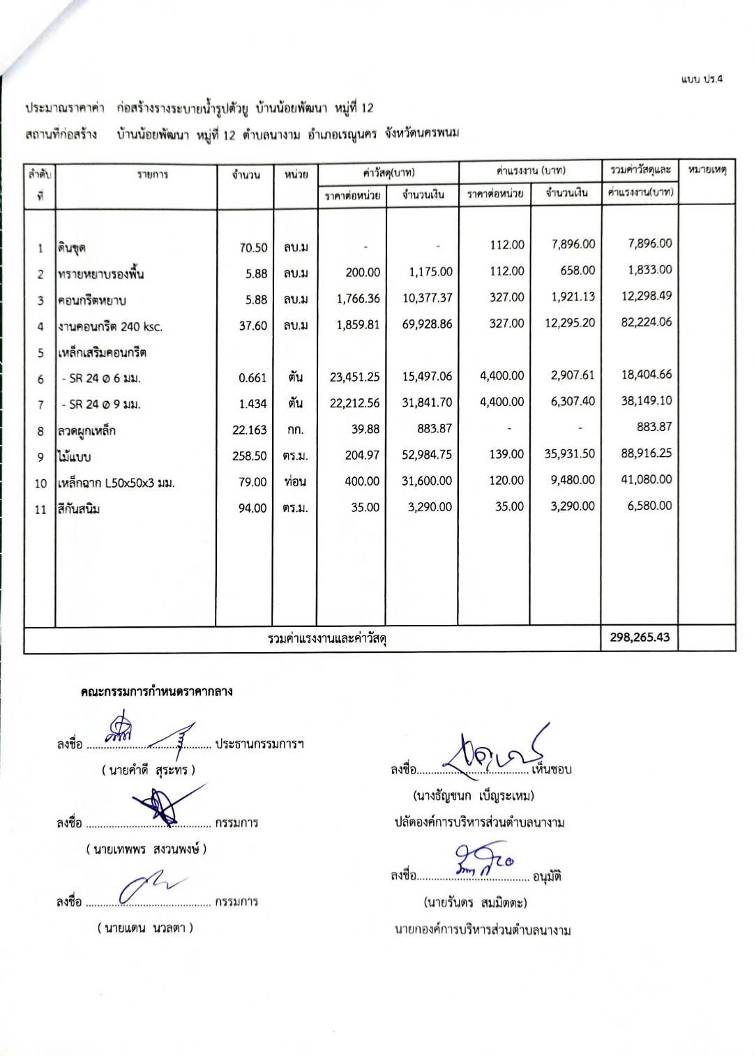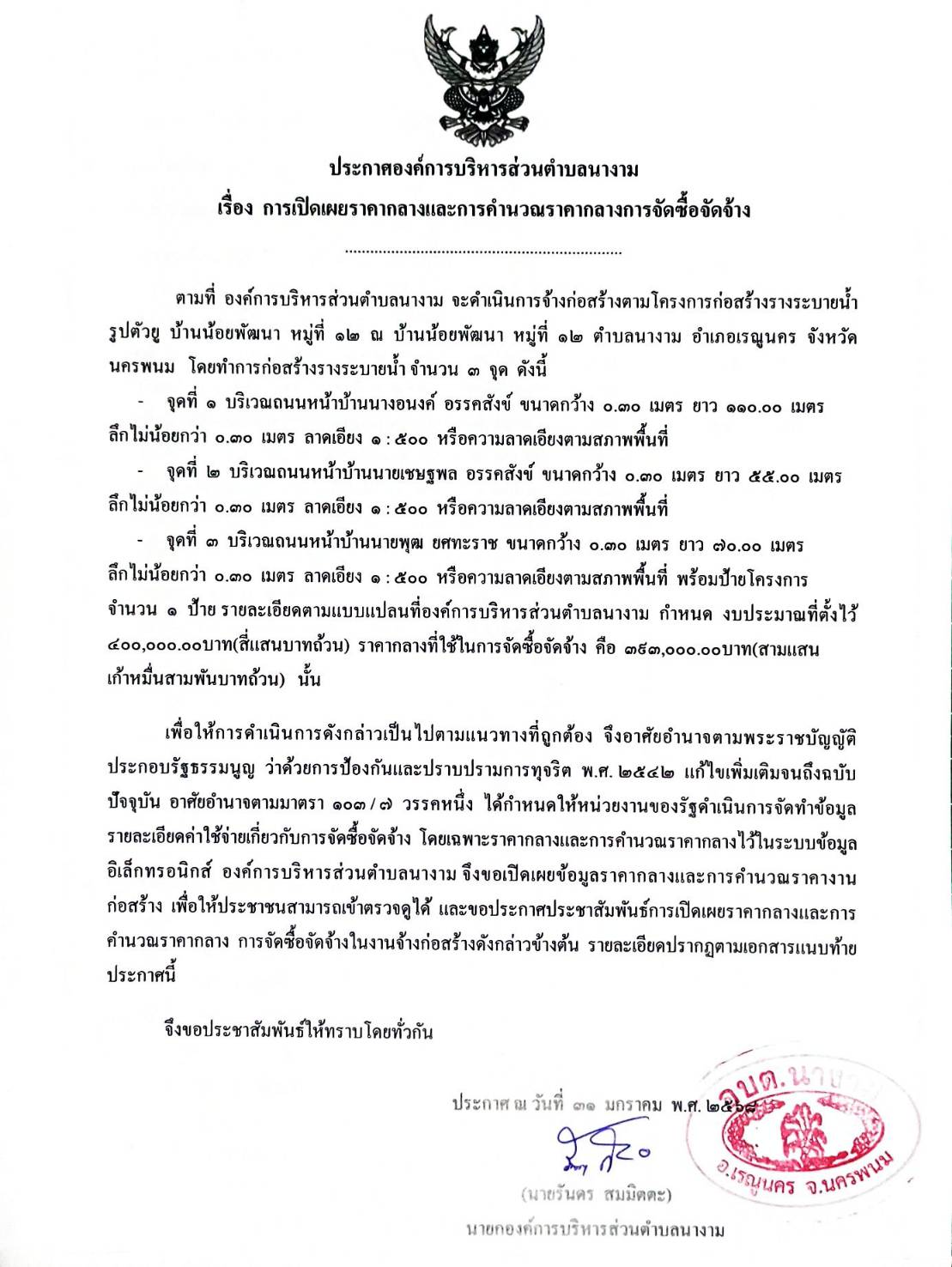ประชาสัมพันธ์การเปิดเผยราคากลาง จ้างตามโครงการก่อสร้างรางระบายน้ำรูปตัวยู บ้านน้อยพัฒนา หมู่ที่ ๑๒ โดยวิธีเฉพาะเจาะจง