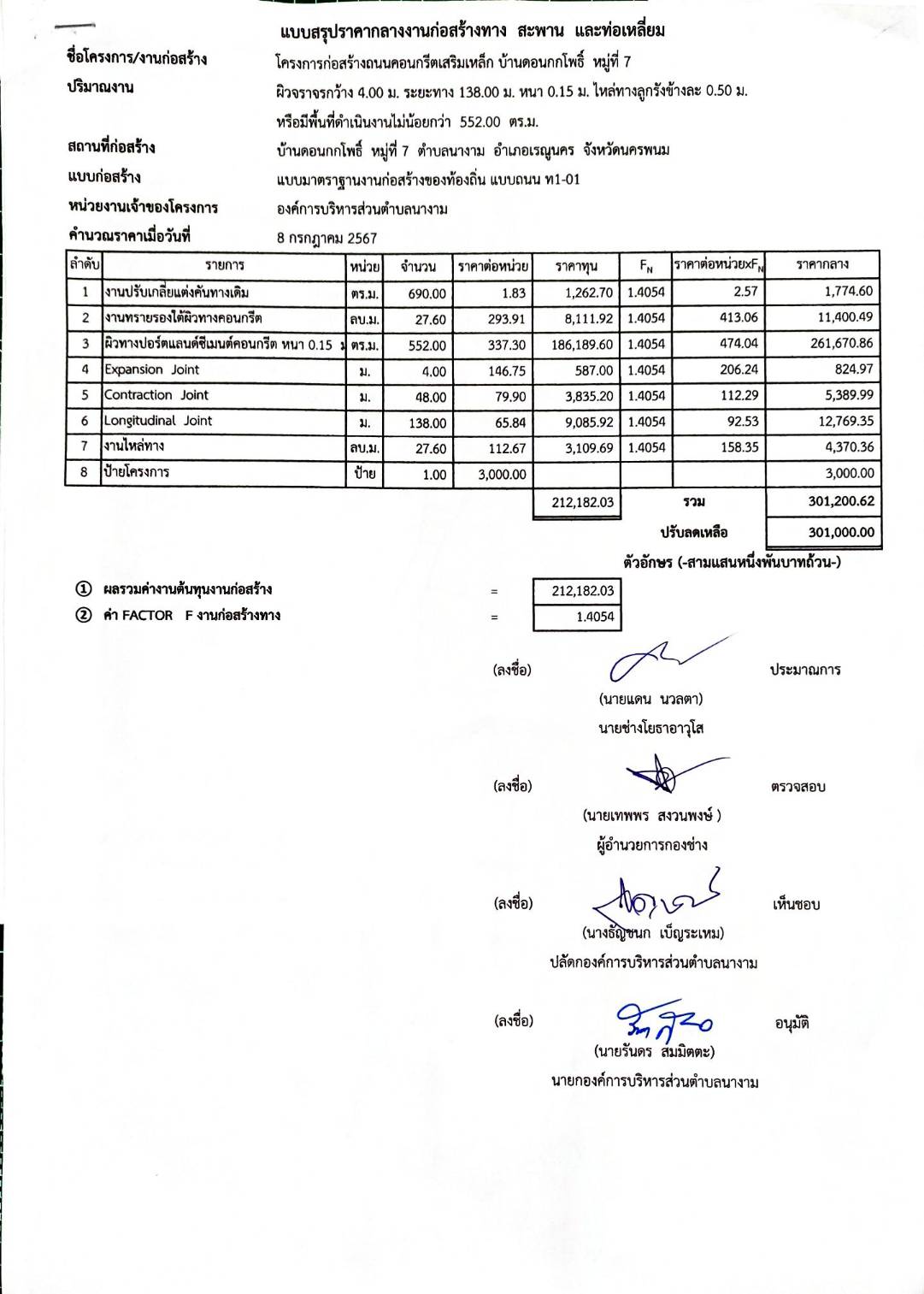ประชาสัมพันธ์การเปิดเผยราคากลางจ้างตามโครงการก่อสร้างถนนคอนกรีตเสริมเหล็ก บ้านดอนกกโพธิ์ หมู่ที่ ๗ โดยวิธีเฉพาะเจาะจง