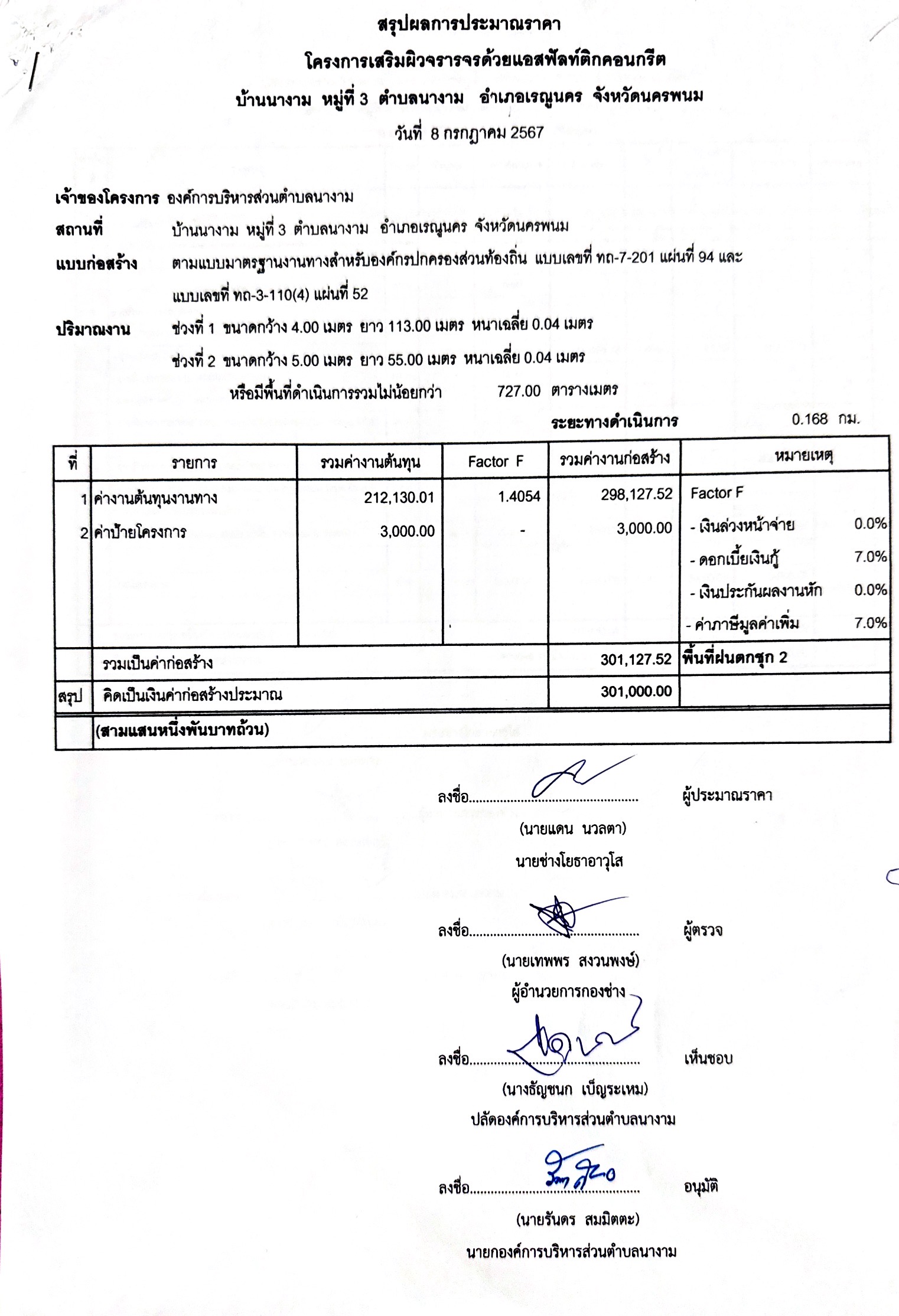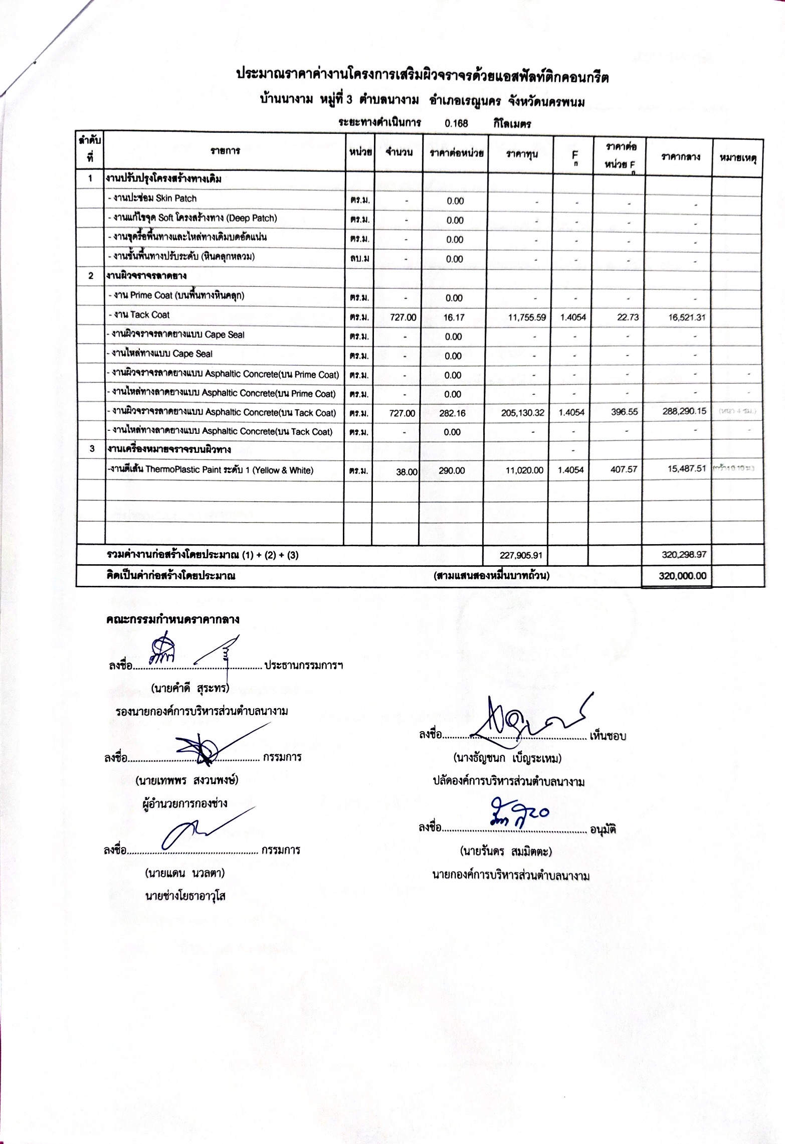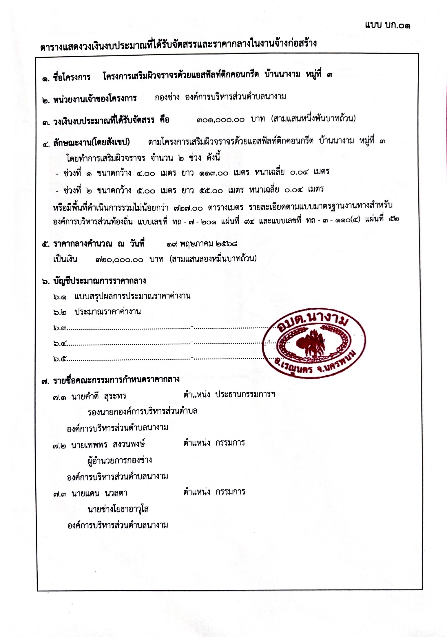 ประชาสัมพันธ์การเปิดเผยราคากลาง จ้างตามโครงการเสริมผิวจราจรด้วยแอสฟัลท์ติกคอนกรีต บ้านนางาม หมู่ที่ 3