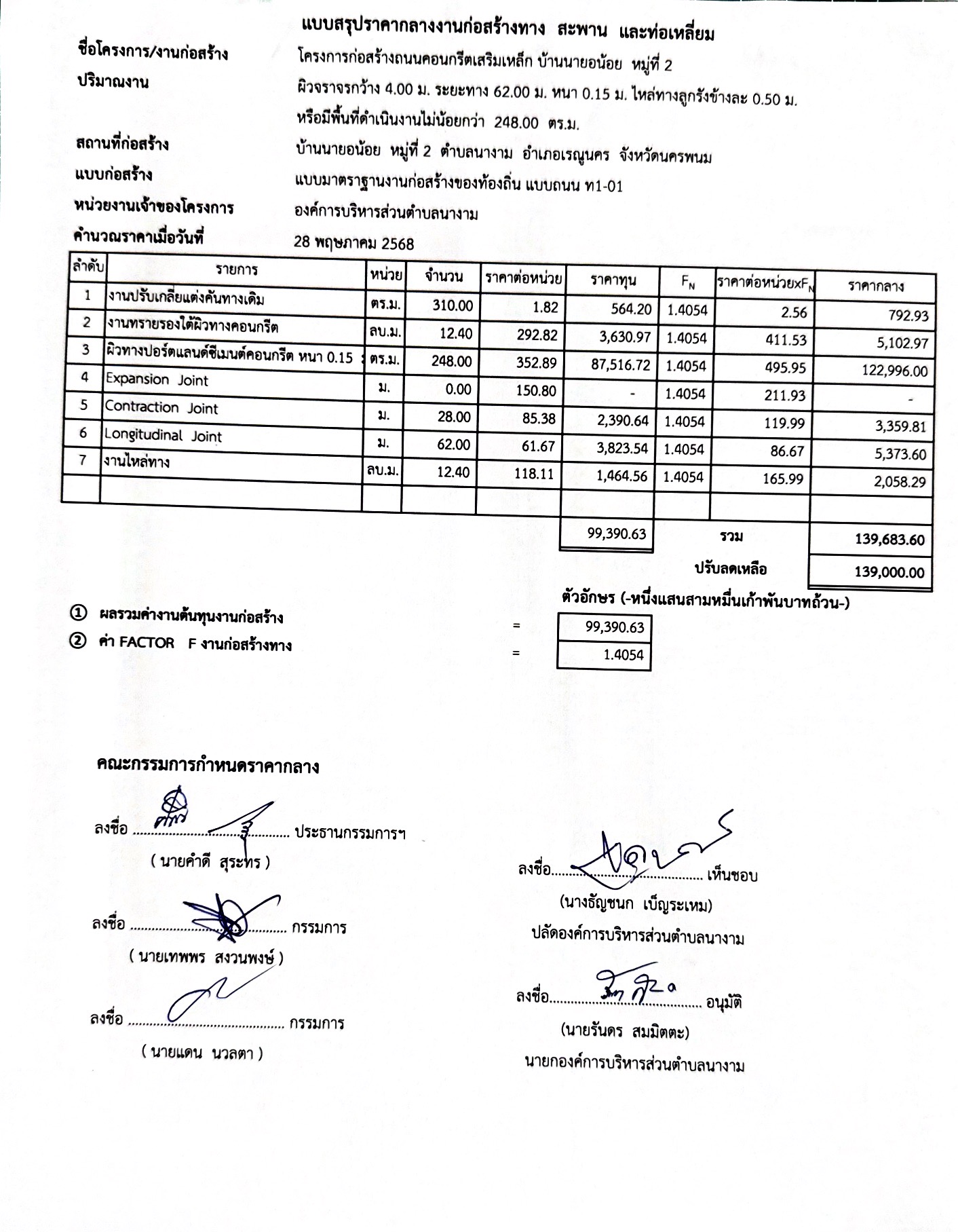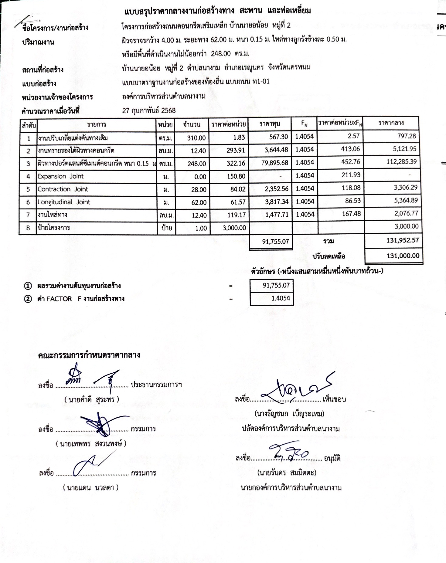 ประชาสัมพันธ์การเปิดเผยราคากลาง จ้างตามโครงการก่อสร้างถนนคอนกรีตเสริมเหล็ก บ้านนายอน้อย หมู่ที่ ๒