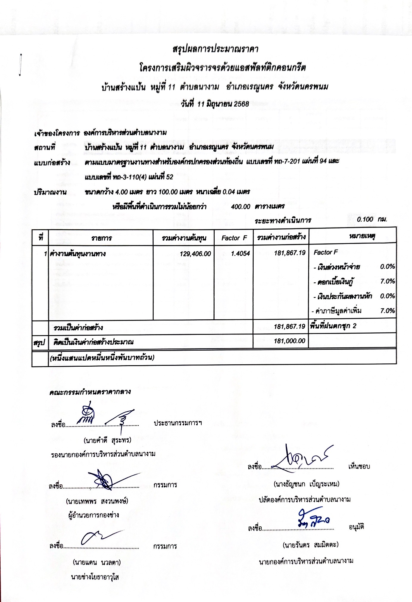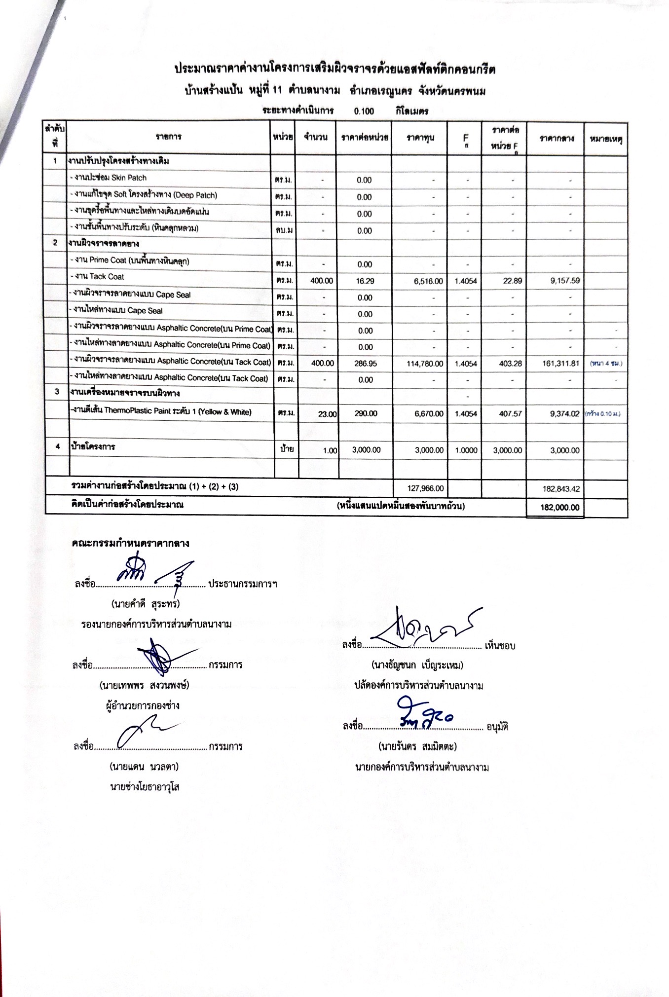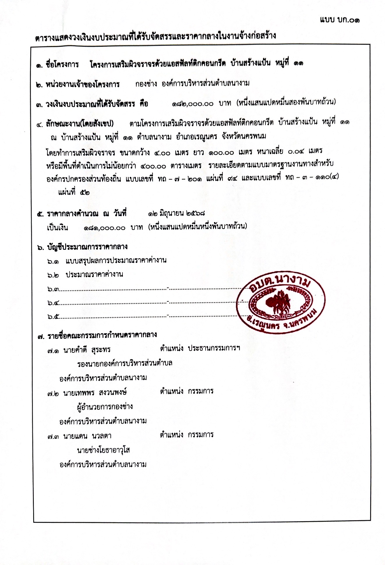 ประชาสัมพันธ์การเปิดเผยราคากลาง จ้างตามโครงการเสริมผิวจราจรด้วยแอสฟัลท์ติกคอนกรีต บ้านสร้างแป้น หมู่ที่ 11