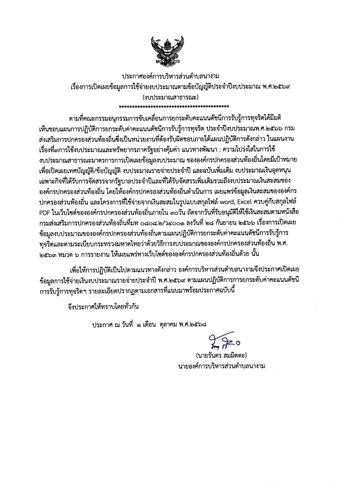 ข้อบัญญัติงบประมาณรายจ่ายประจำปีงบประมาณ พ.ศ. 2569 องค์การบริหารส่วนตำบลนางาม